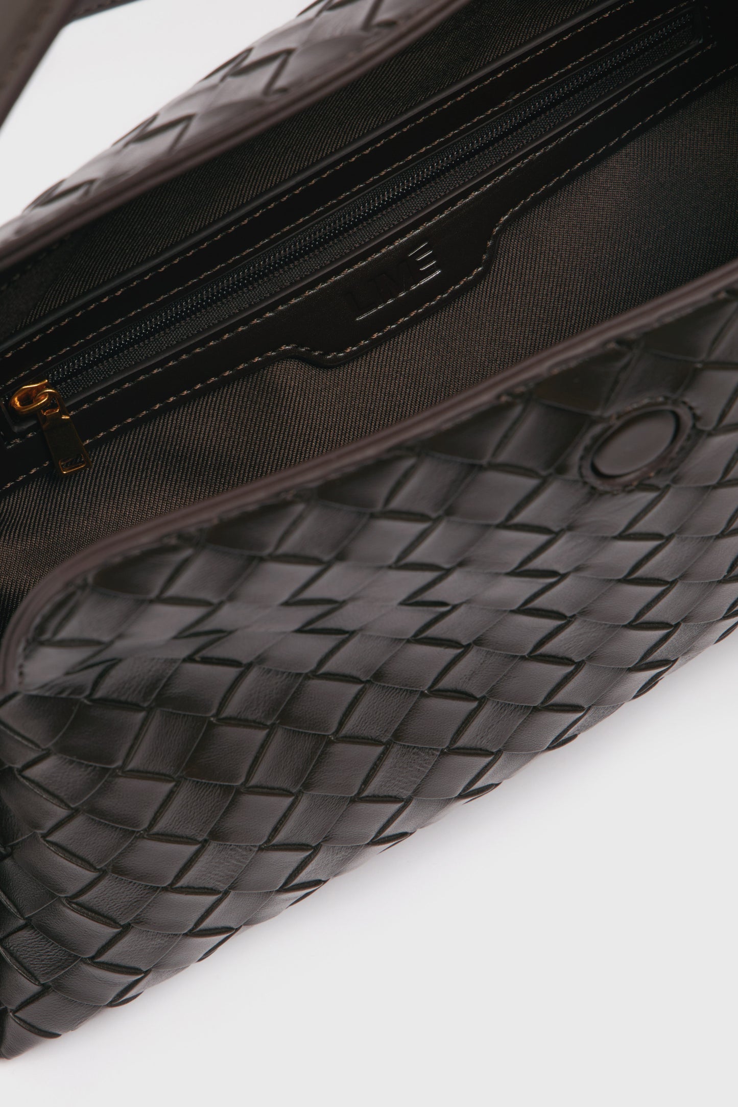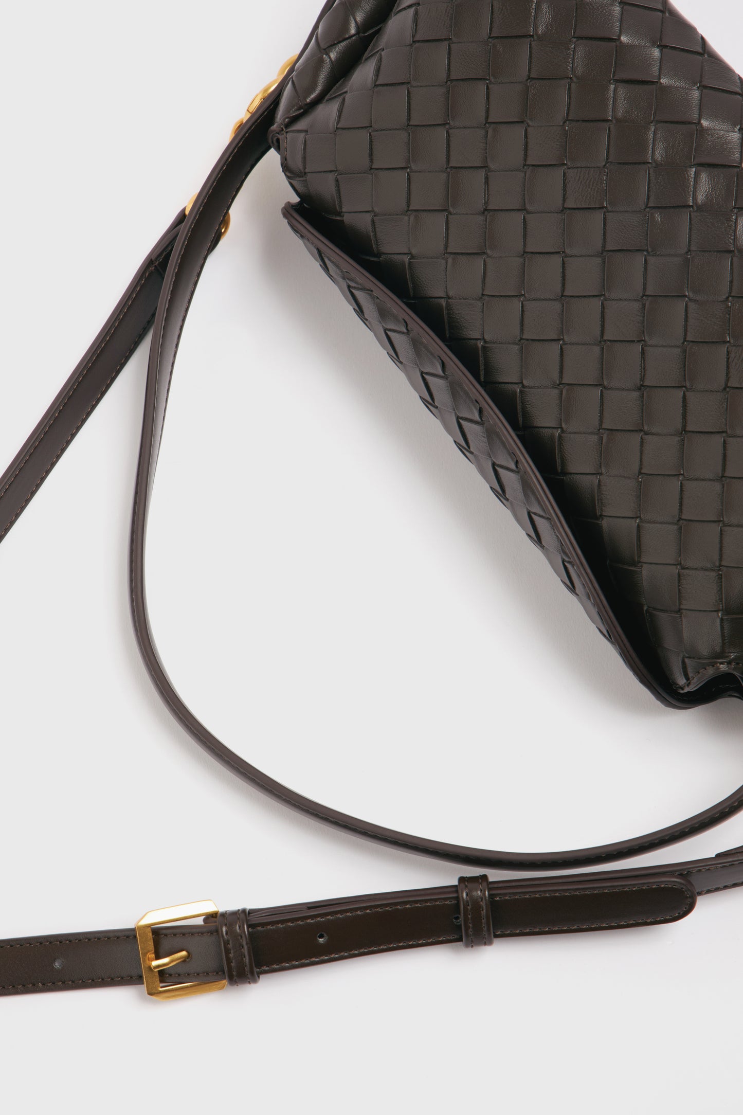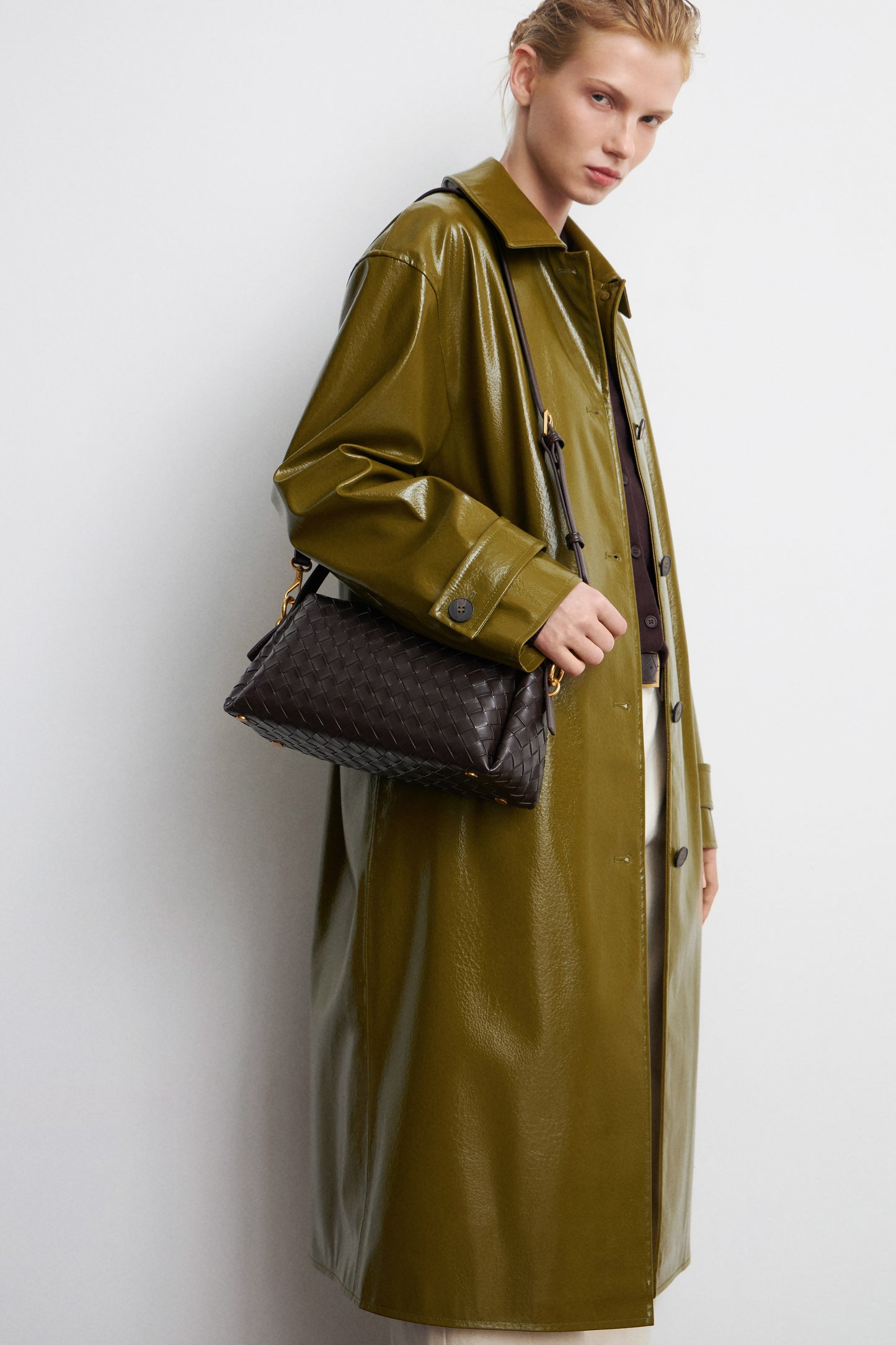 Crossbody bag in braided, coated fabric. Exterior with textured detail. Narrow, detachable shoulder strap, chunky handle, and a flap at top. Inner pocket detail. Lined. Size: 31,5 х 11 х 14,5 cm (length х width х height).