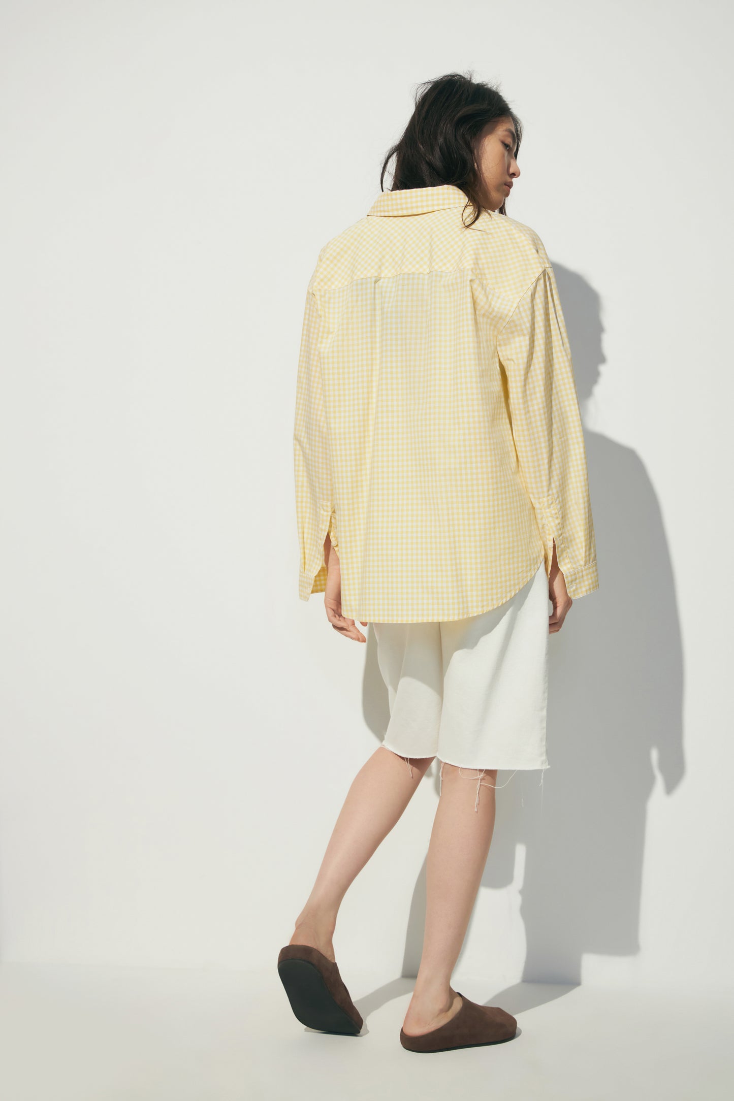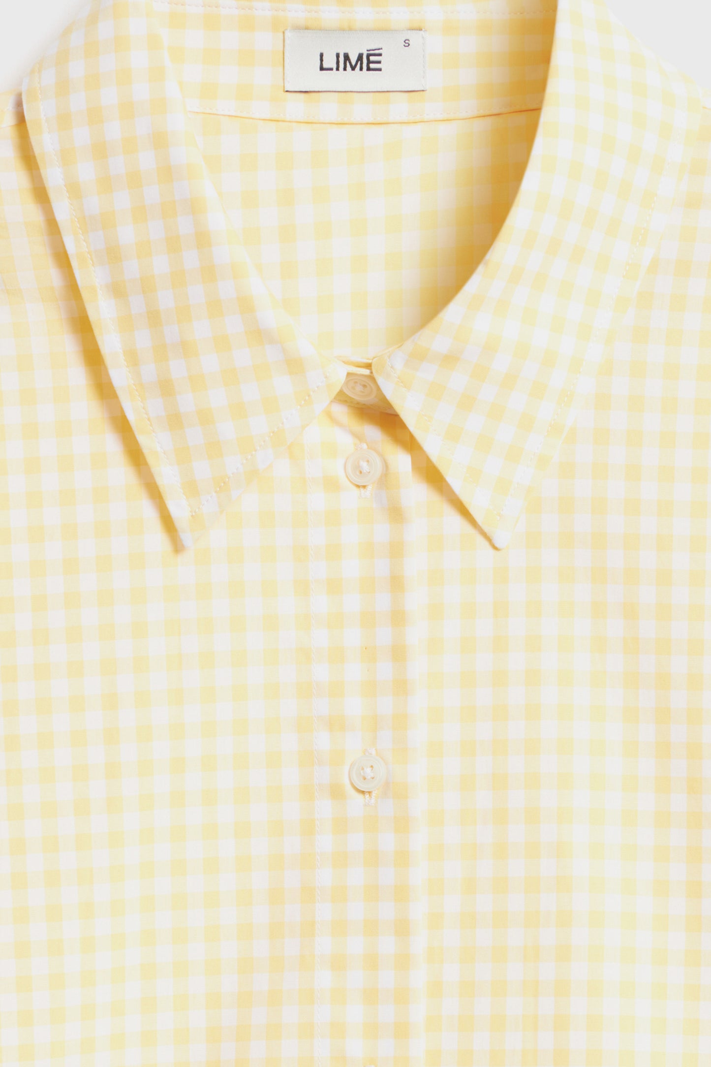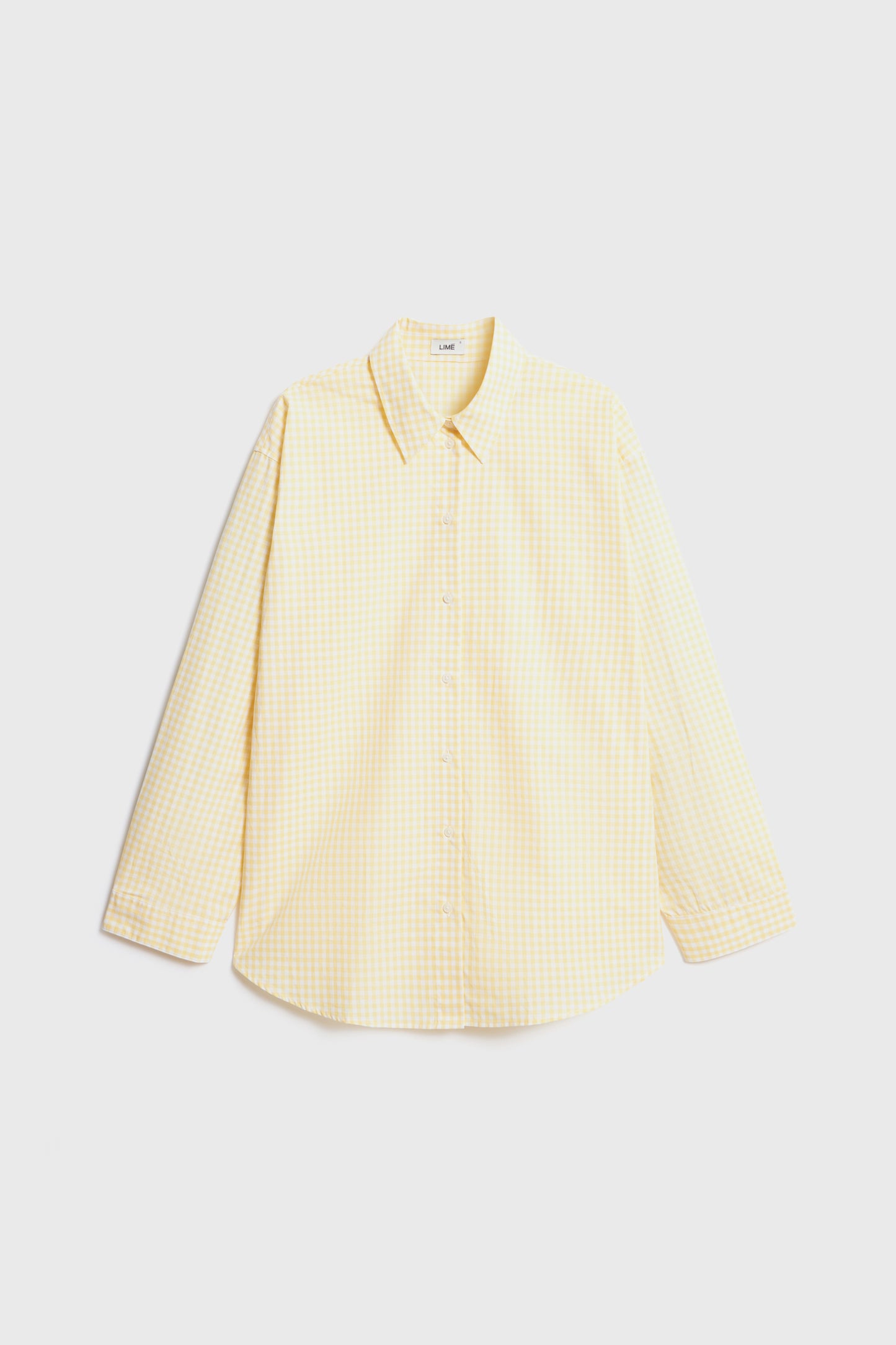 Collared shirt in cotton with a check pattern. Button front and long sleeves with adjustable buttoning at the cuffs. Rounded hem.