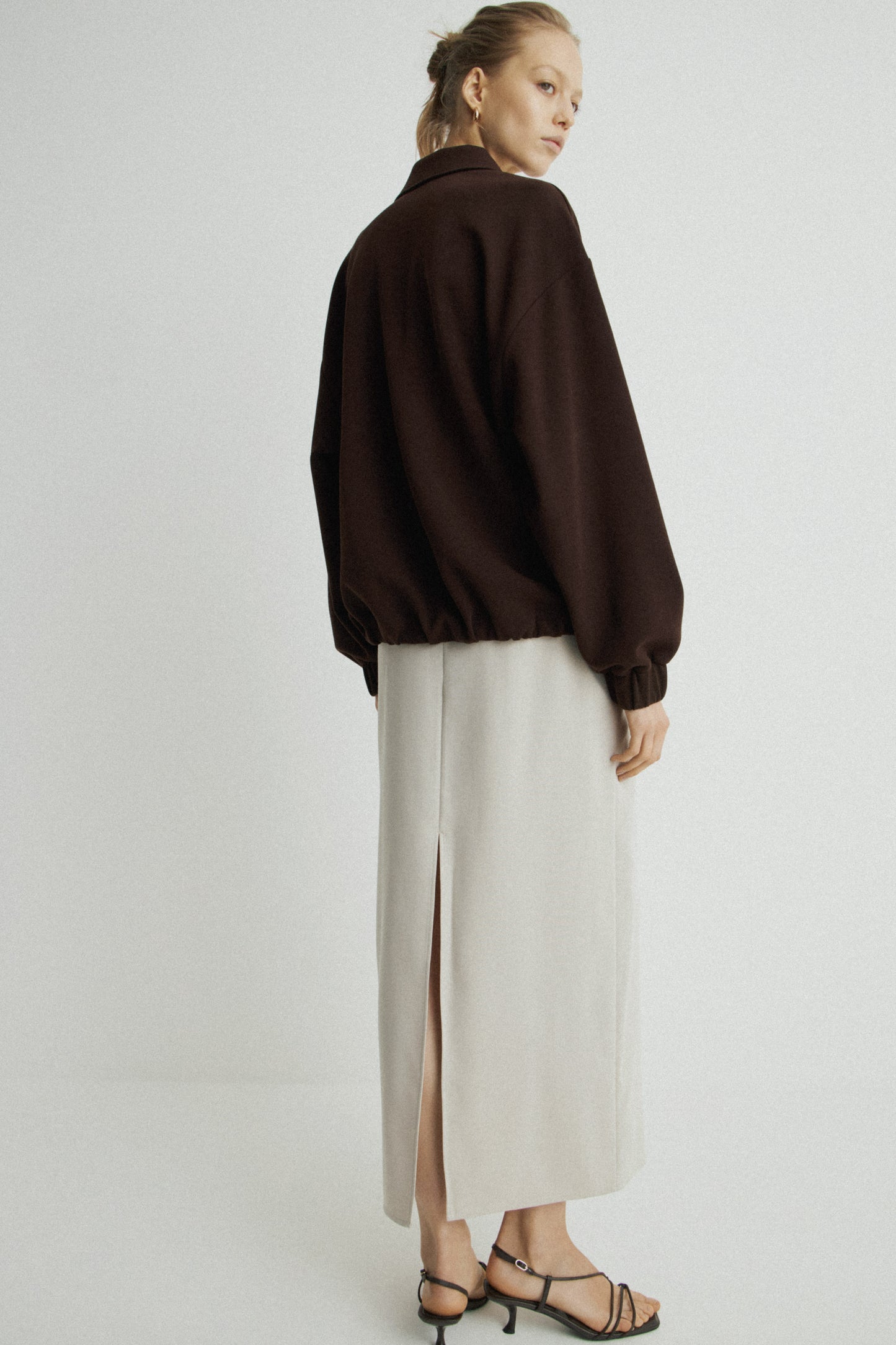 Fitted, ankle-length skirt with a mid waist in viscose blend fabric containing some wool. A concealed zip at the back.