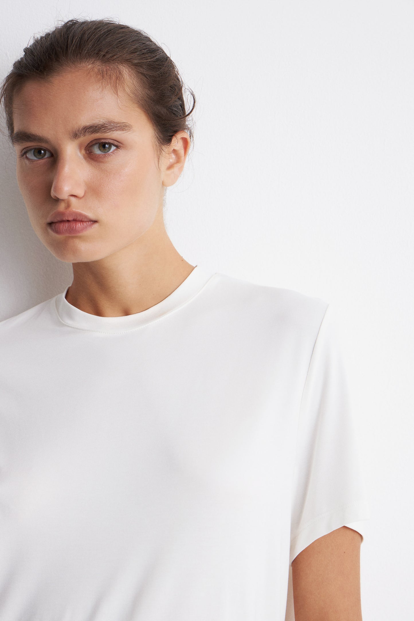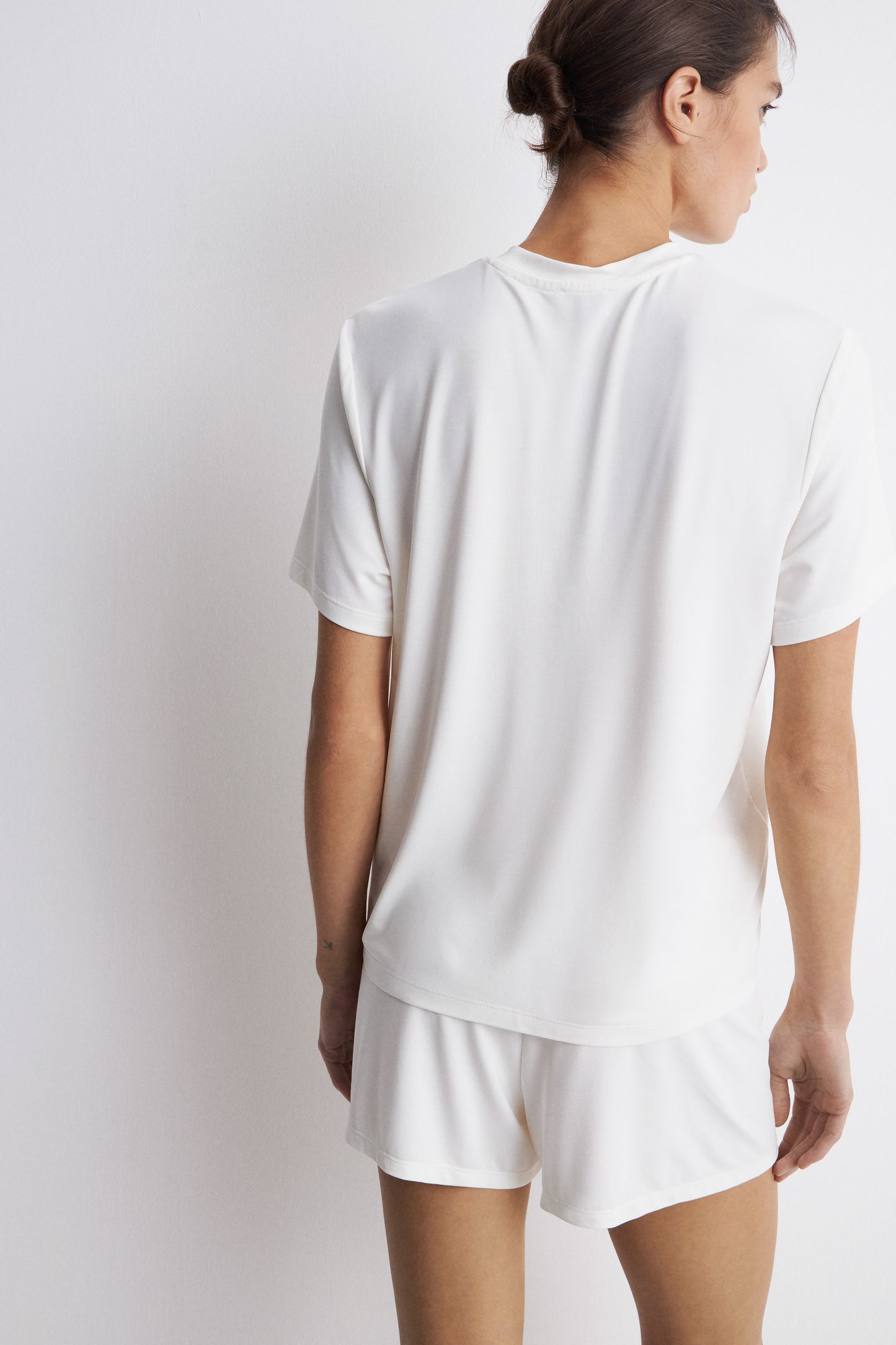 Classic T-shirt in soft viscose jersey with a round neckline, short sleeves and a straight-cut hem.