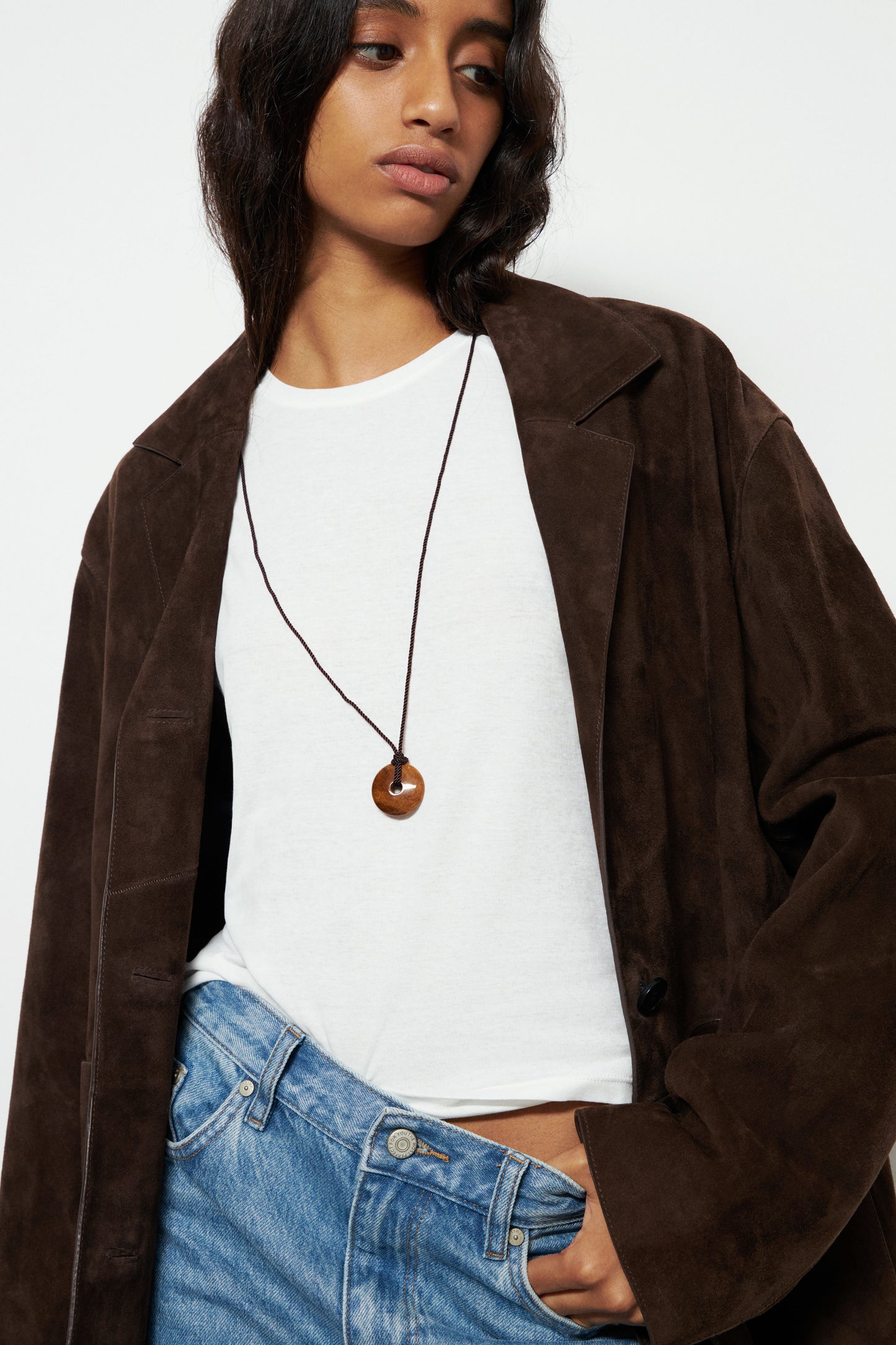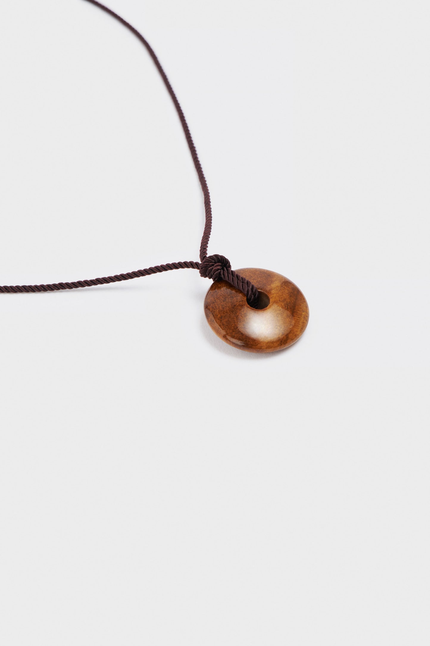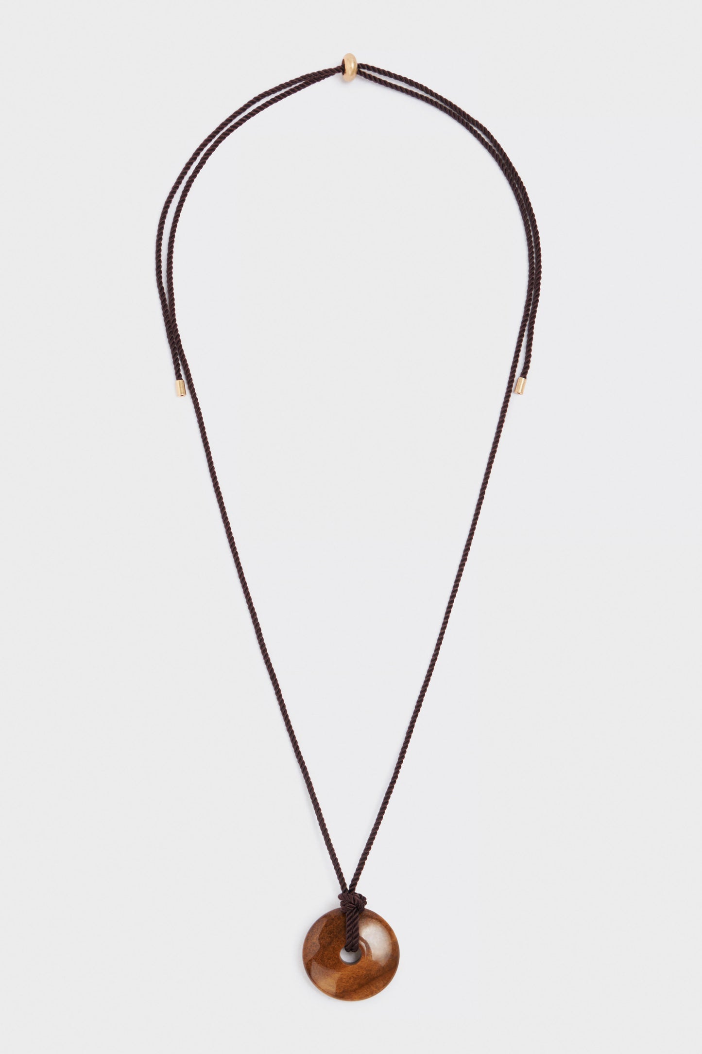 Cord necklace with a tiger eye pendant. Adjustable length. Length: 94 cm