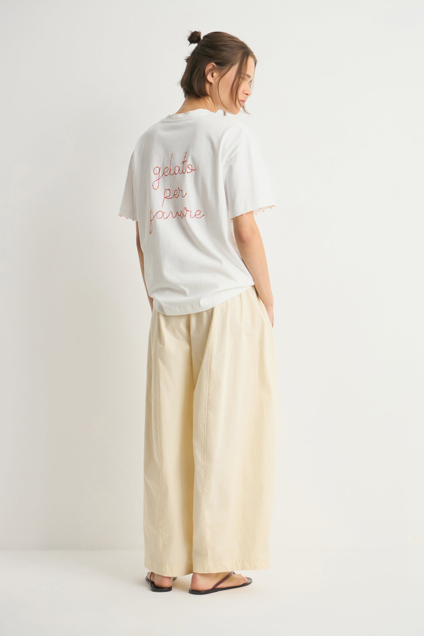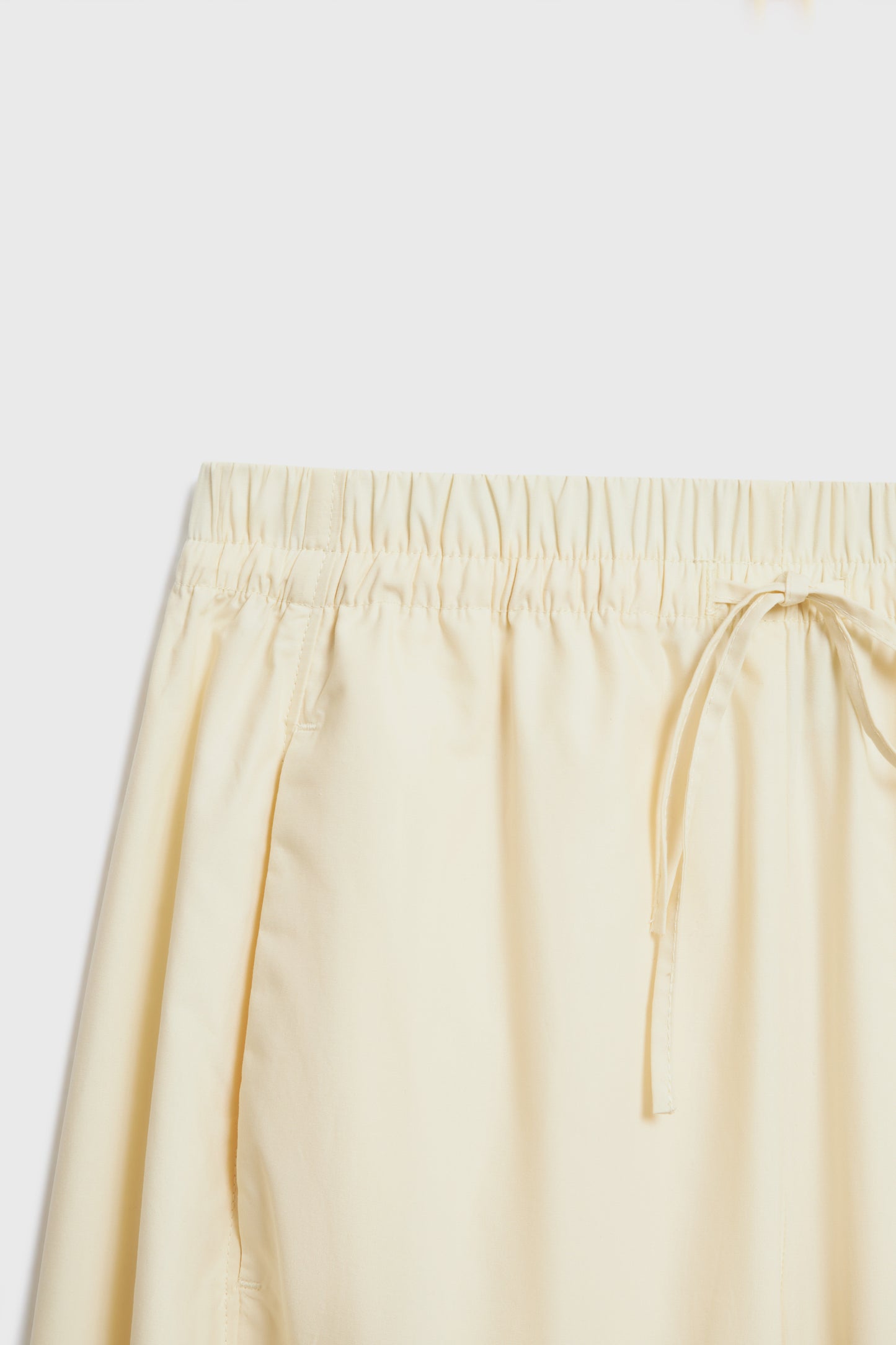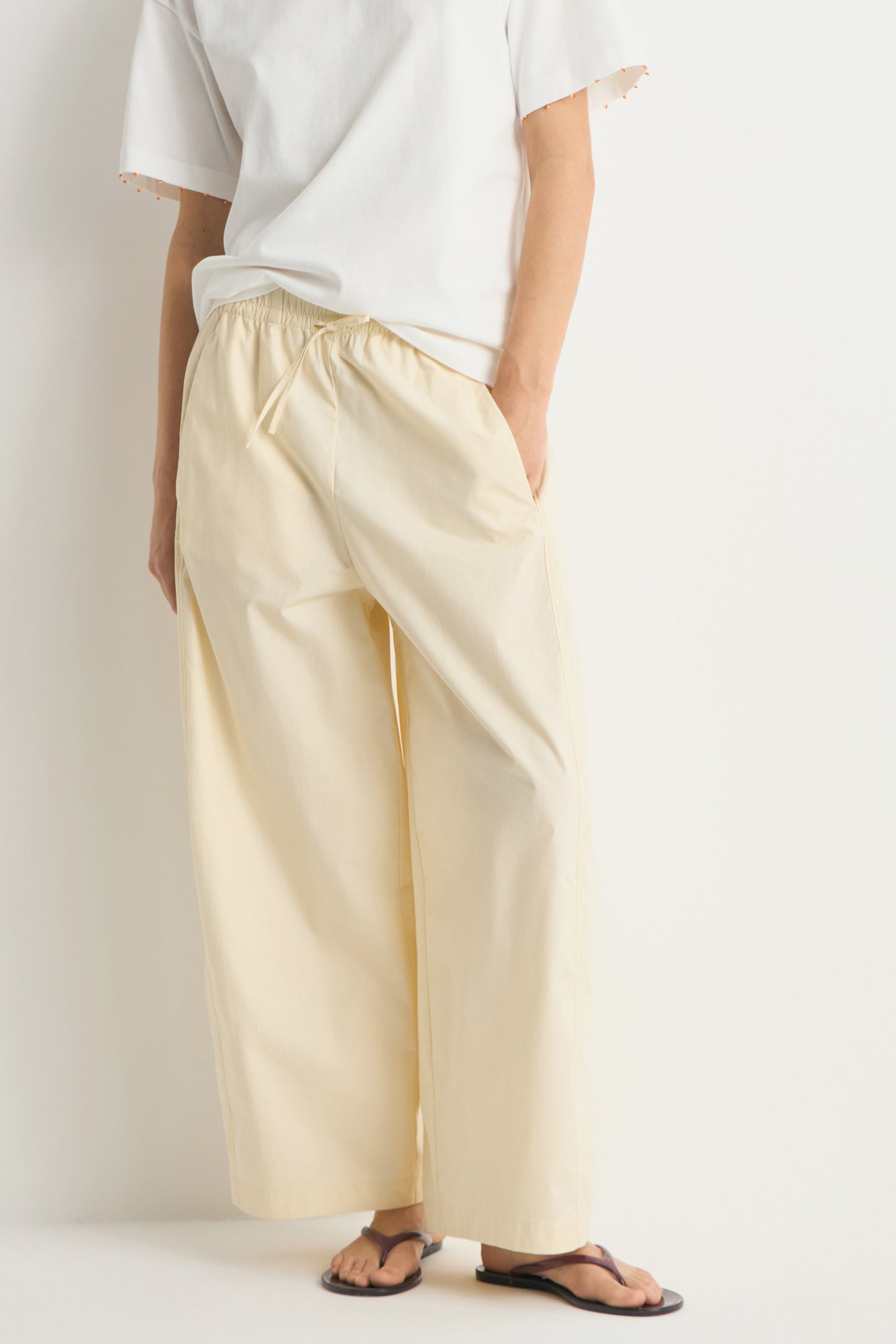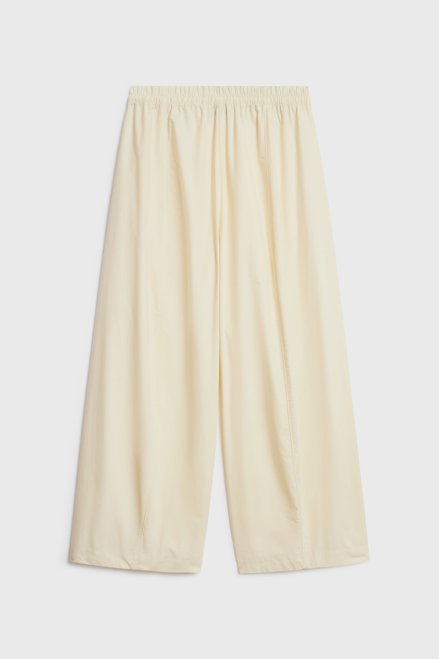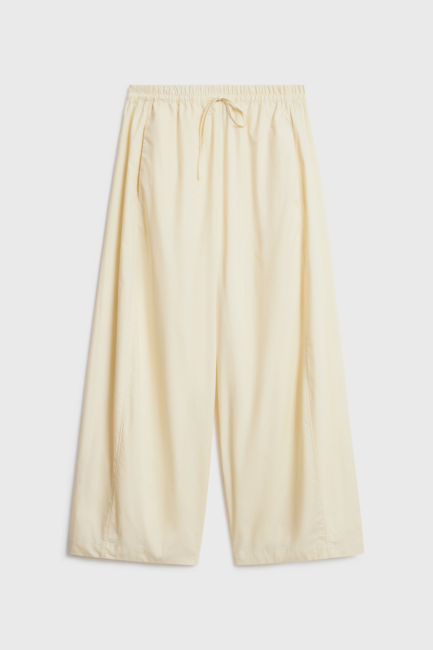 Extra-loose fit from waist to hip and extra-baggy fit from thigh to hem. These trousers feature an elasticated, drawstring waist and diagonal side pockets.