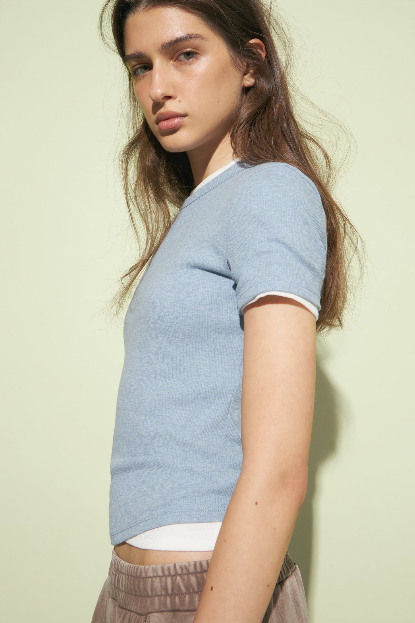 Fitted T-shirt made of stretch cotton. Round neck and short sleeves.
