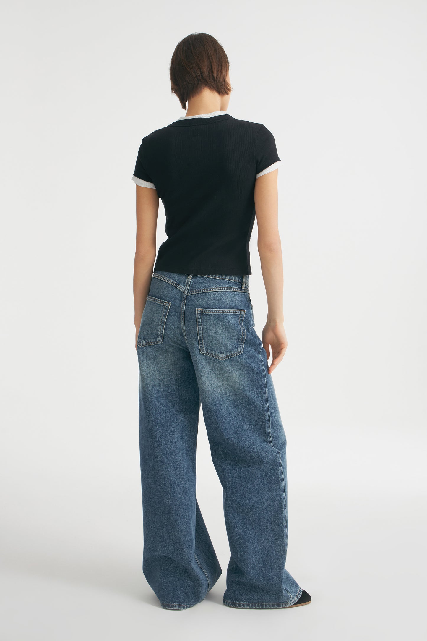Fitted T-shirt in soft cotton and viscose jersey. Round neck, short sleeves and buttons down the front.