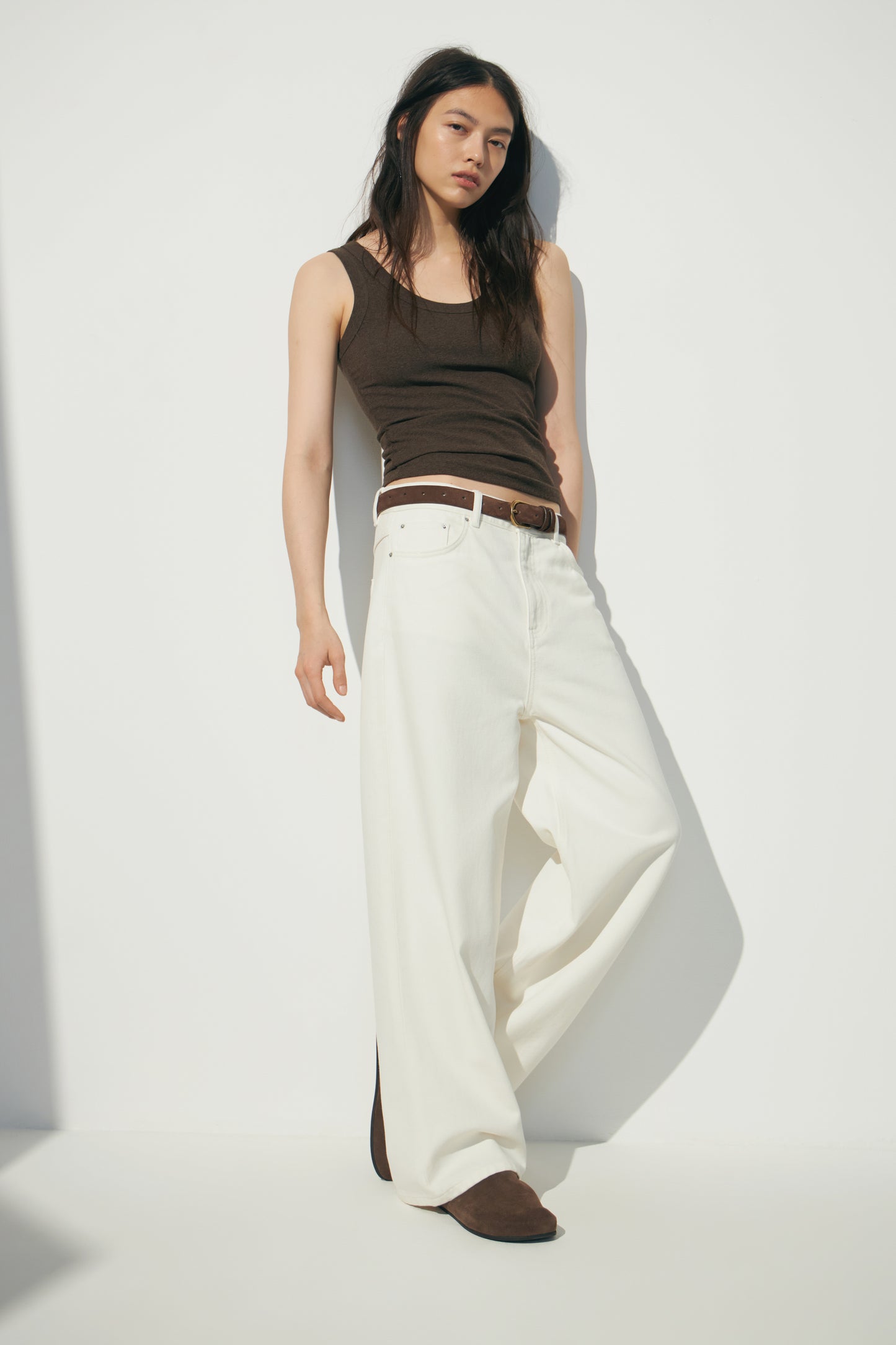 Fitted tank top in cotton and viscose jersey with a round neckline.