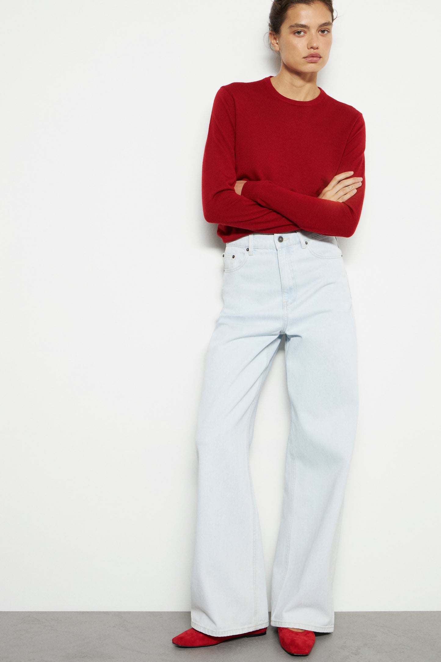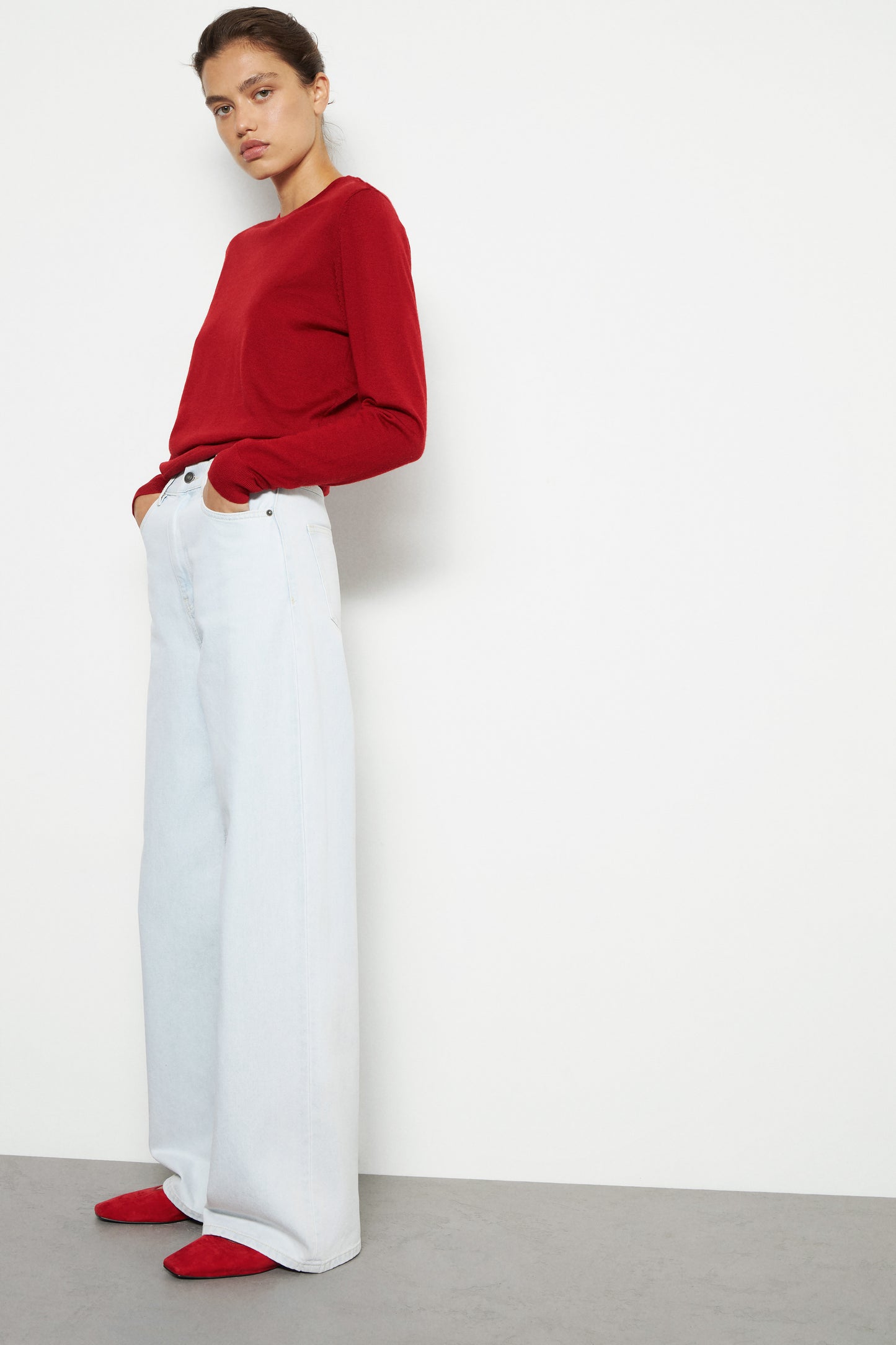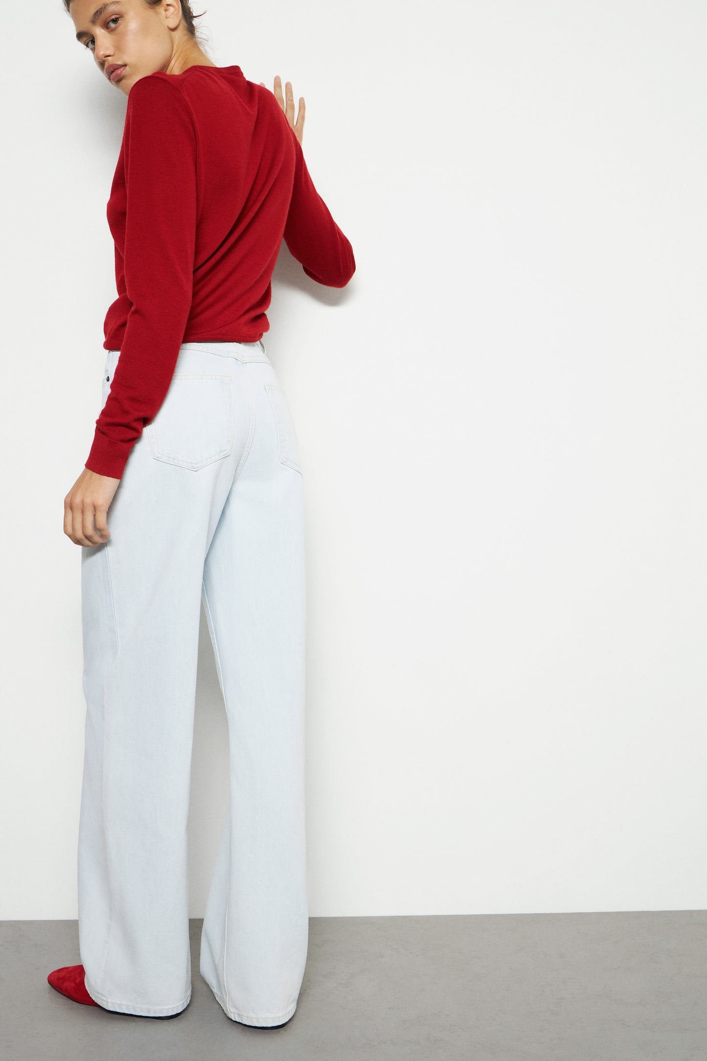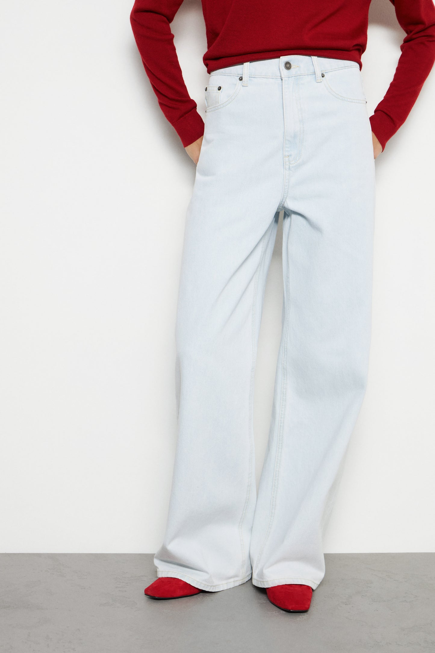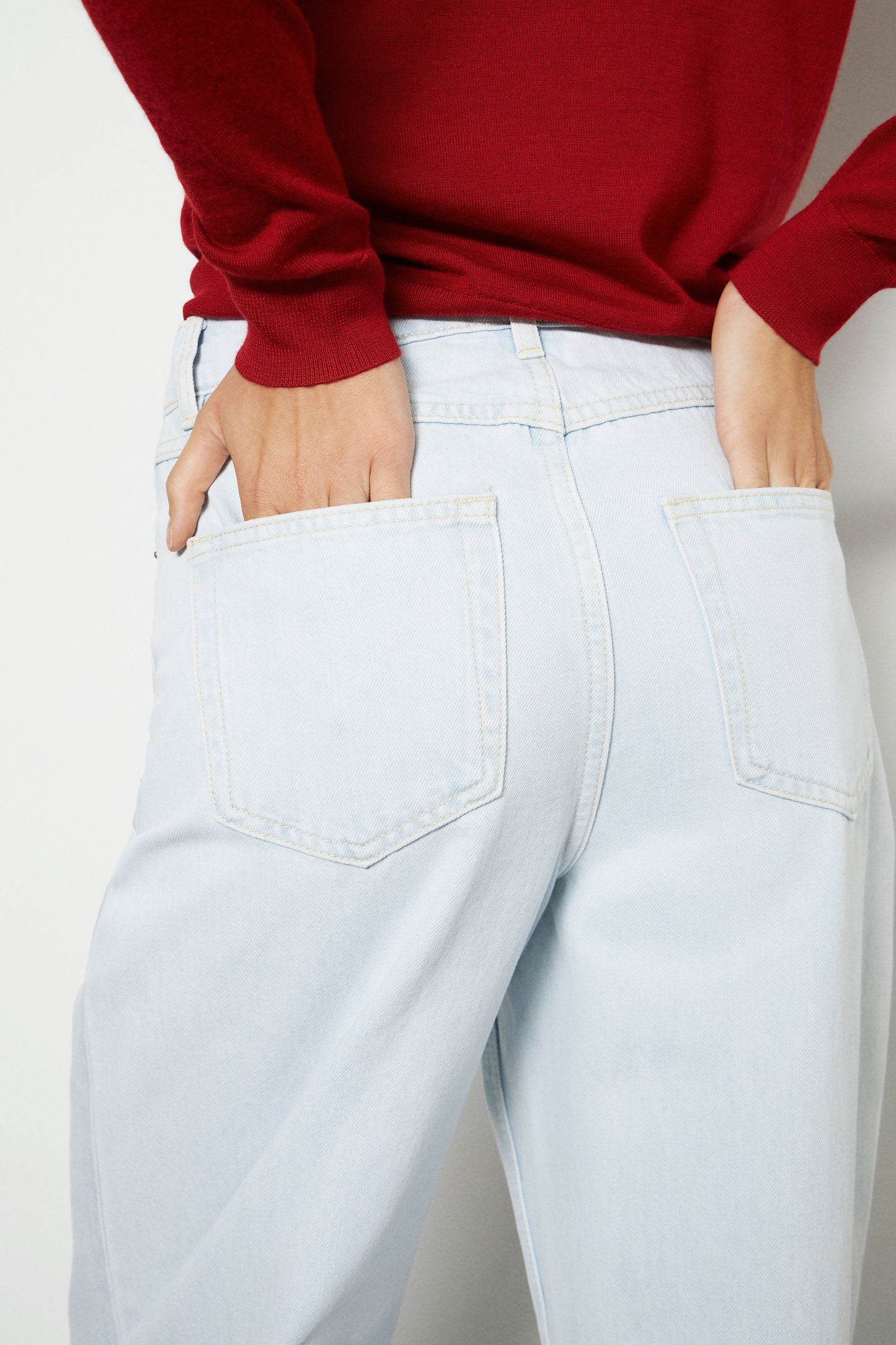 High-waist jeans with five pockets. Sturdy denim crafted from a cotton and viscose blend. Wide-leg design. Faded effect. Front zip fly and top button fastening.