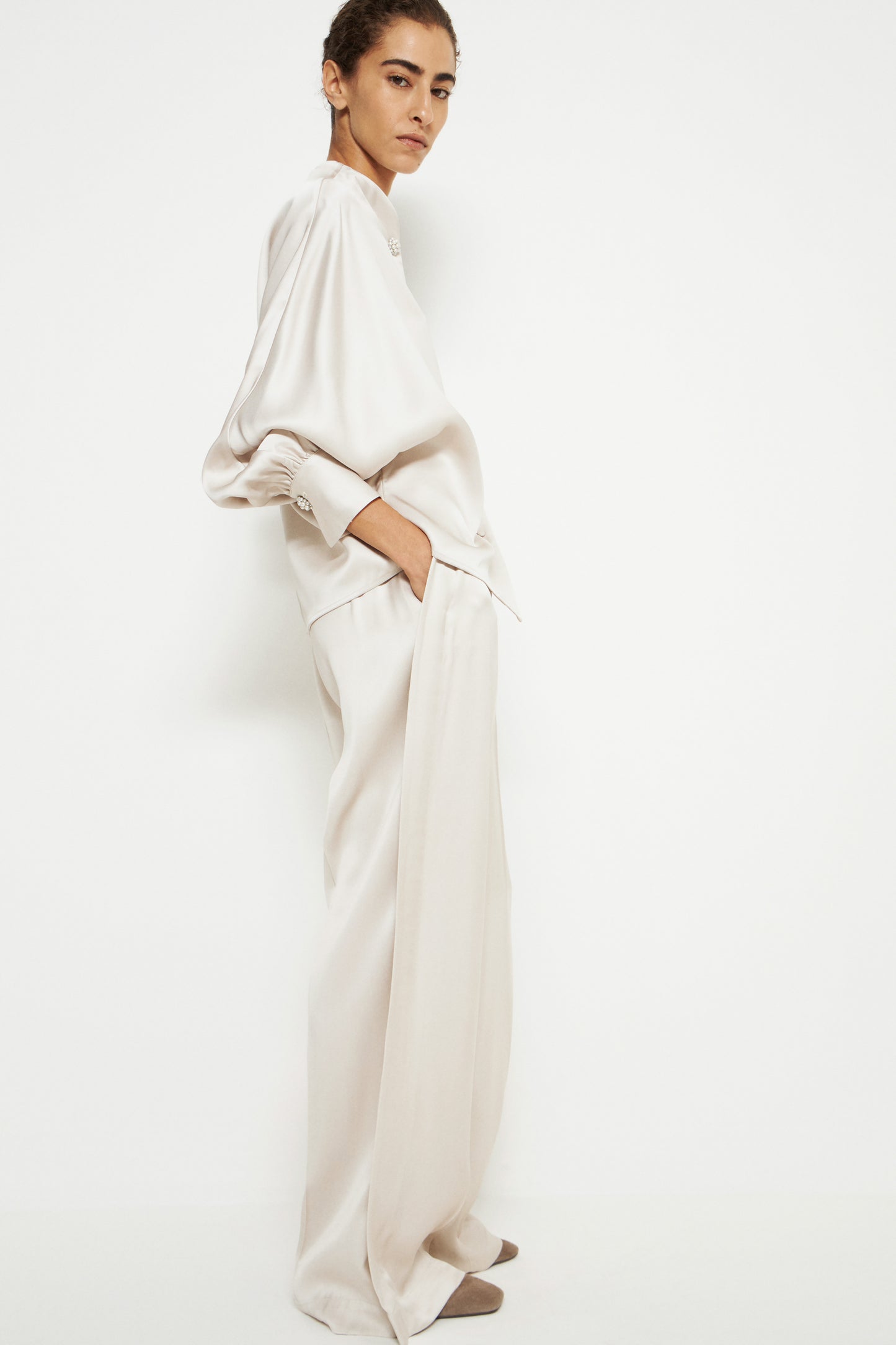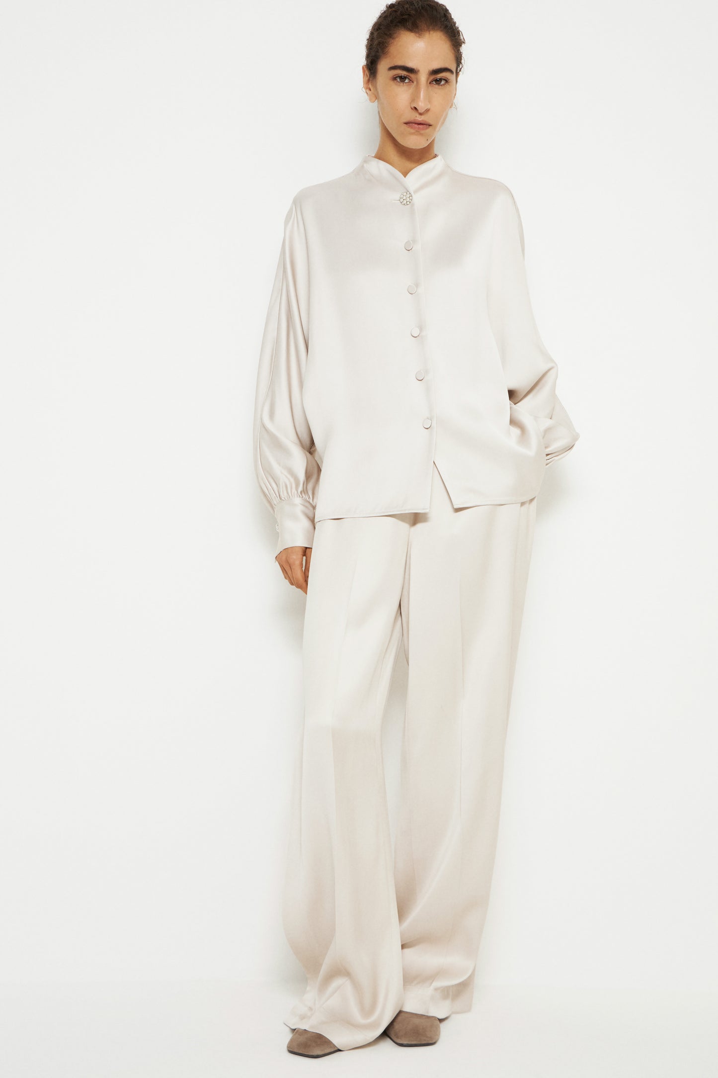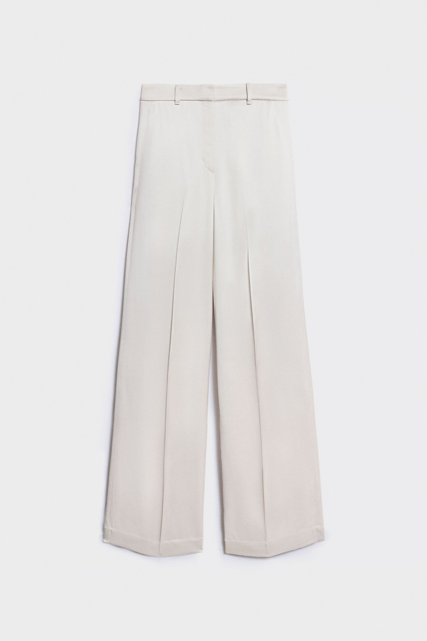 Trousers with front creases. Straight-leg design. Belt loops at the waist. Featuring front pockets and rear welt pockets. Front zip fly, button and metal hook fastening.