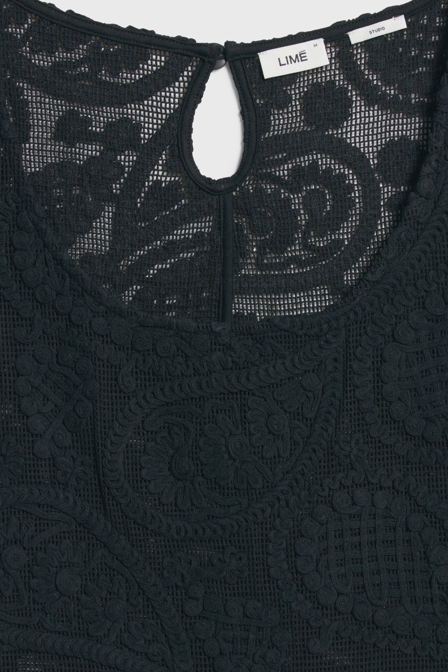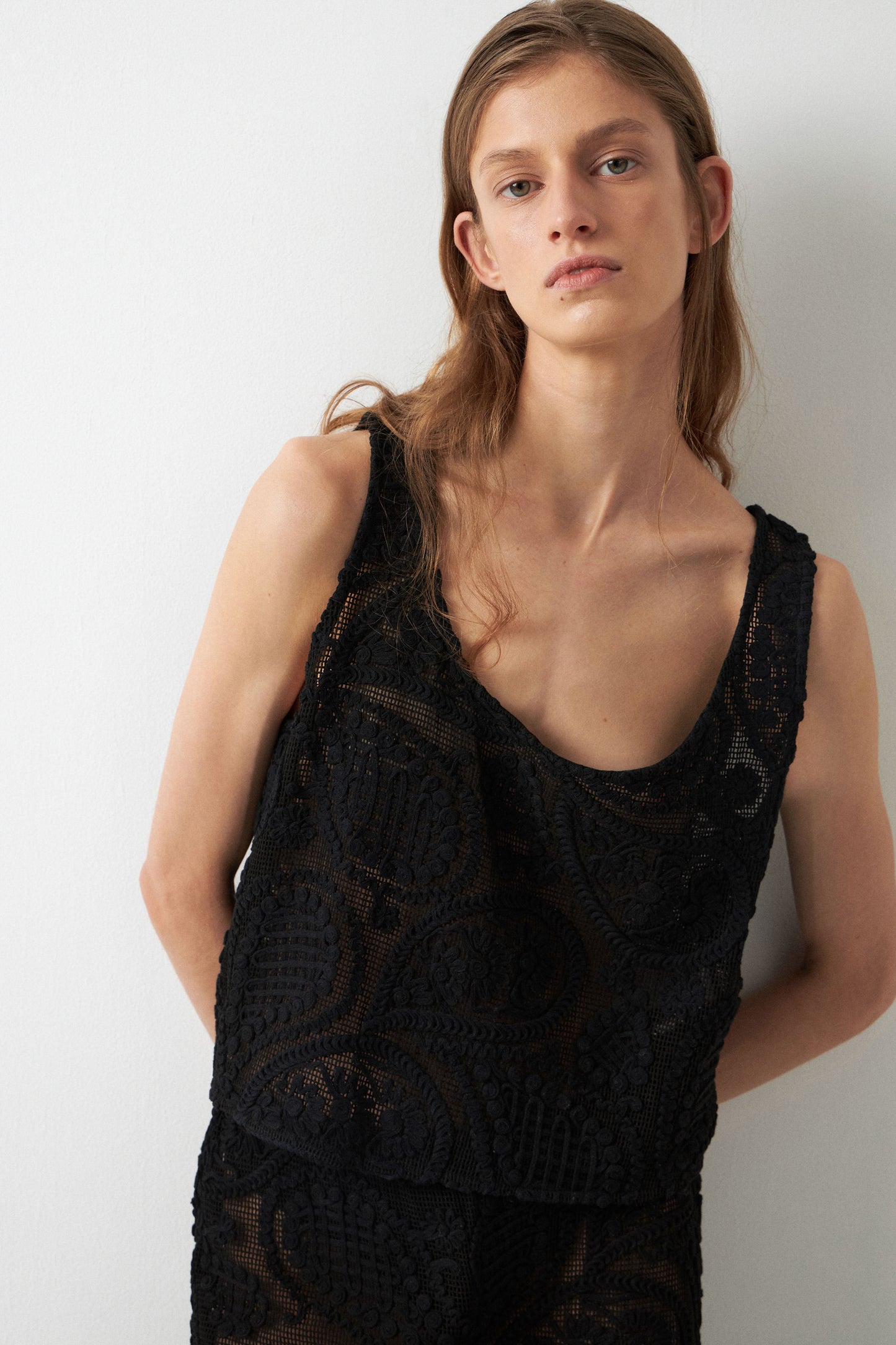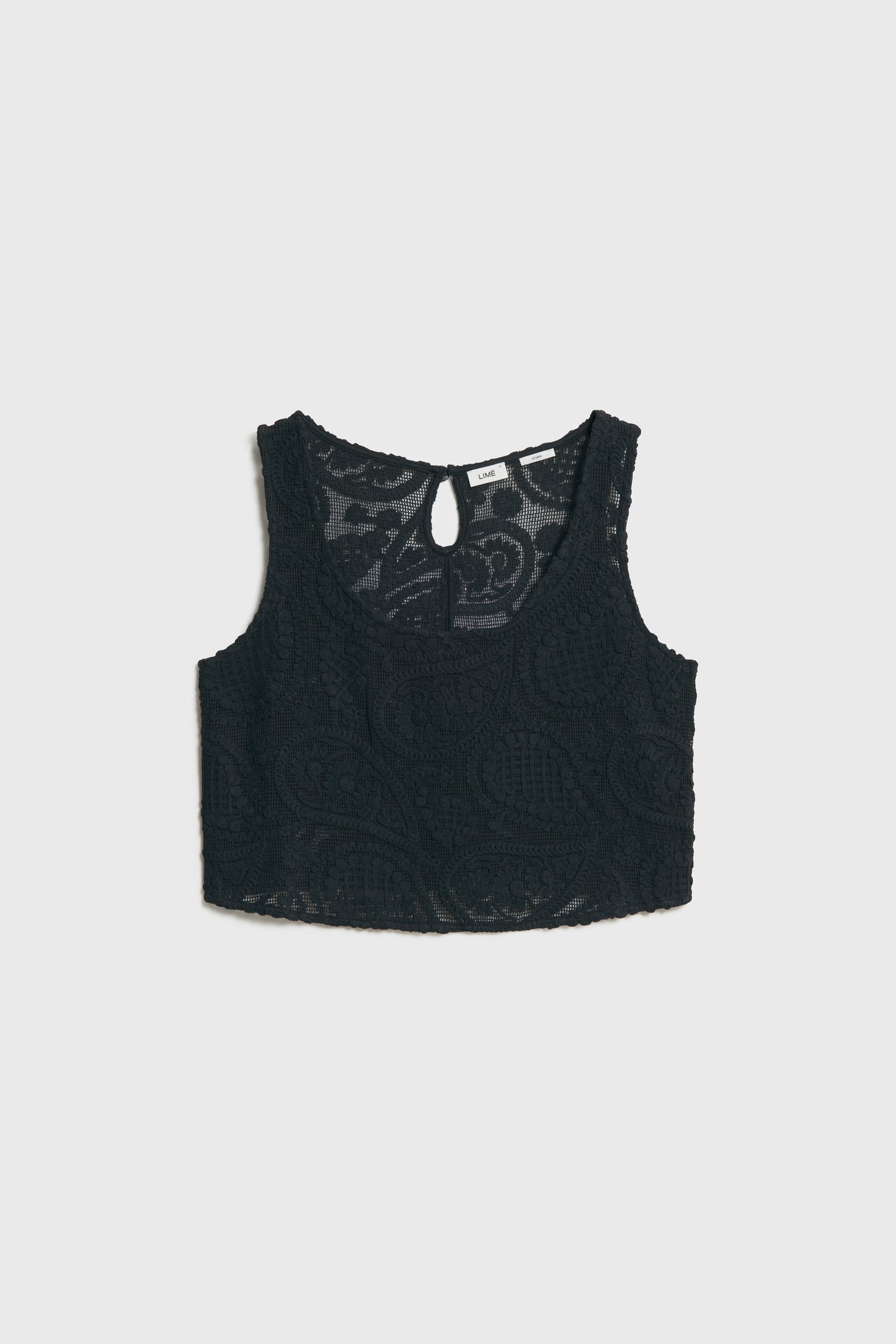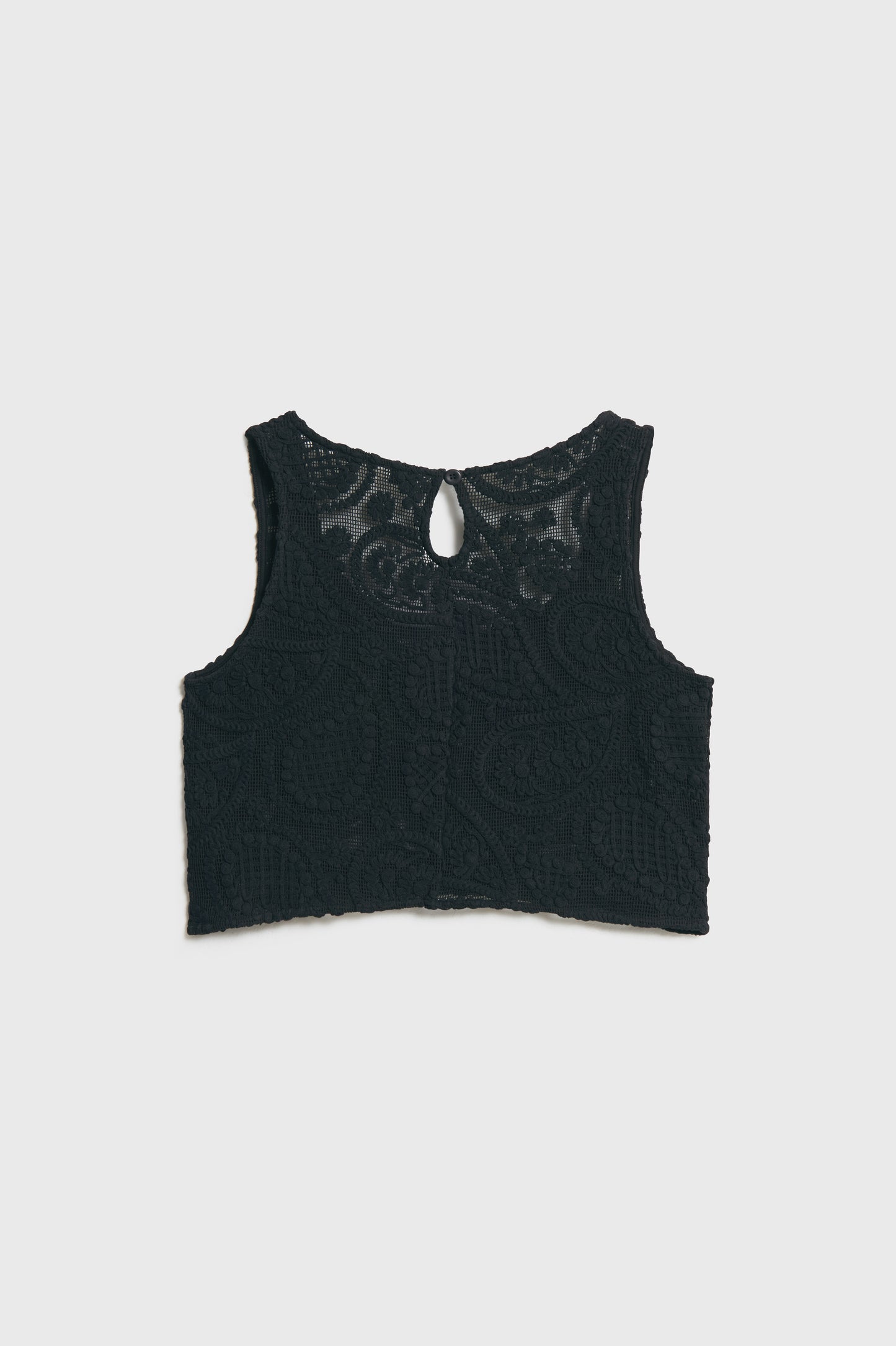 Cropped top in a crochet-look cotton with a round neckline. Adorned with a bohemian-inspired ethnic motif. Unlined for a lightweight feel, it looks best paired with the matching piece.