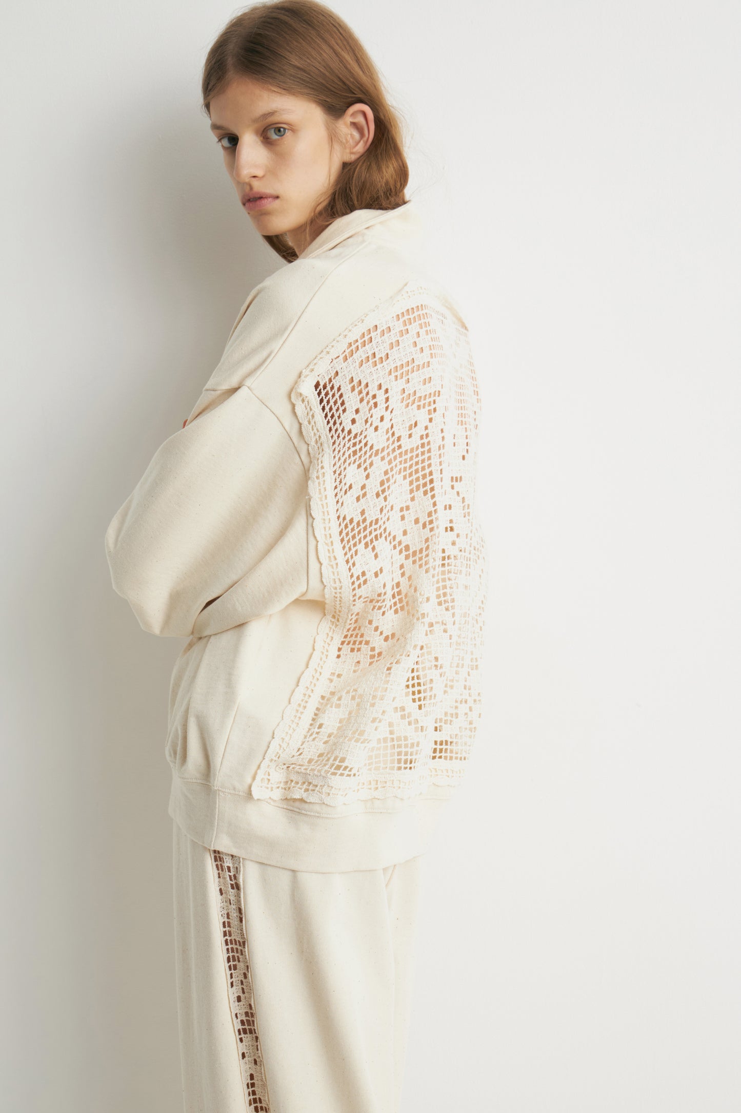 CROCHET-LOOK DETAIL SWEATSHIRT