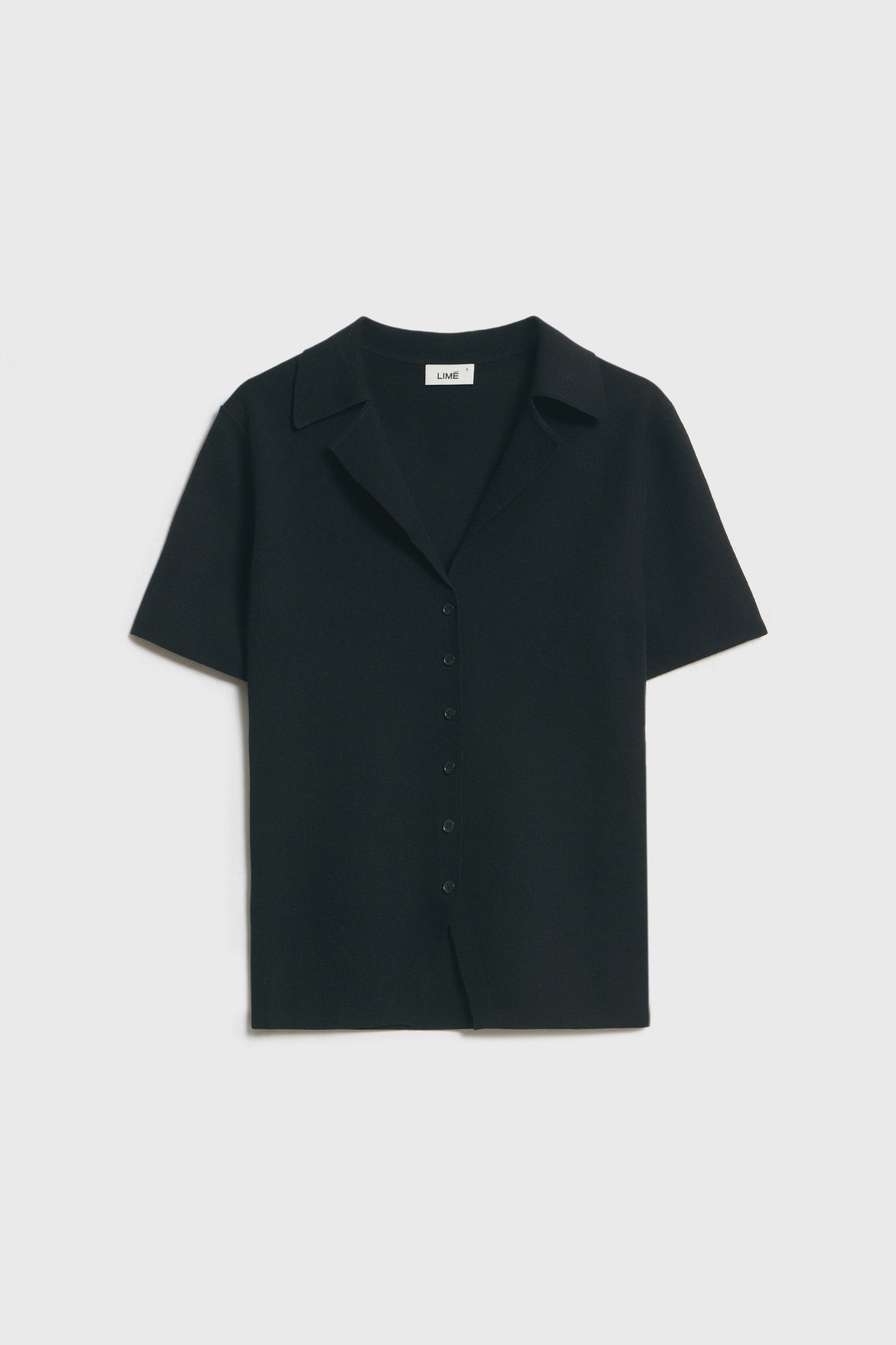 Cropped cardigan in a soft, fine-knit cotton blend with front buttons, collar and short sleeves.