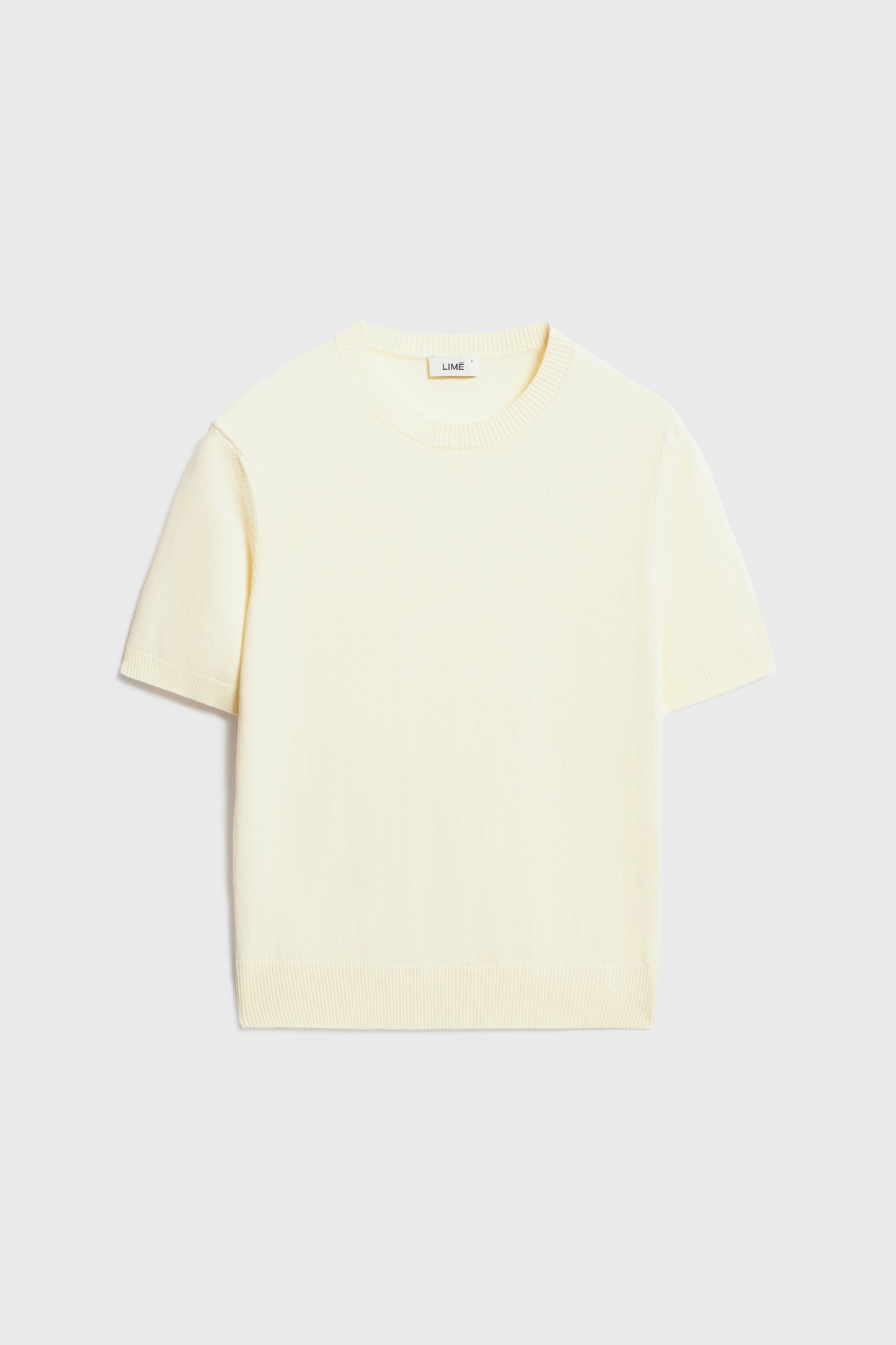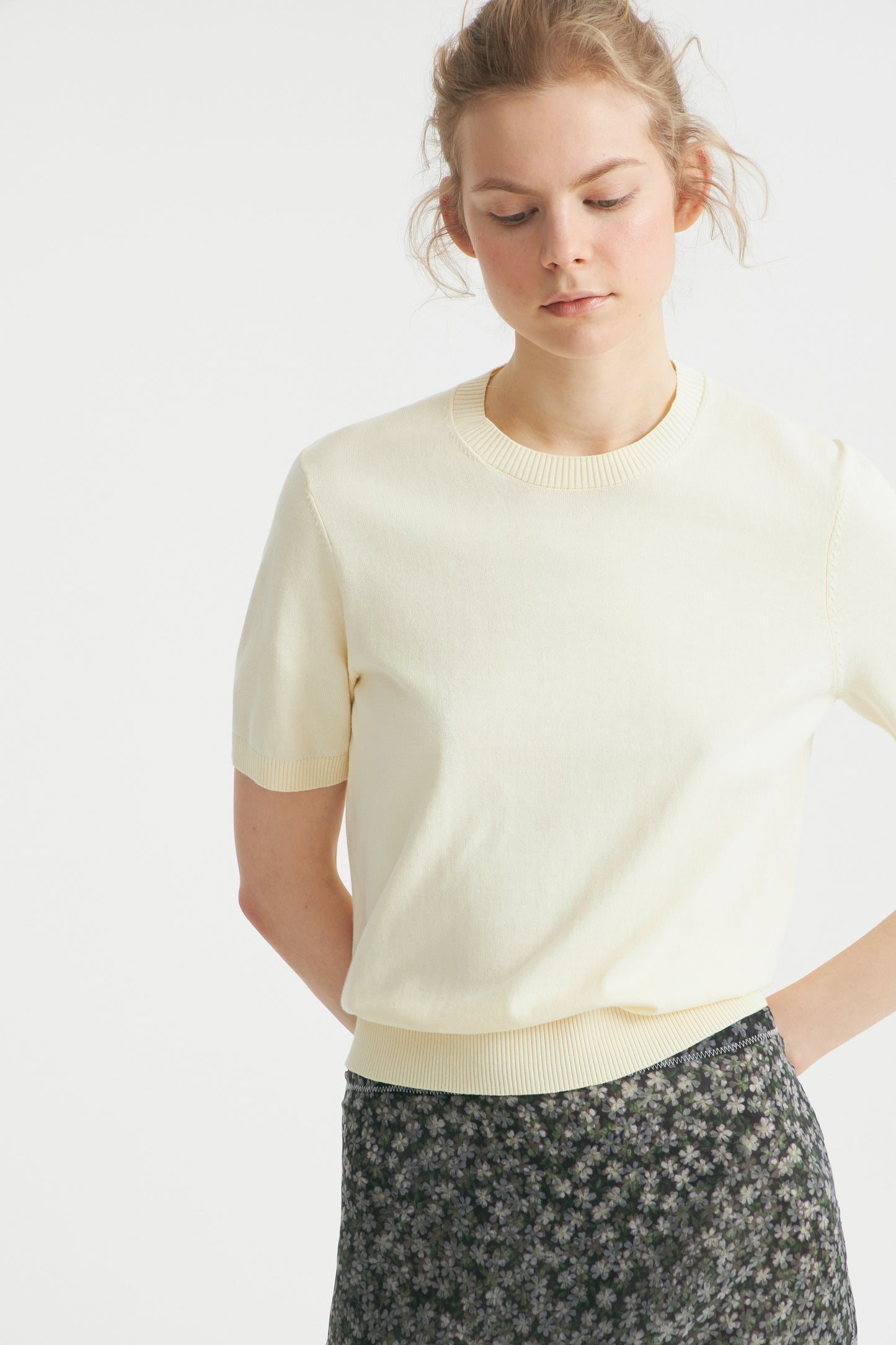 Jumper in a soft, fine-knit cotton with a round neckline and short sleeves. Slim fit.