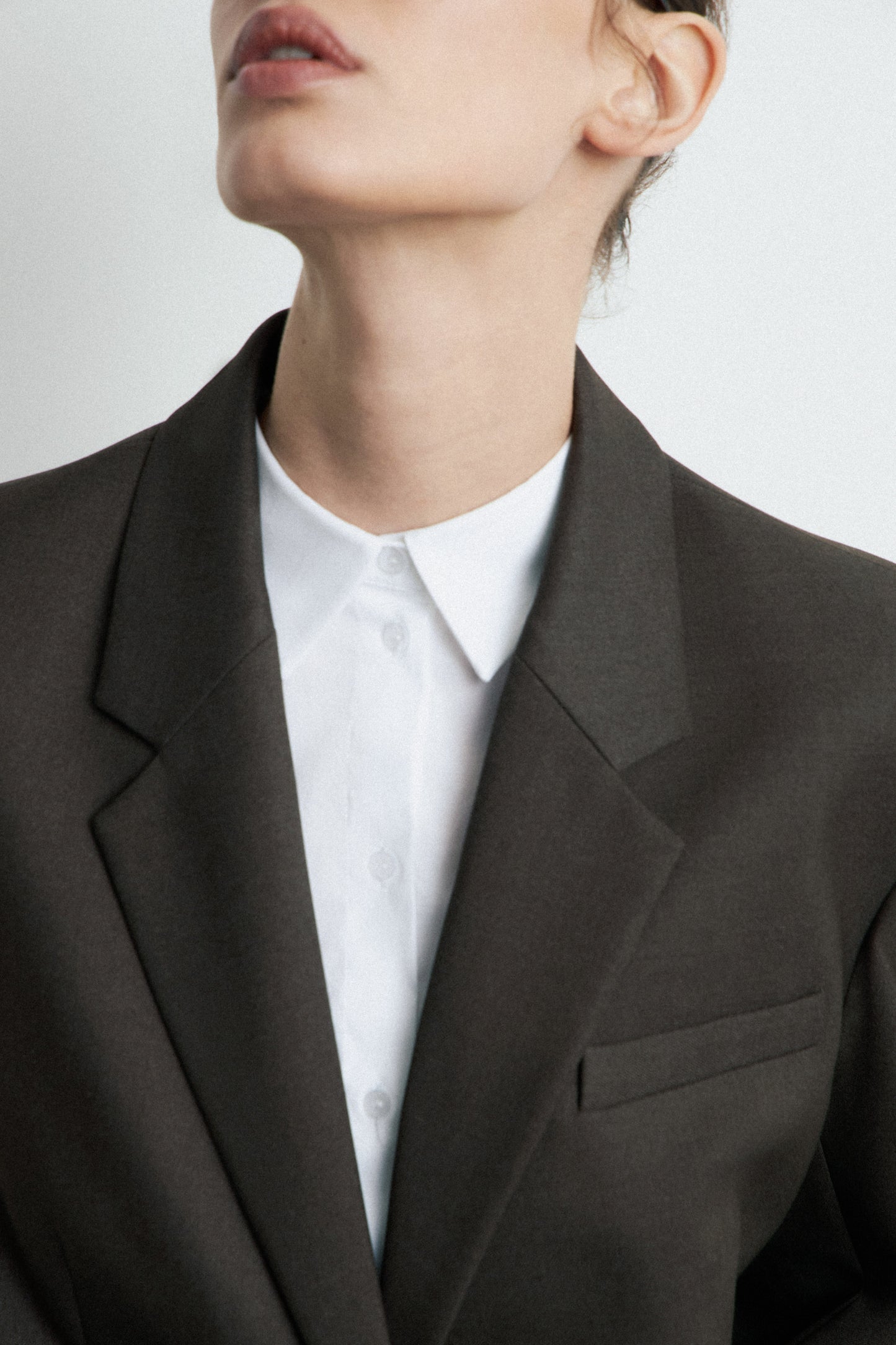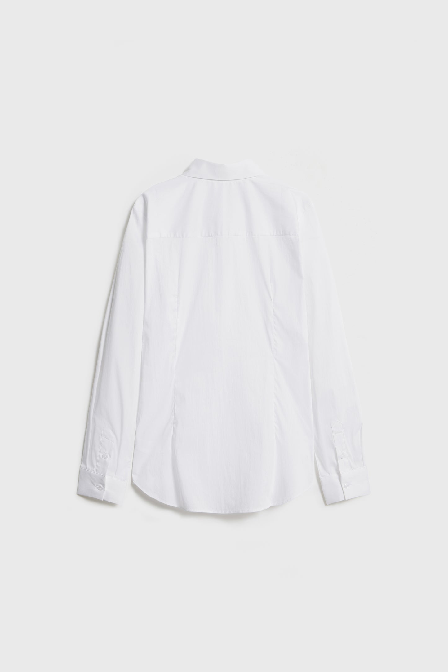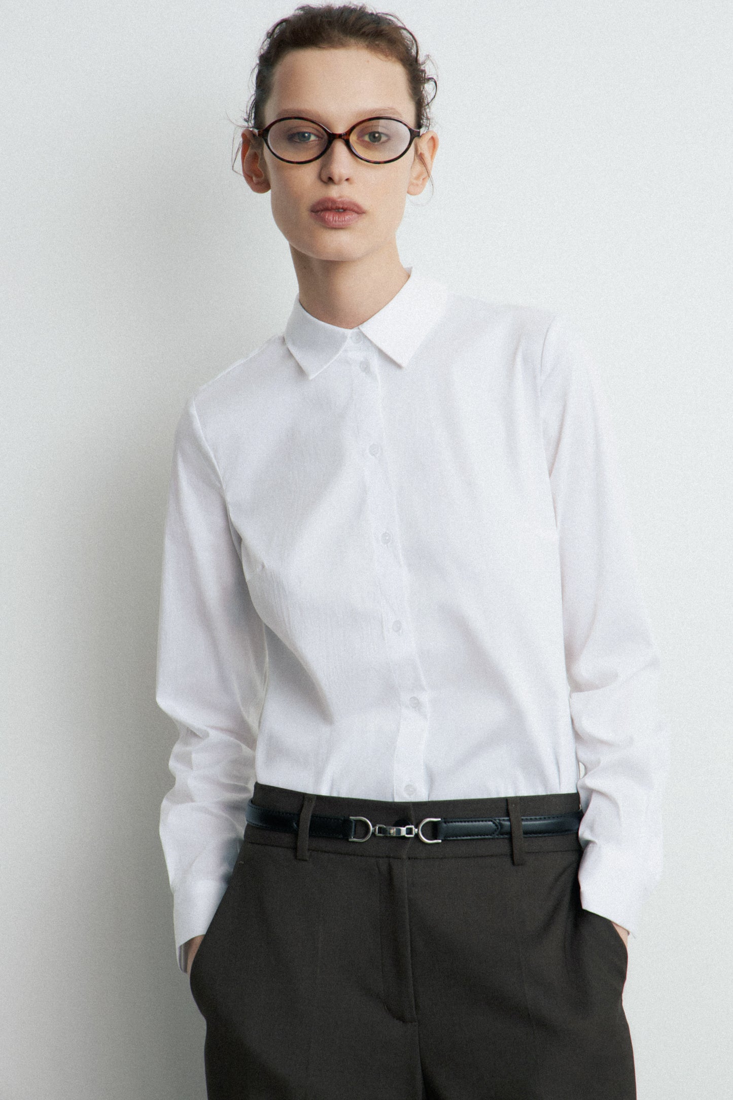 Fitted shirt made of stretch cotton. Featuring a lapel collar and long sleeves with cuffs. Gently rounded hem. Button-up front.