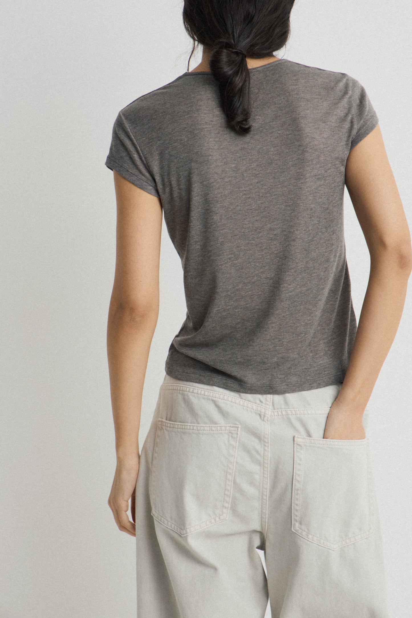Fitted T-shirt in a lyocell and wool blend with a round neckline and short sleeves.