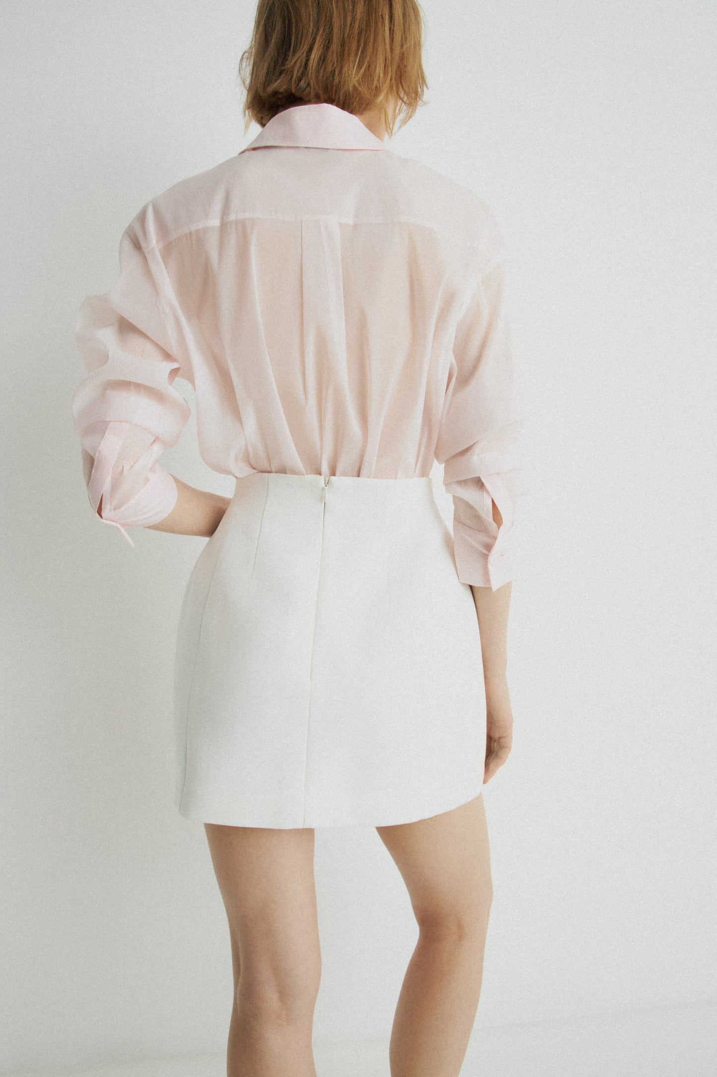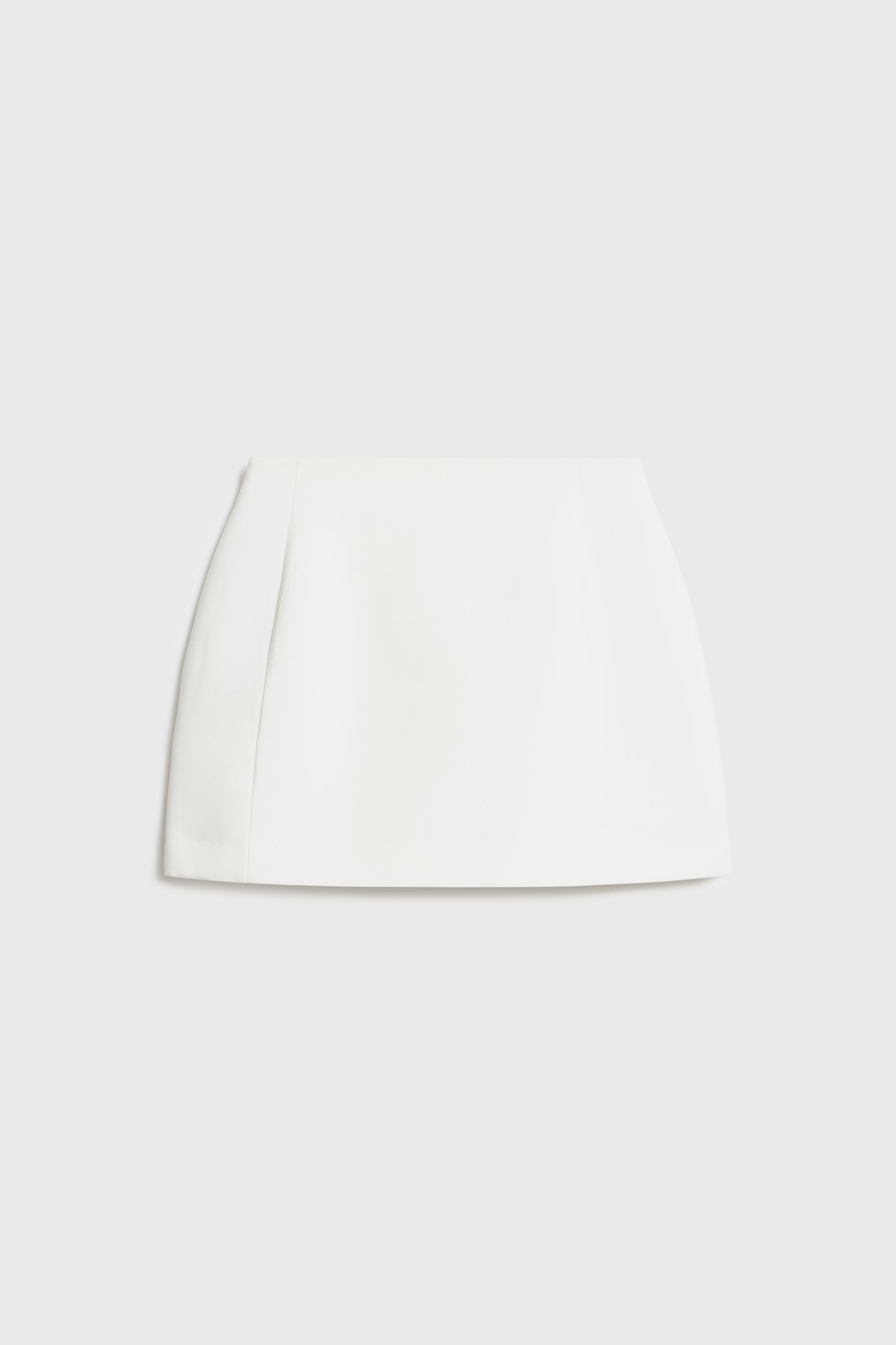 Mini skirt in woven fabric with a visible, vertical seams at front and back. Concealed zipper at the back. Lined.