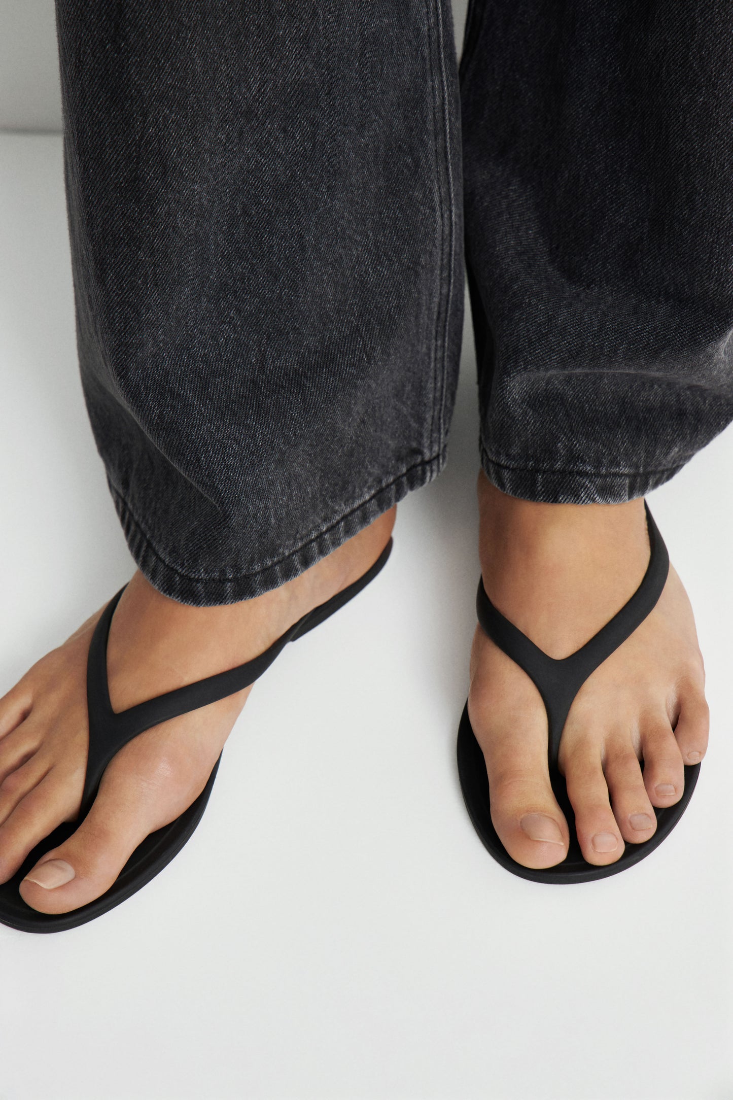 Flip-flops with round toes. Your purchases are delivered with a fabric bag.