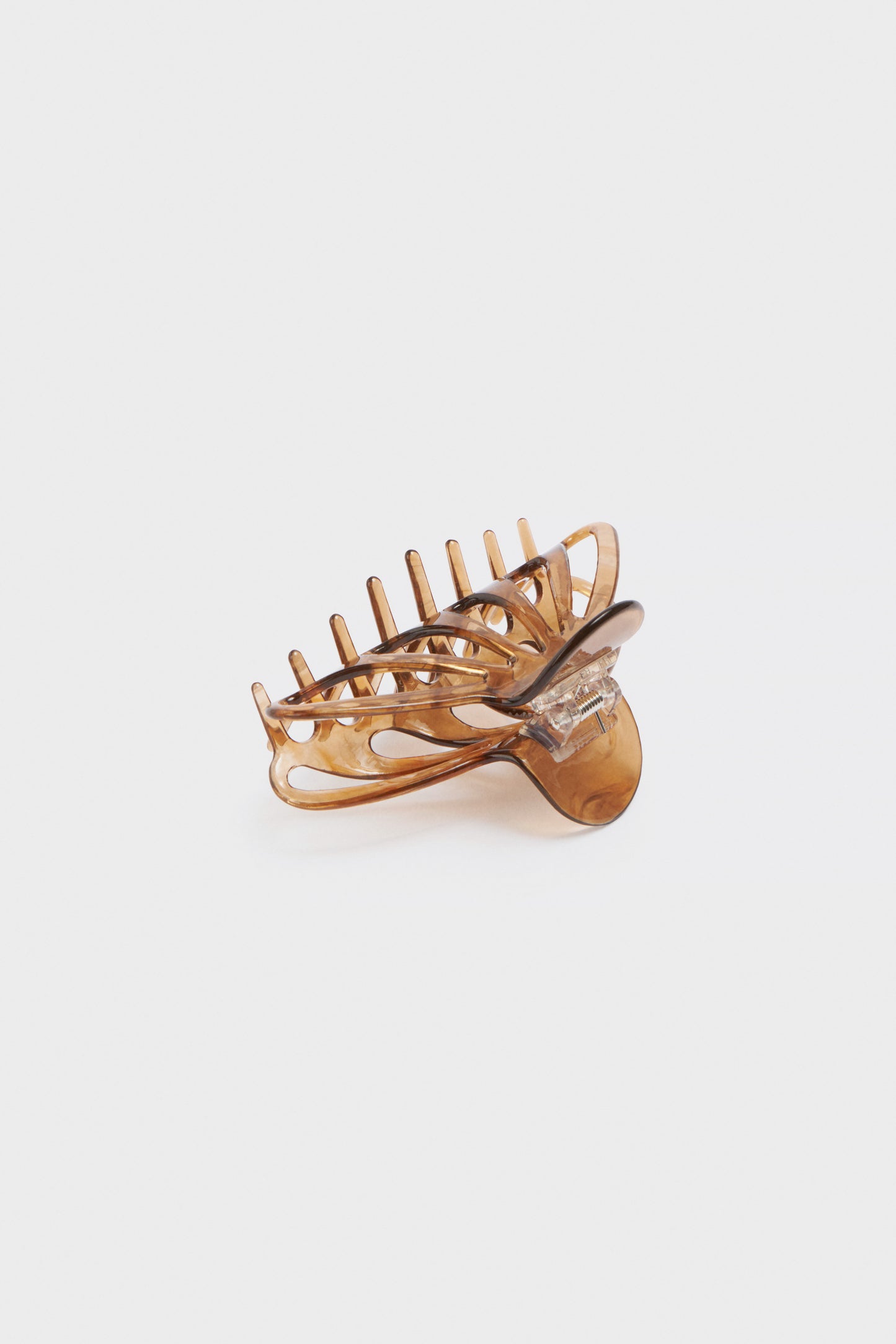 Claw clip with drop-shaped cut-out sections on each side. Versatile design. Comfortable hold keeps your hair securely in place throughout the day.