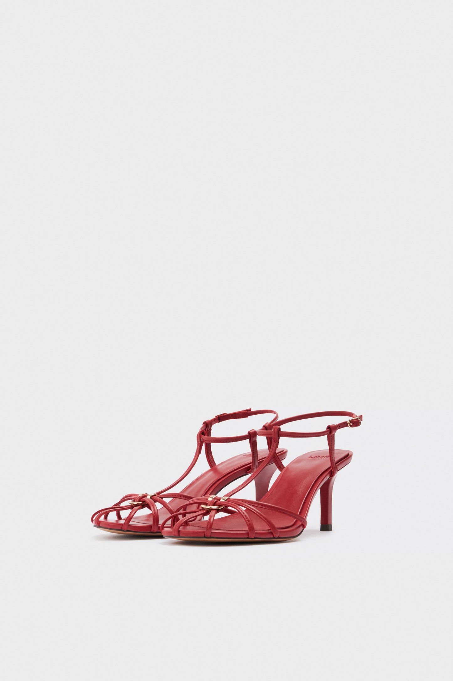 High heel leather sandals. Featuring with rounded open toes and narrow foot straps with gold-colored metal detail. Leather linings and insoles. Buckled ankle strap fastening. Your purchases are delivered with a fabric bag.