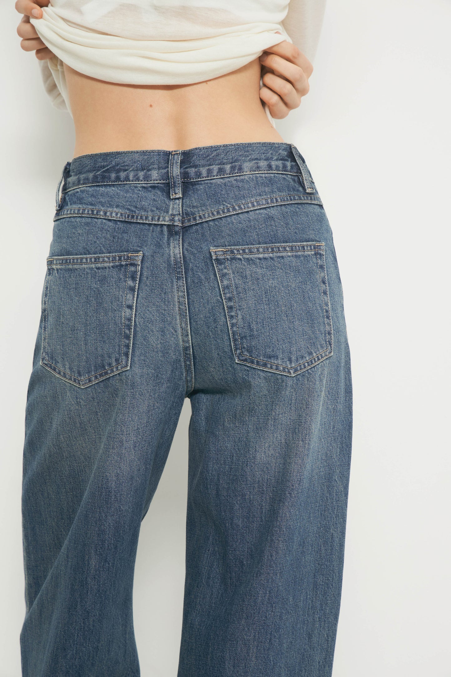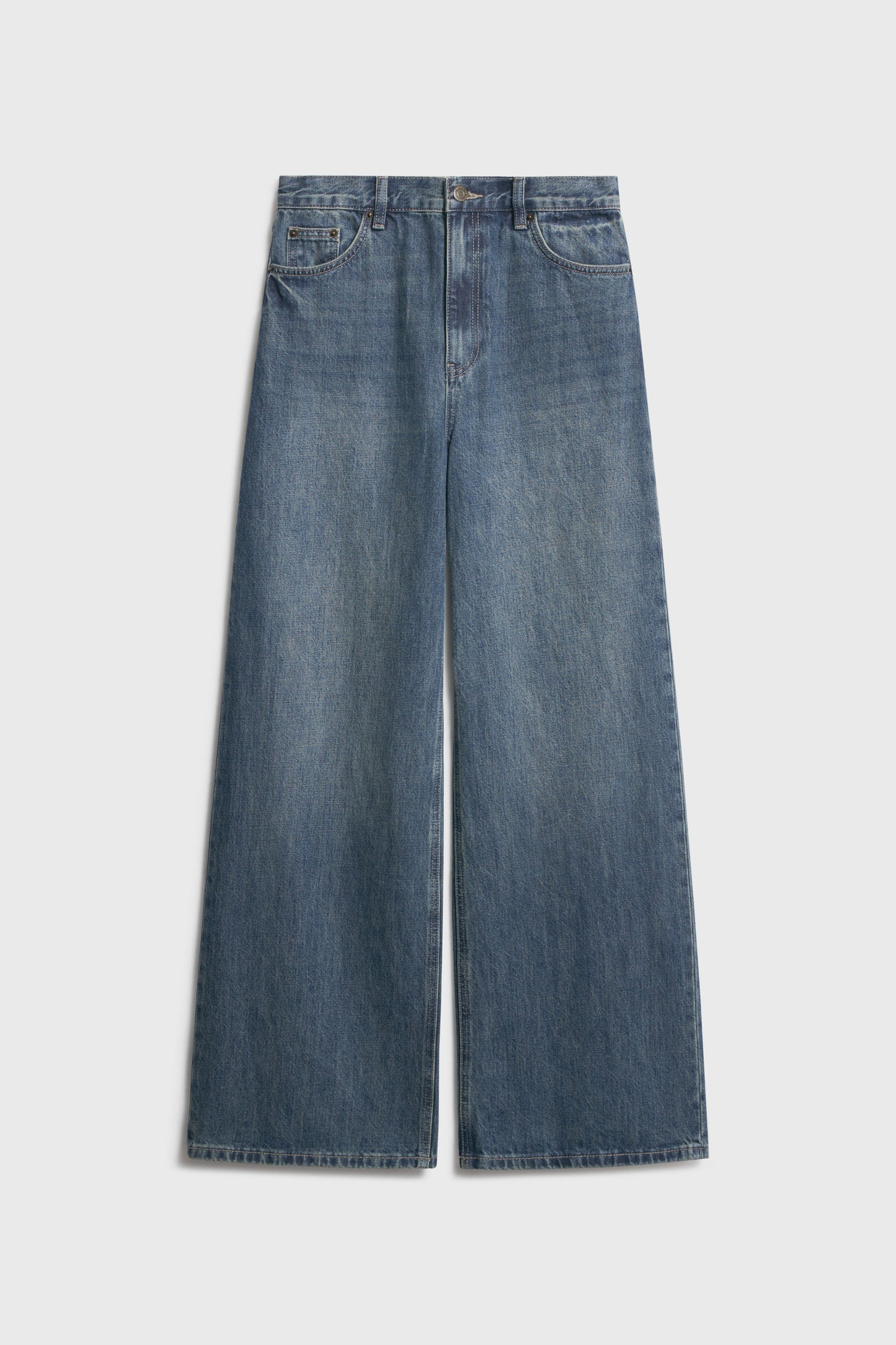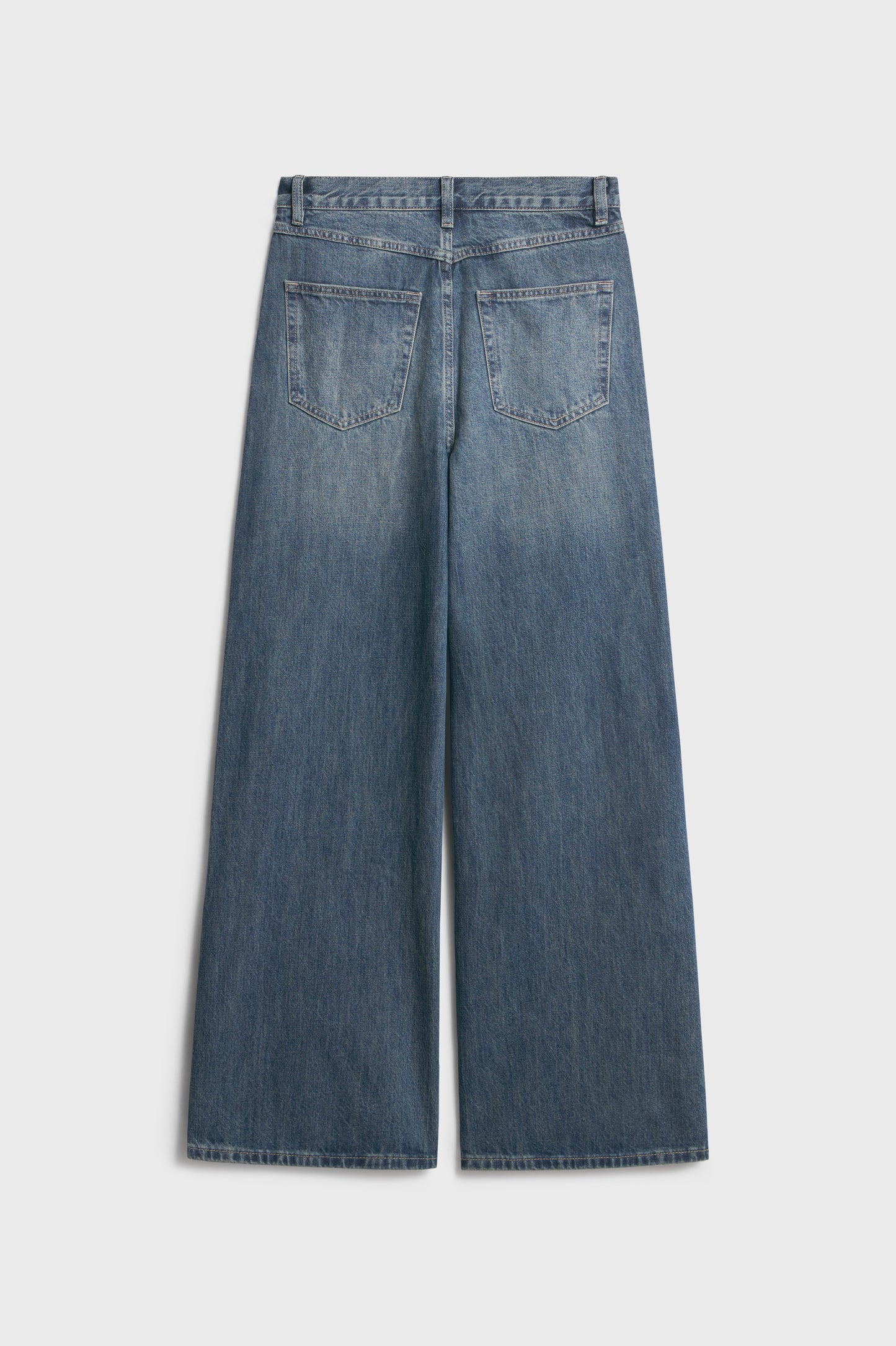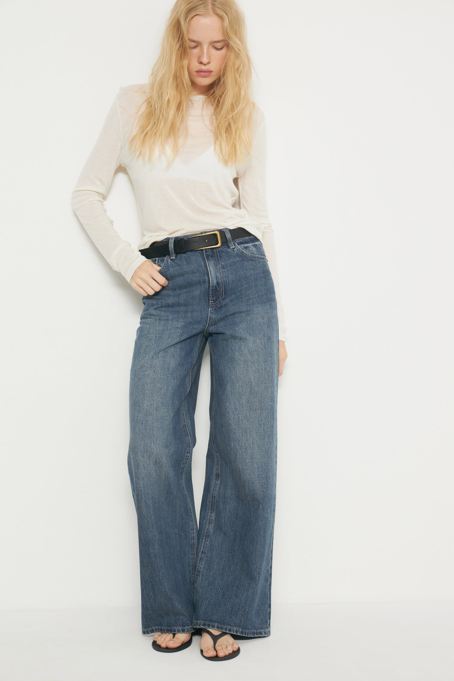 High-waist jeans with a five-pocket style. Wide-leg design. Faded effect. Front zip fly and top button fastening.