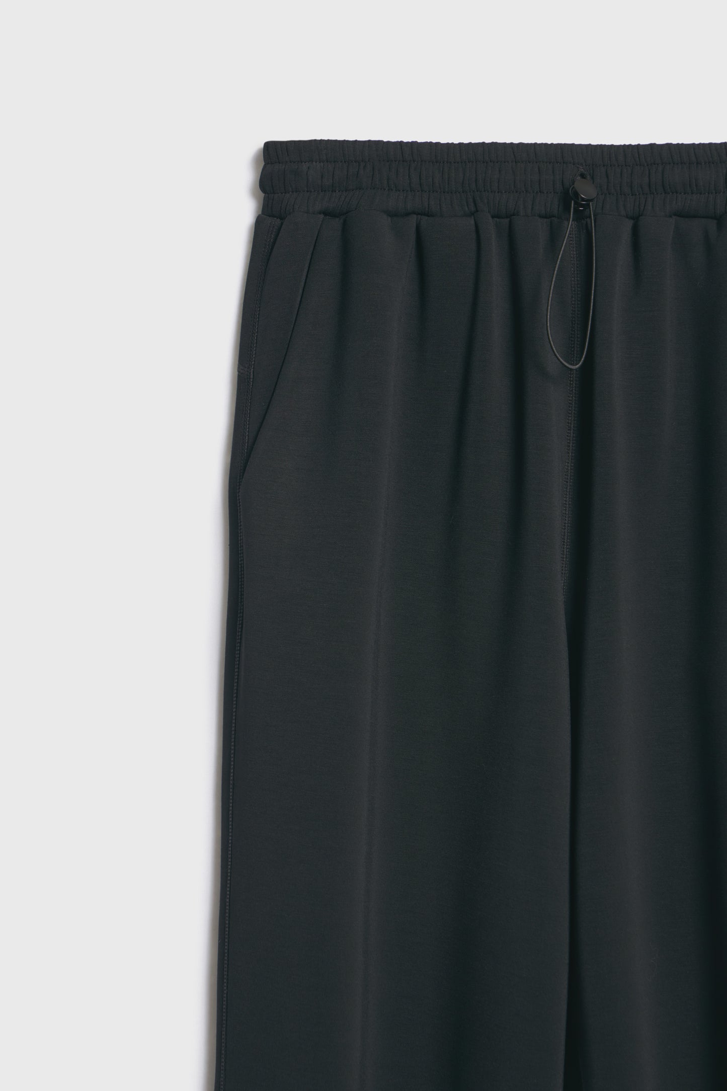 Loose-fit trousers in interlock modal blend jersey. Detailed with visible seams, a drawstring with stopper at the waist and elasticated cuffs. Front pockets.