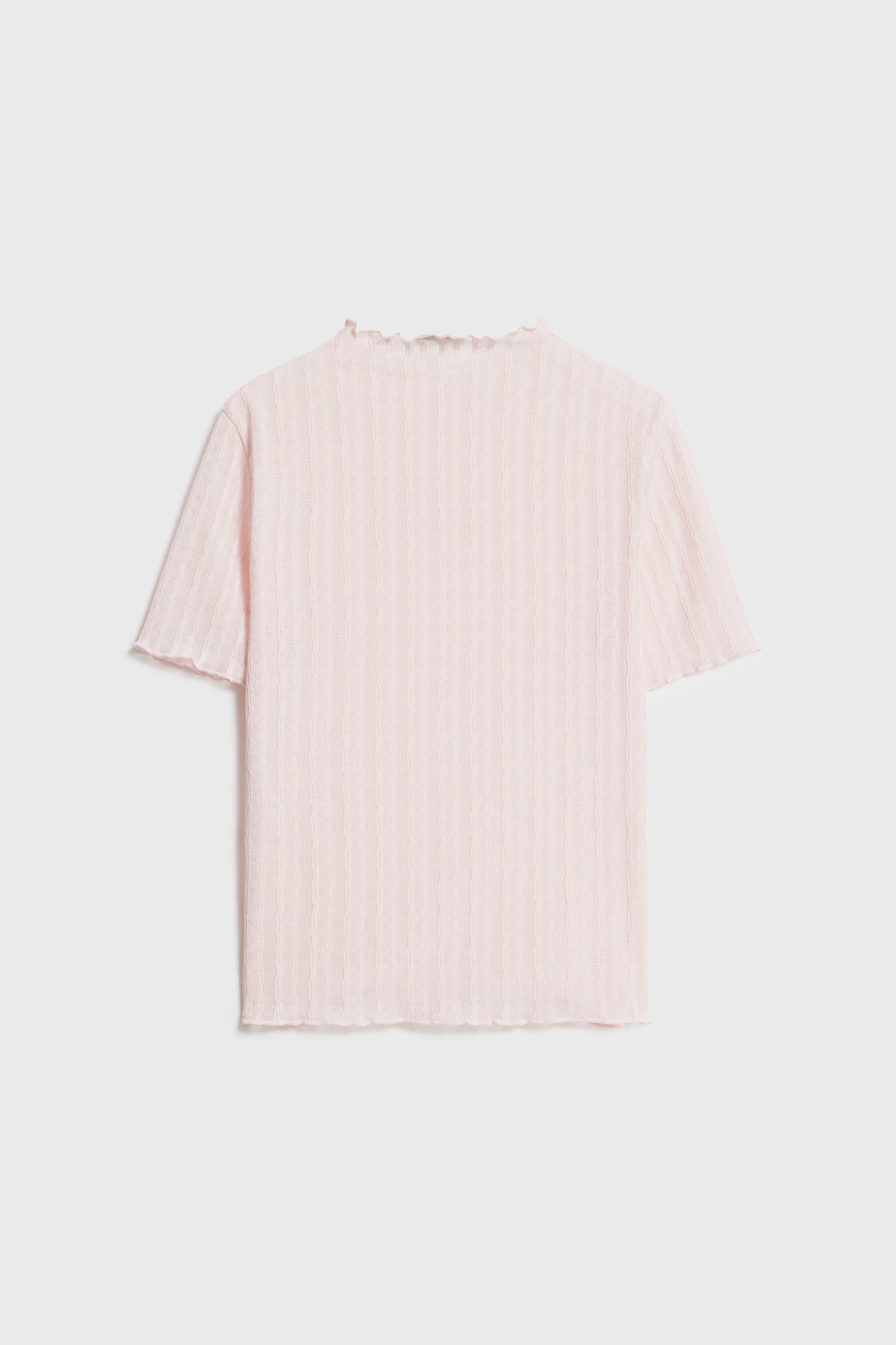 Fitted T-shirt in a textured fabric. Featuring a mock turtleneck and short sleeves. Overlocked edges.