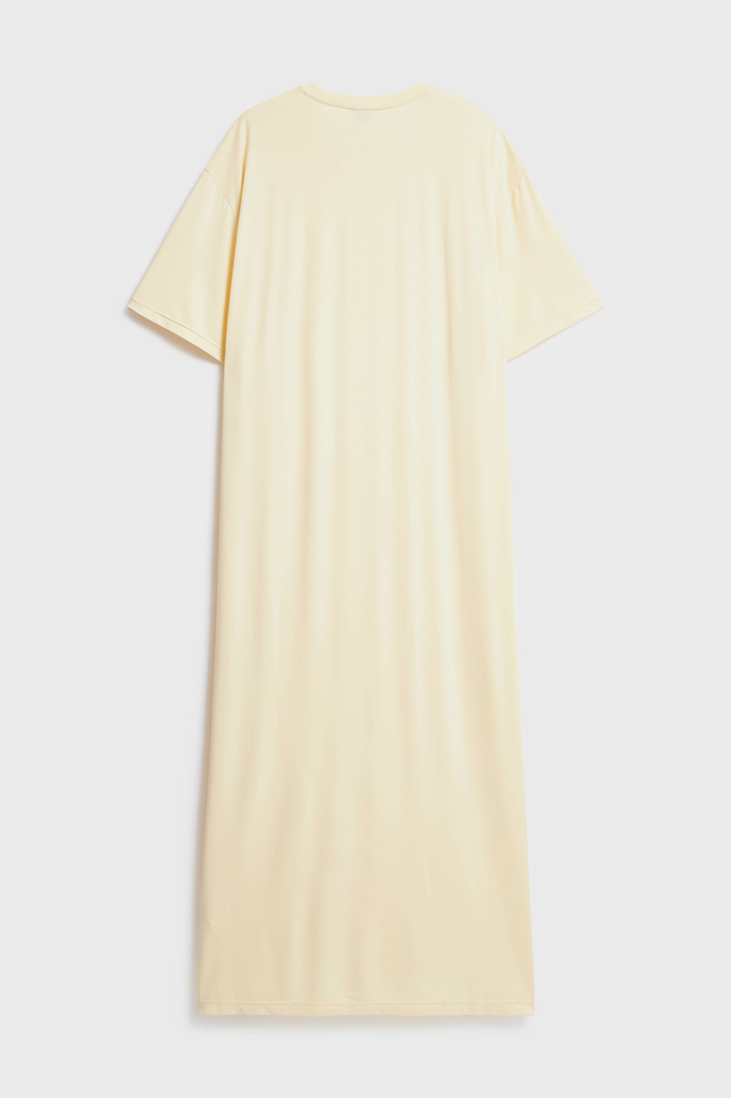 Long T-shirt dress in soft viscose blend with a round neckline and short sleeves.