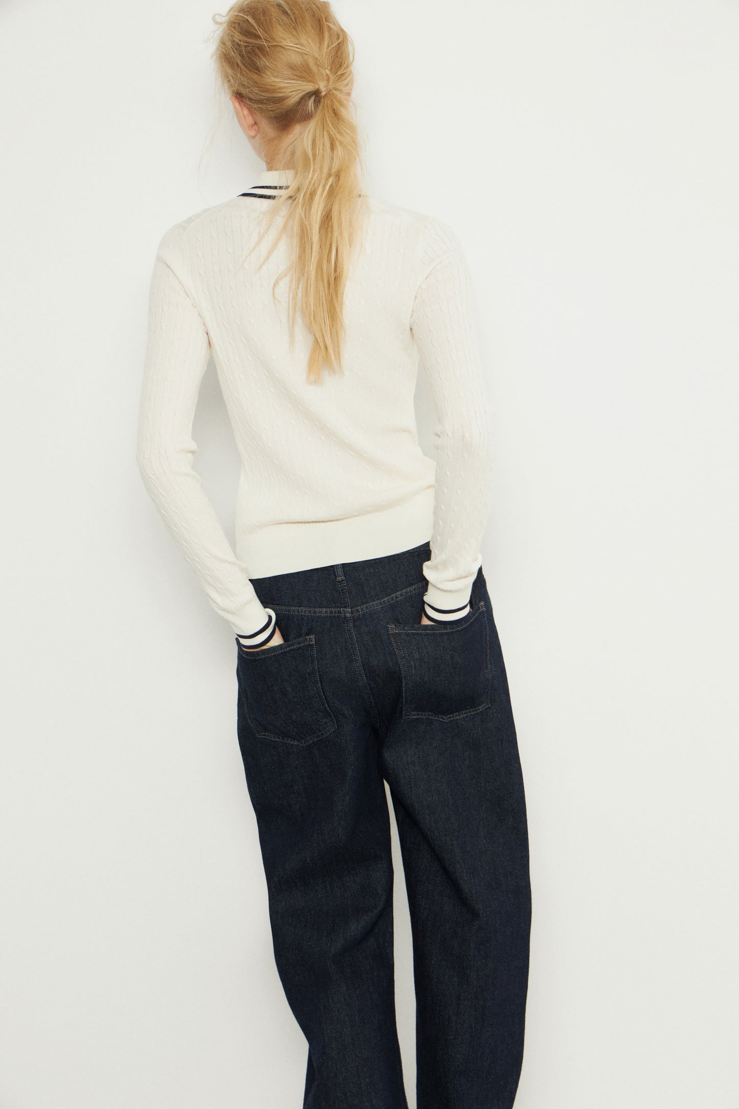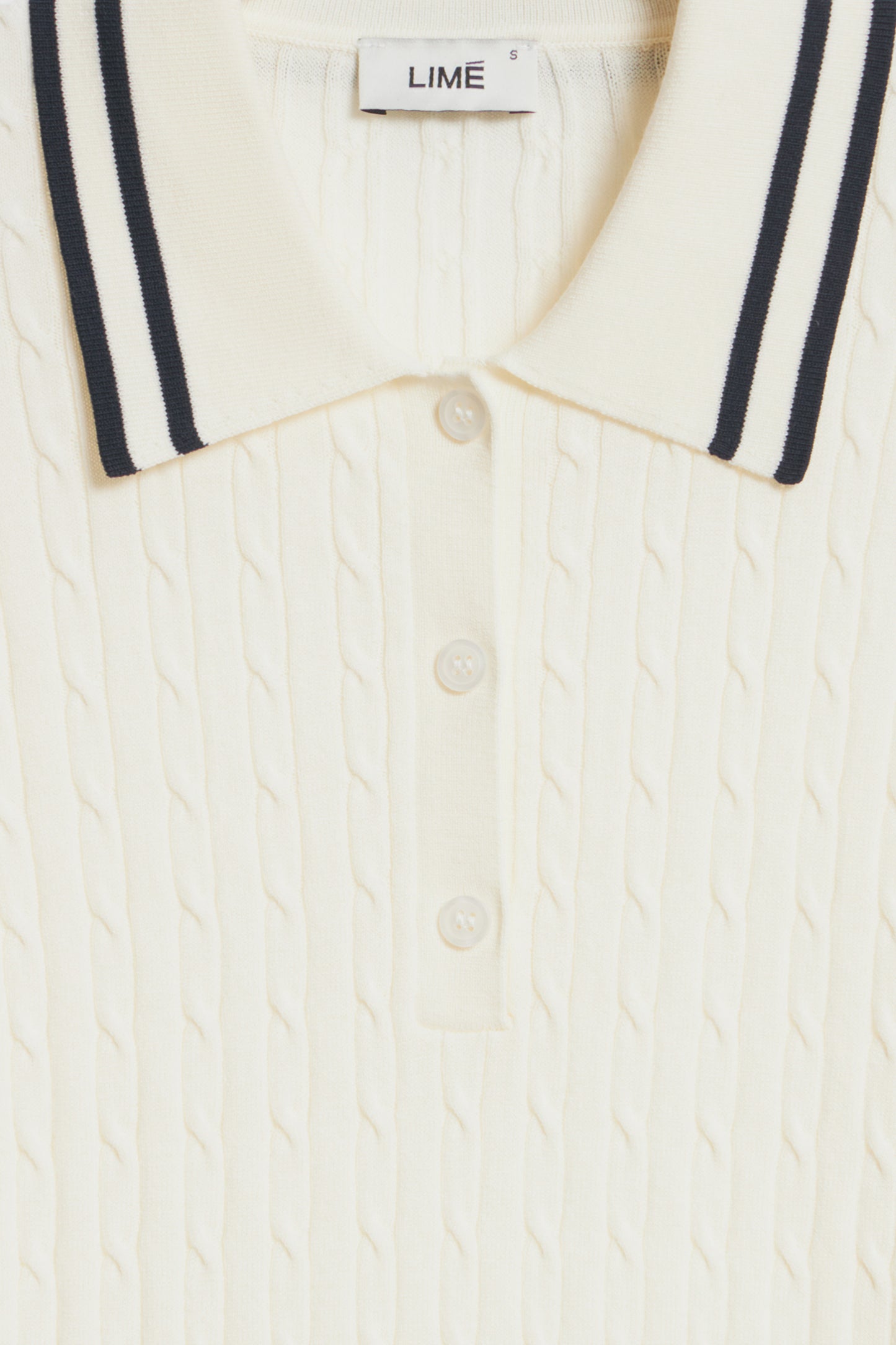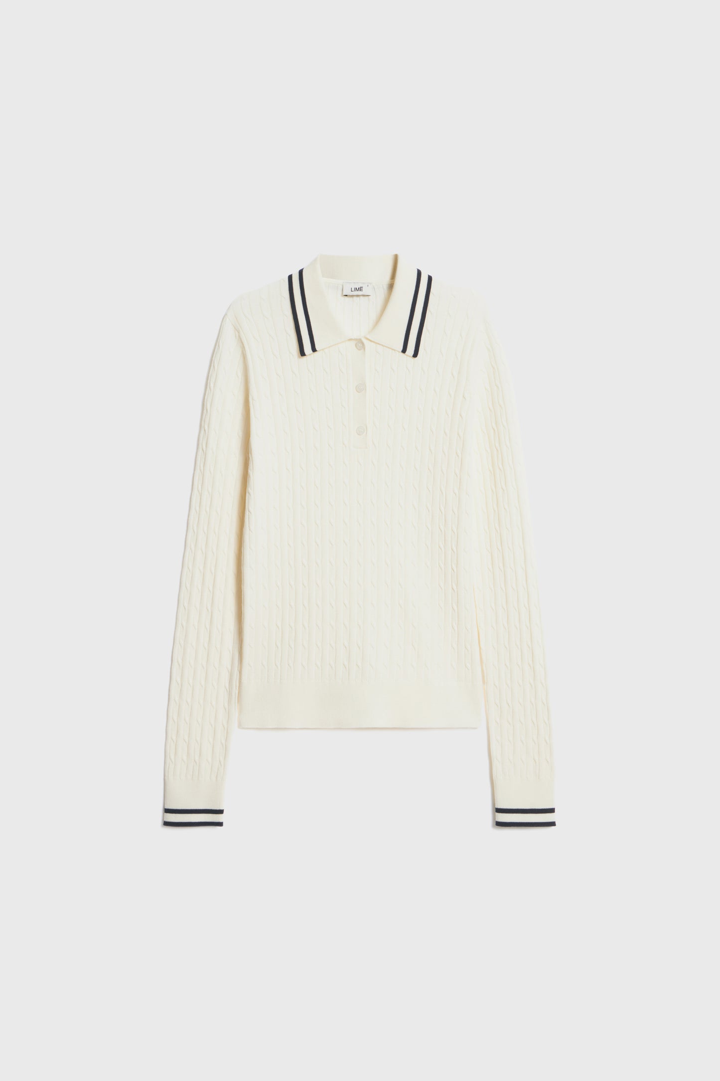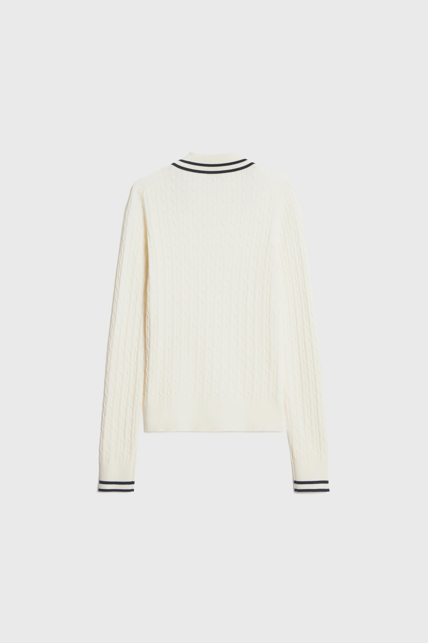 Fitted jumper in a soft cable-knit made of lyocell blend. Contrast trim. Detailed with long sleeves and collar with a front button fastening.