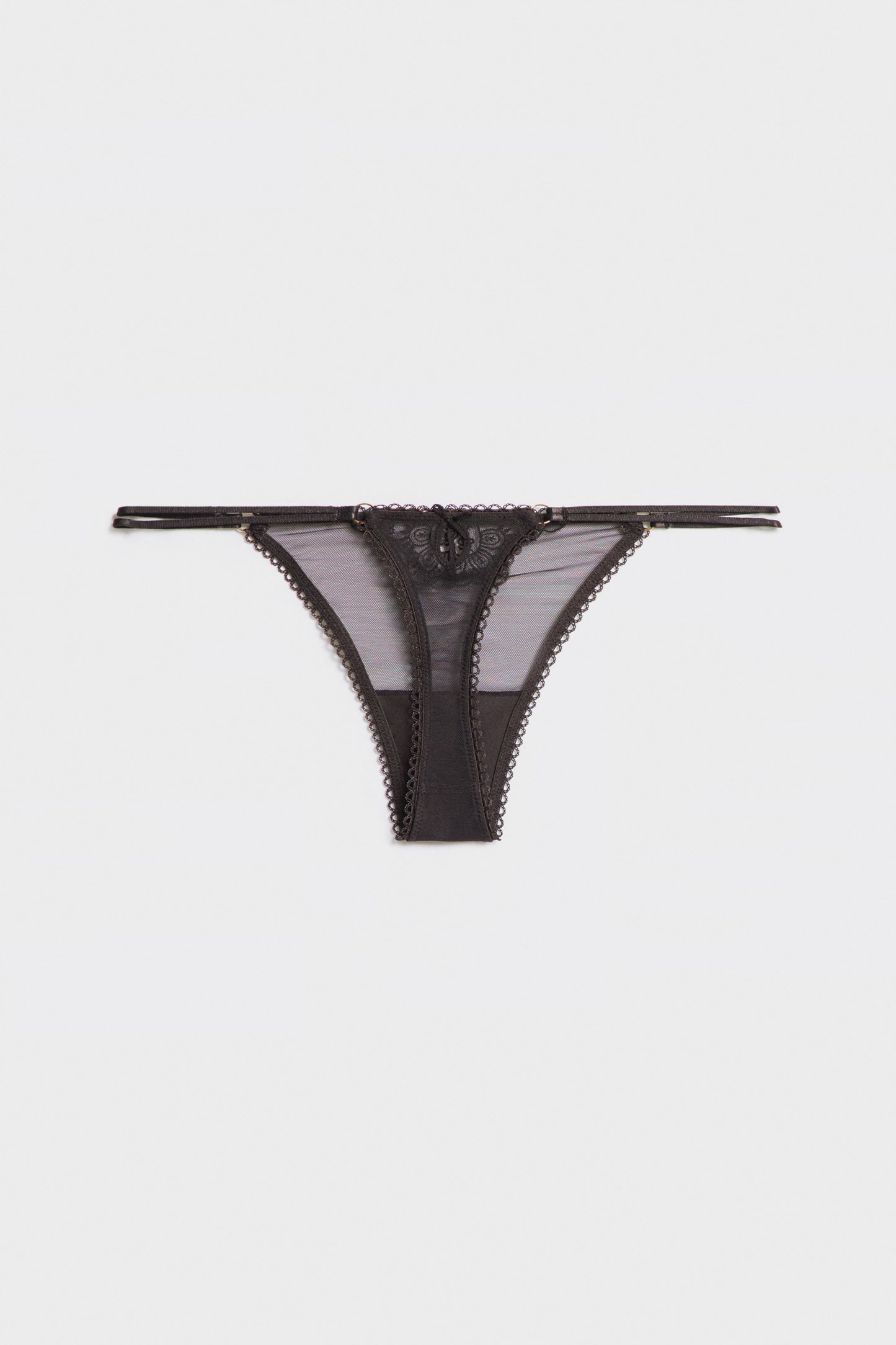 LACE-DETAIL MESH THONG