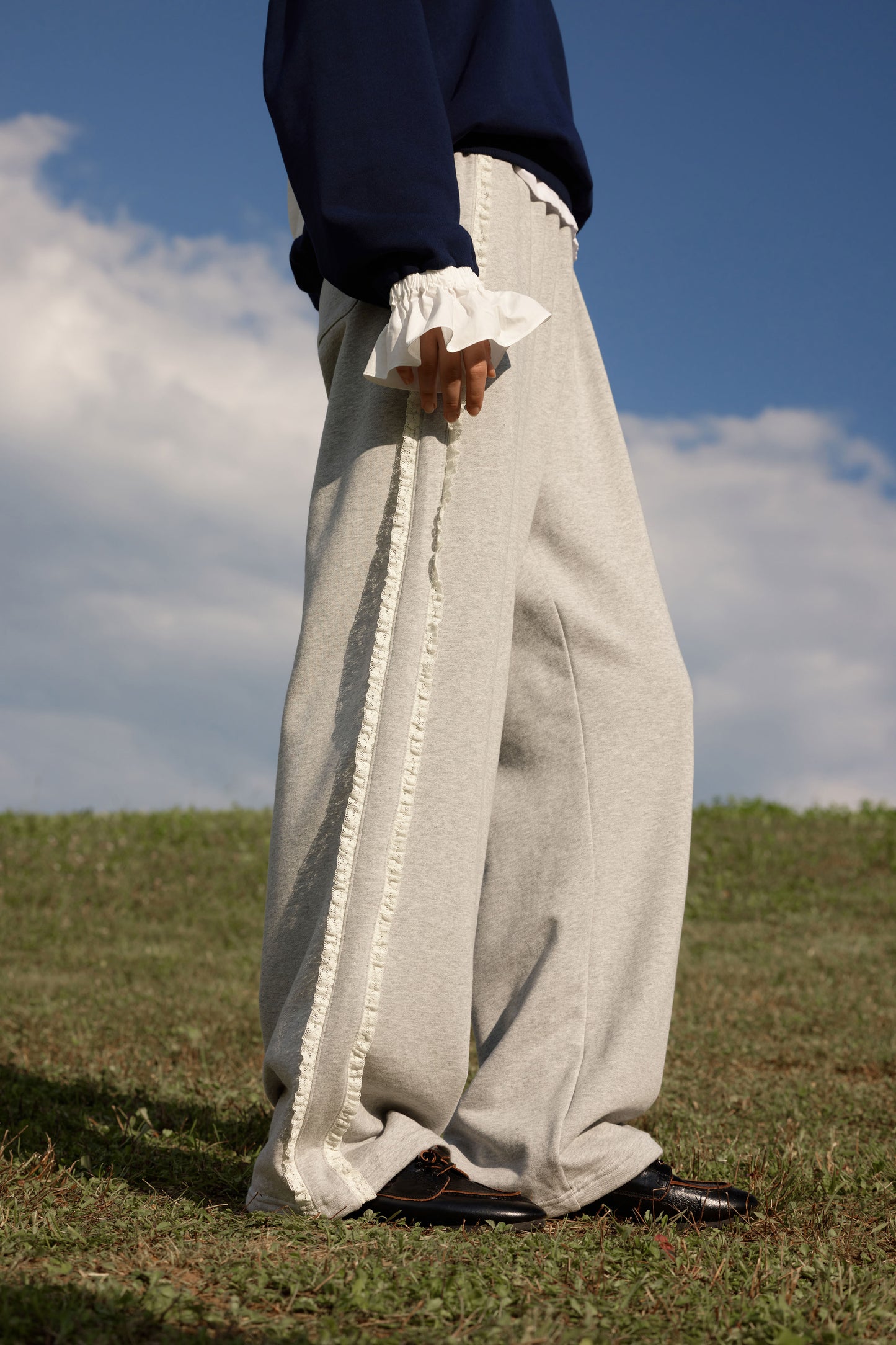 Regular-fit, comfortable sweatpantsin a cotton French Terry. Embellished with lace trim. Drawstring and covered elastic at waistband, side-seam pockets, patch back pocket.