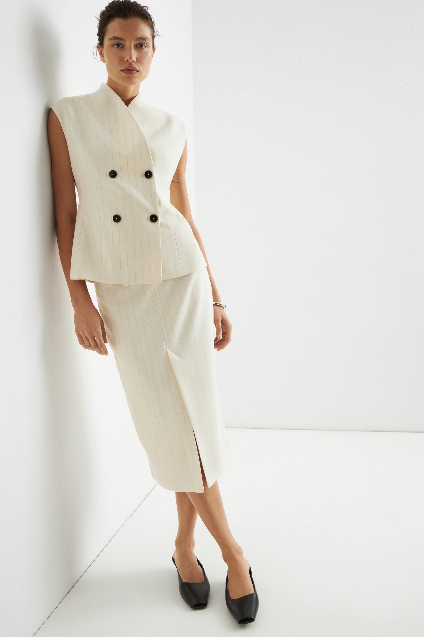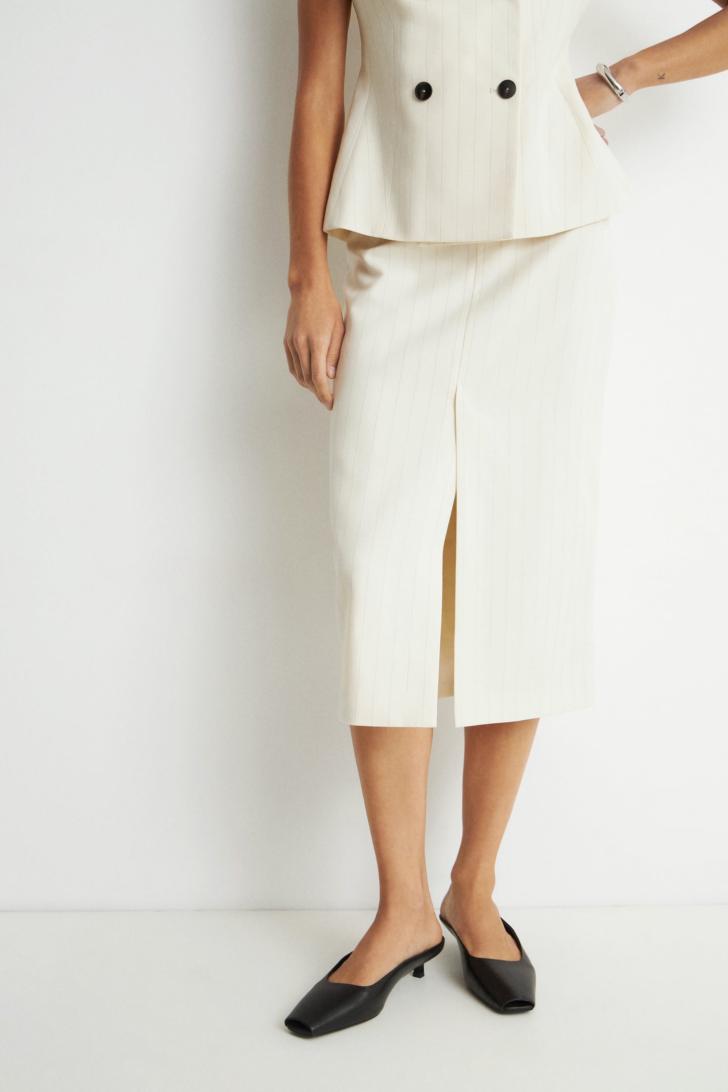 LINEN-BLEND BASIC MIDI SKIRT