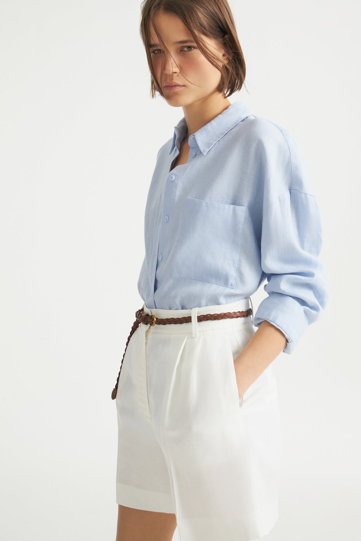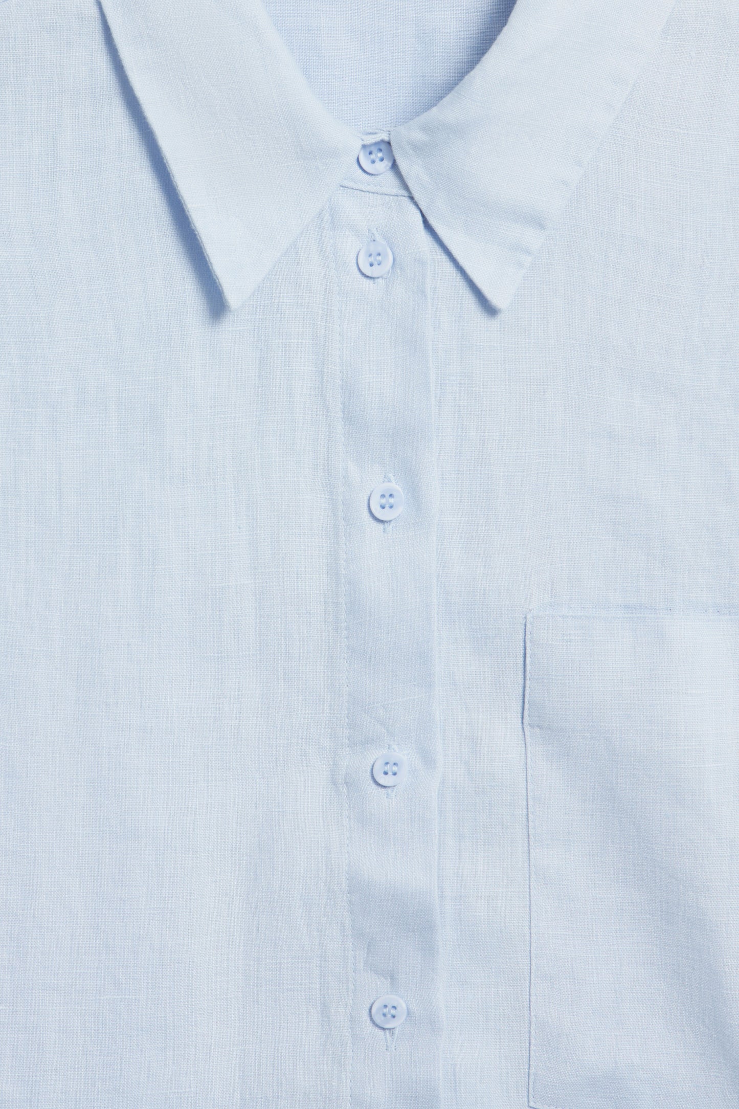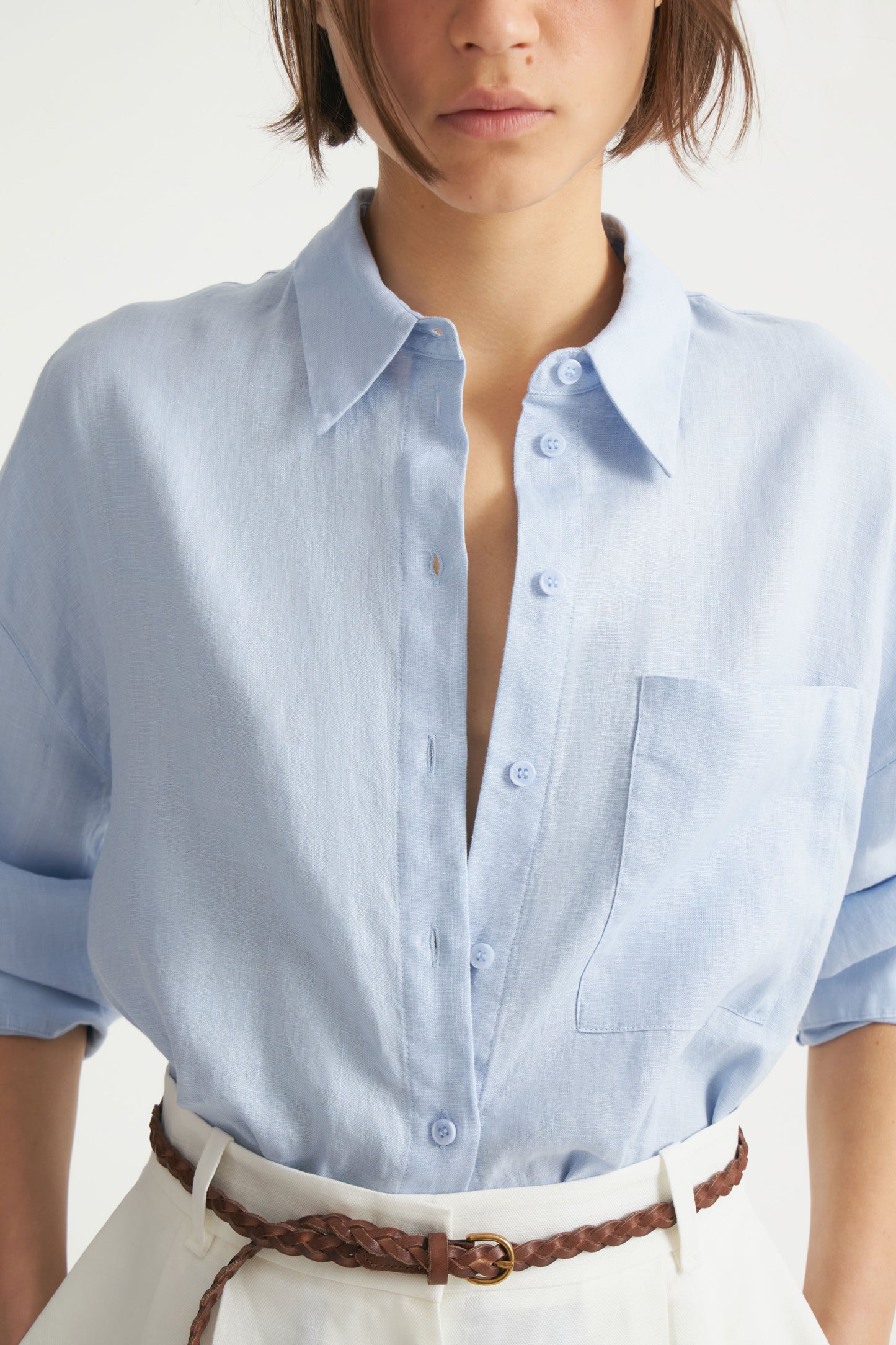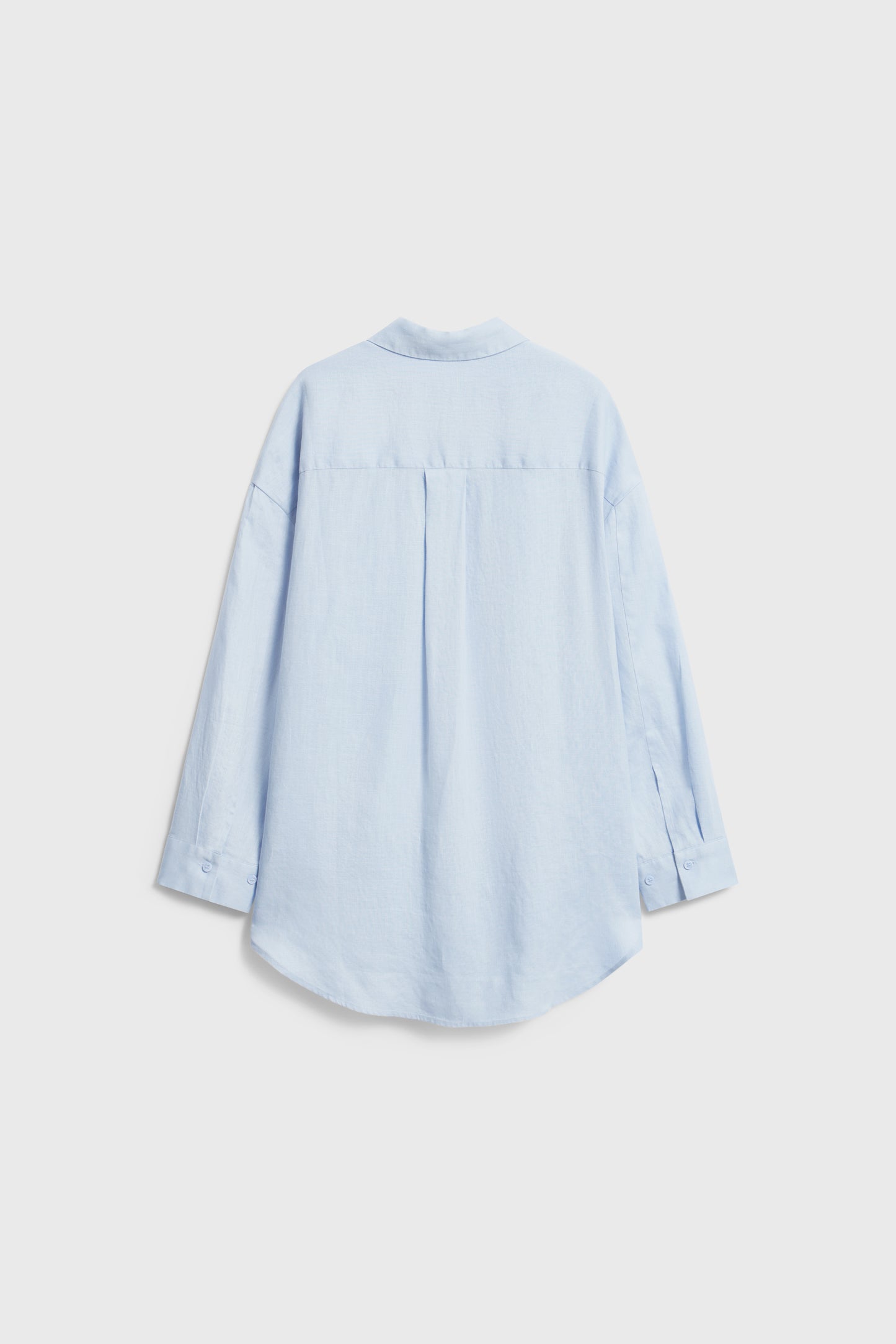 Oversized shirt made of 100% linen. Featuring a collar, long sleeves with buttoned cuffs, a chest patch pocket. Pleated detail at the back. Button-up front.