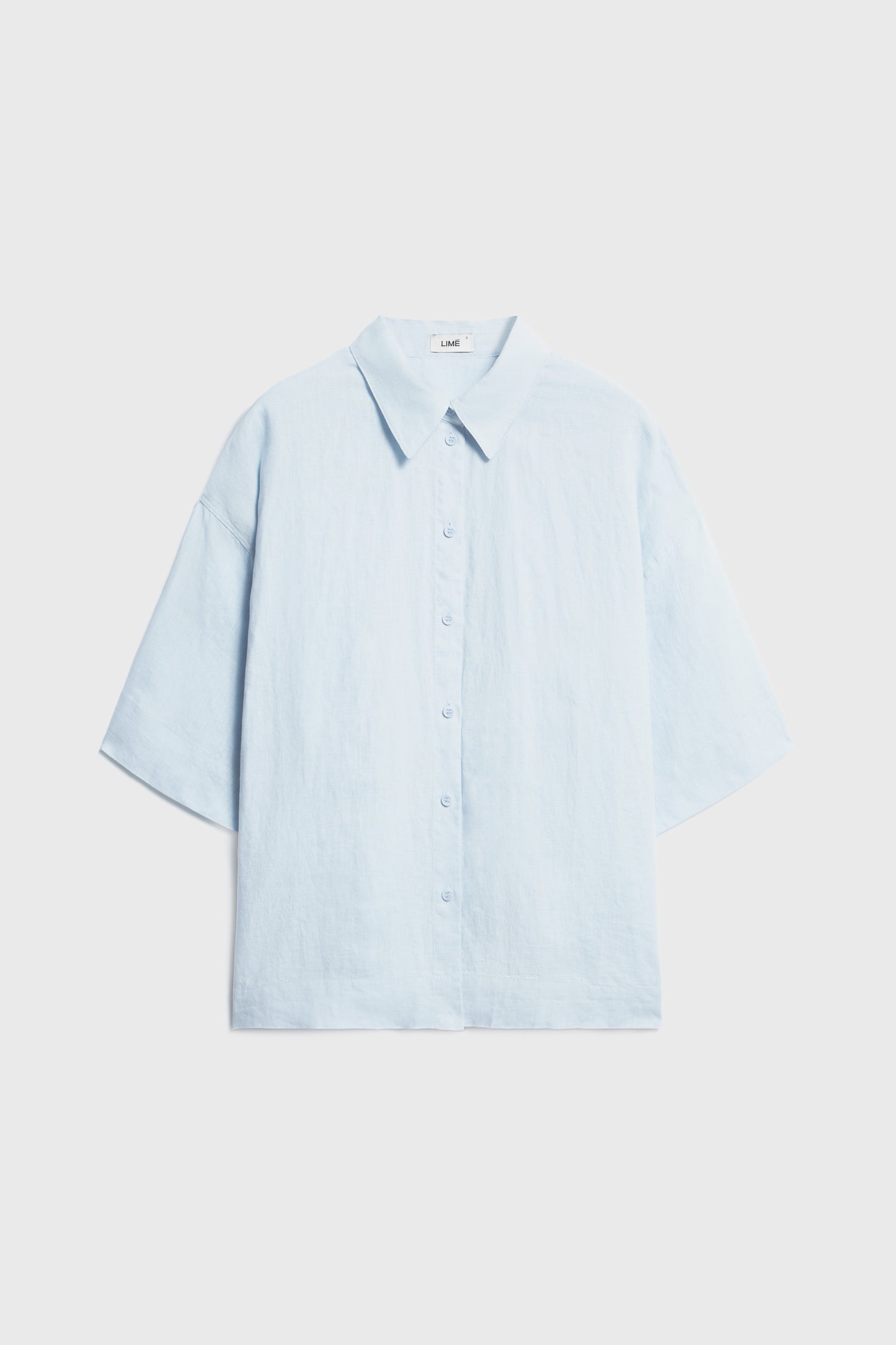 Relaxed-fit shirt in airy linen with a collar, button front, short sleeves and straight-cut hem. Fabric made from linen is breathable, beautiful both ironed and wrinkled, and softens over time.