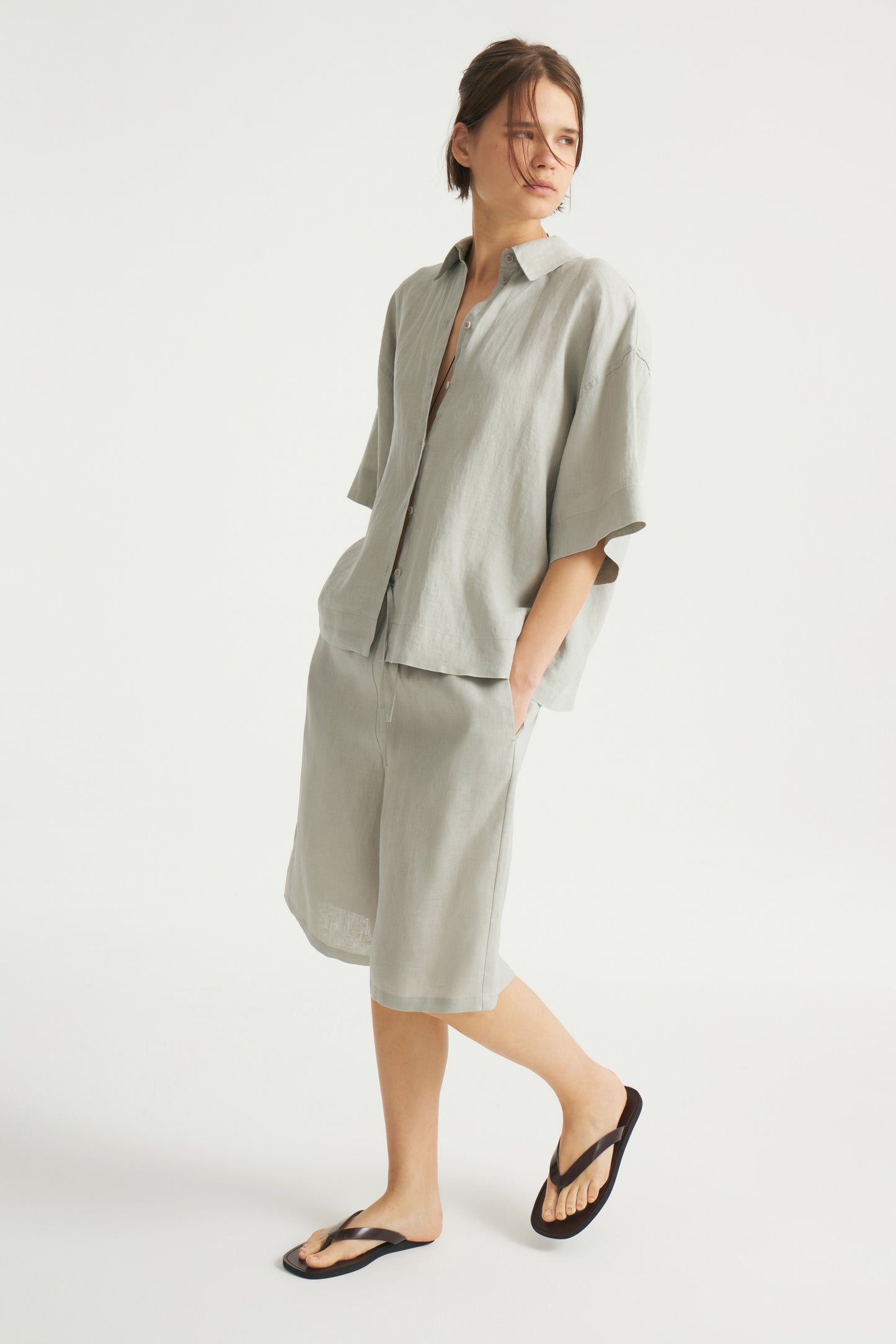 Wide-leg shorts in airy linen with an adjustable drawstring waist and front pockets.