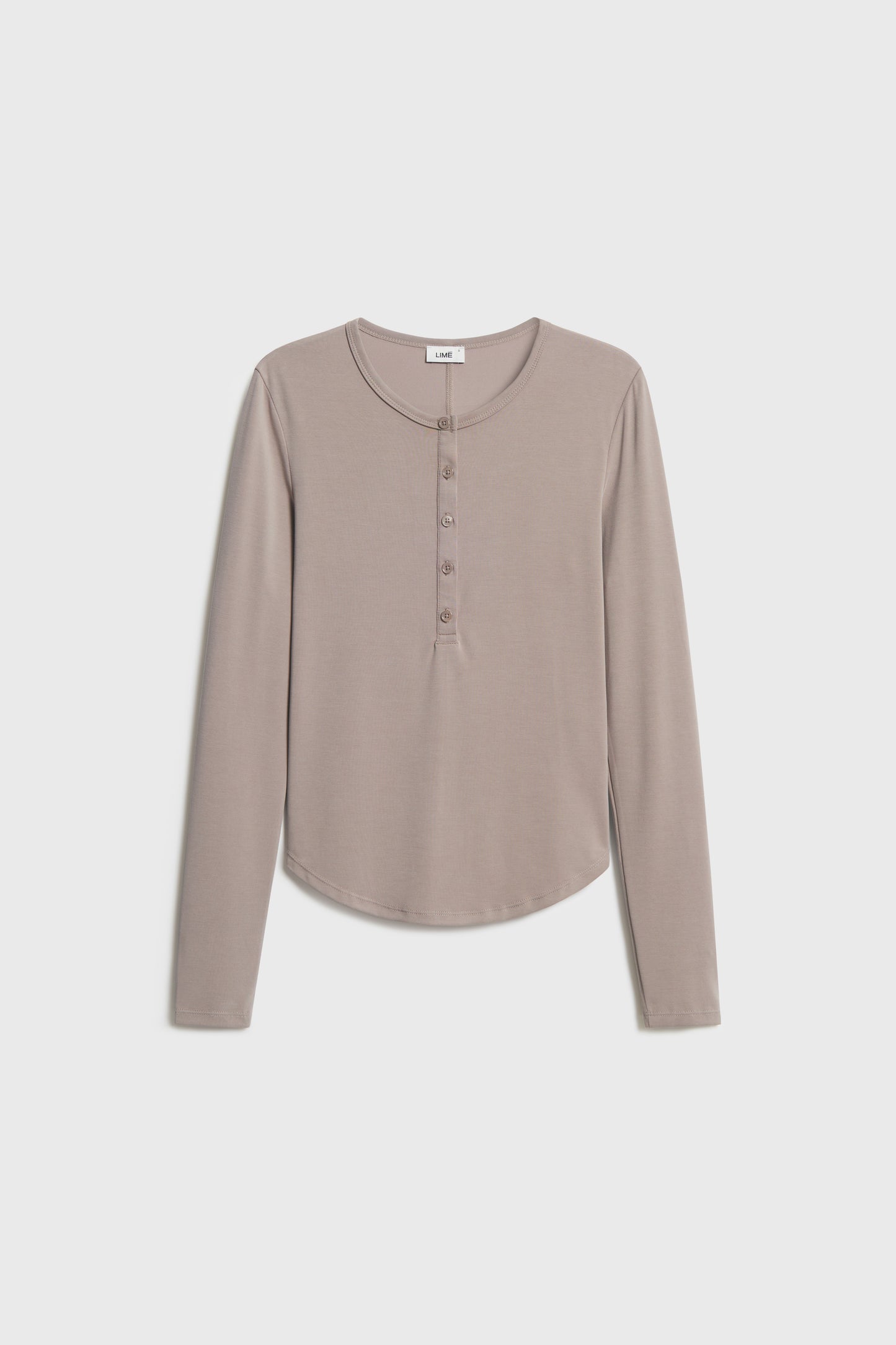 Long-sleeved Henley top in modal blend with a button placket. Slim fit with round neckline.