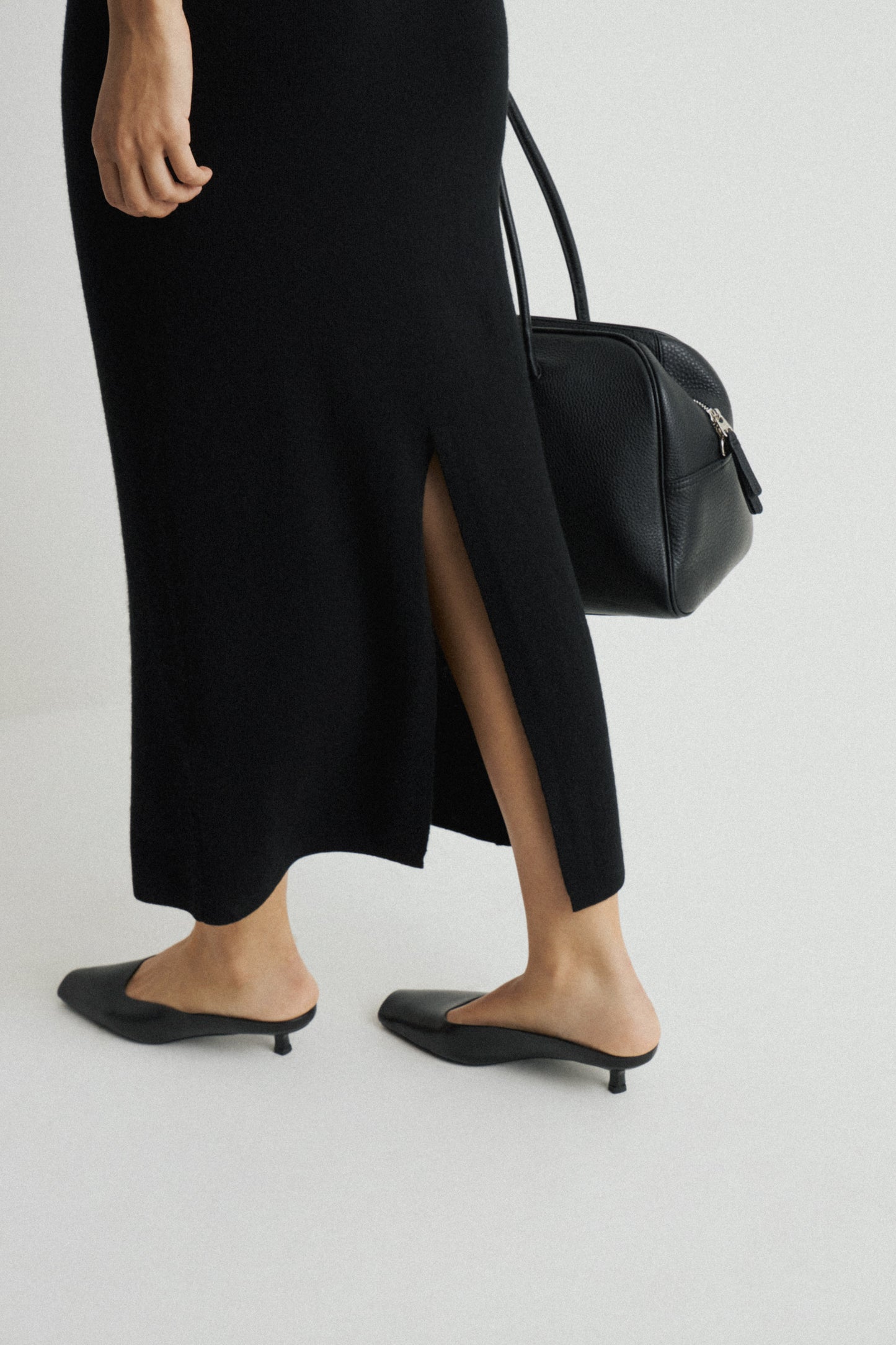 Fitted, long dress in soft, fine-knit wool and viscose contains cashmere. Features a turtleneck.