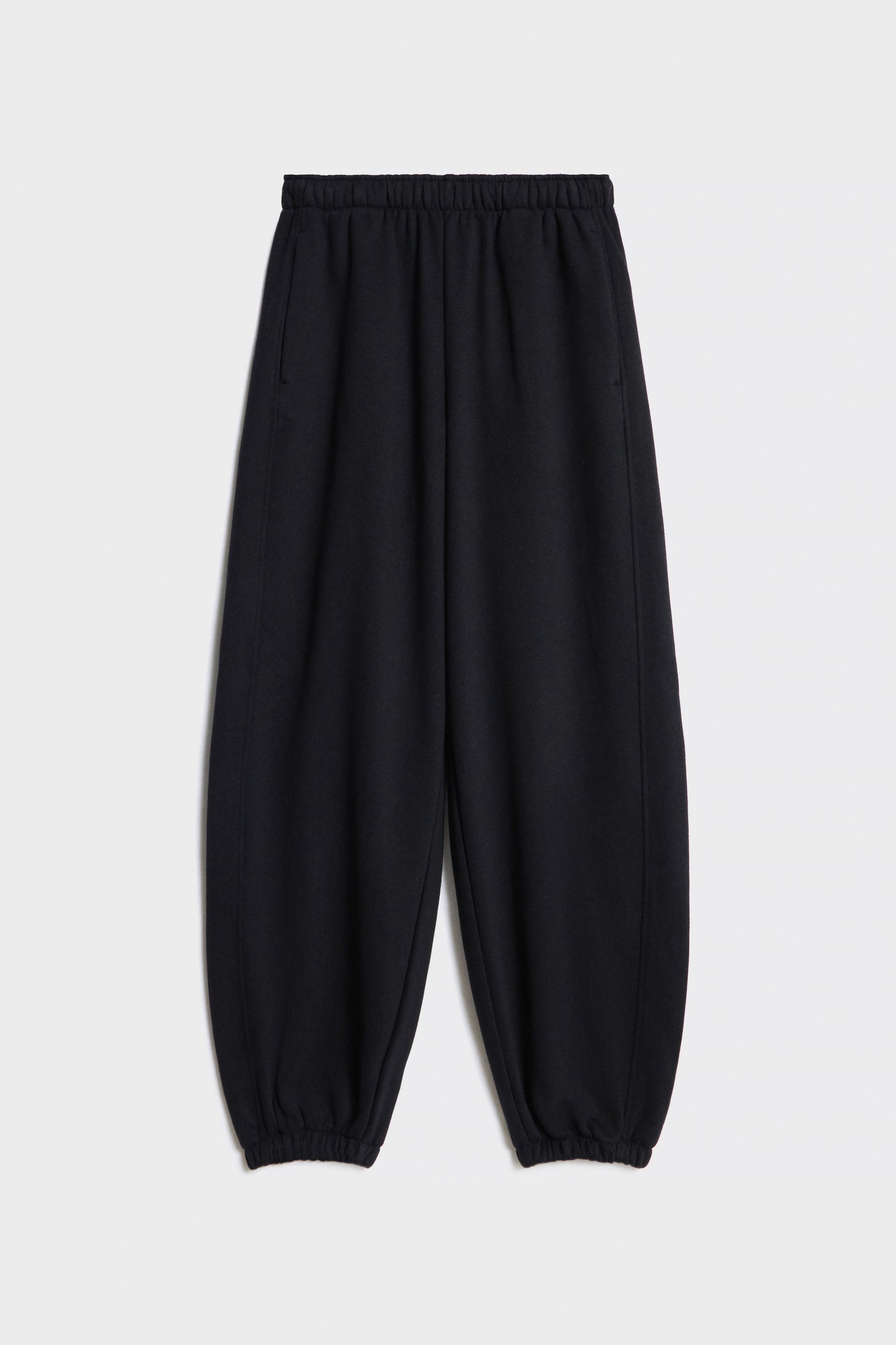 Loose-fit trousers made of cotton blend fabric. Concealed, elasticized drawstring at waist and elasticized cuffs. Front pockets.