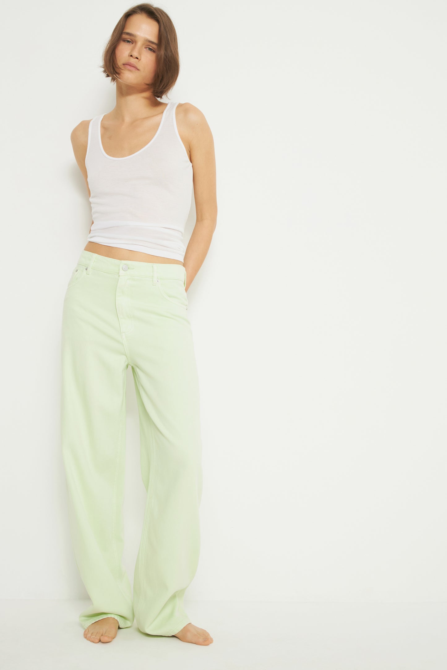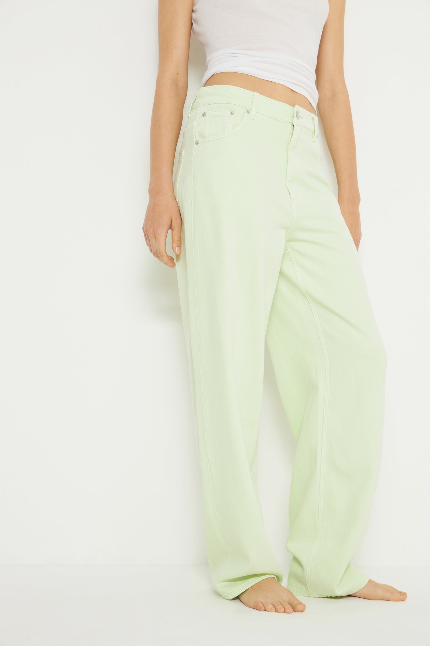 Baggy-fit jeans with a mid-waist in a lyocell and cotton denim. Five pockets. Front zip fly and top button fastening.