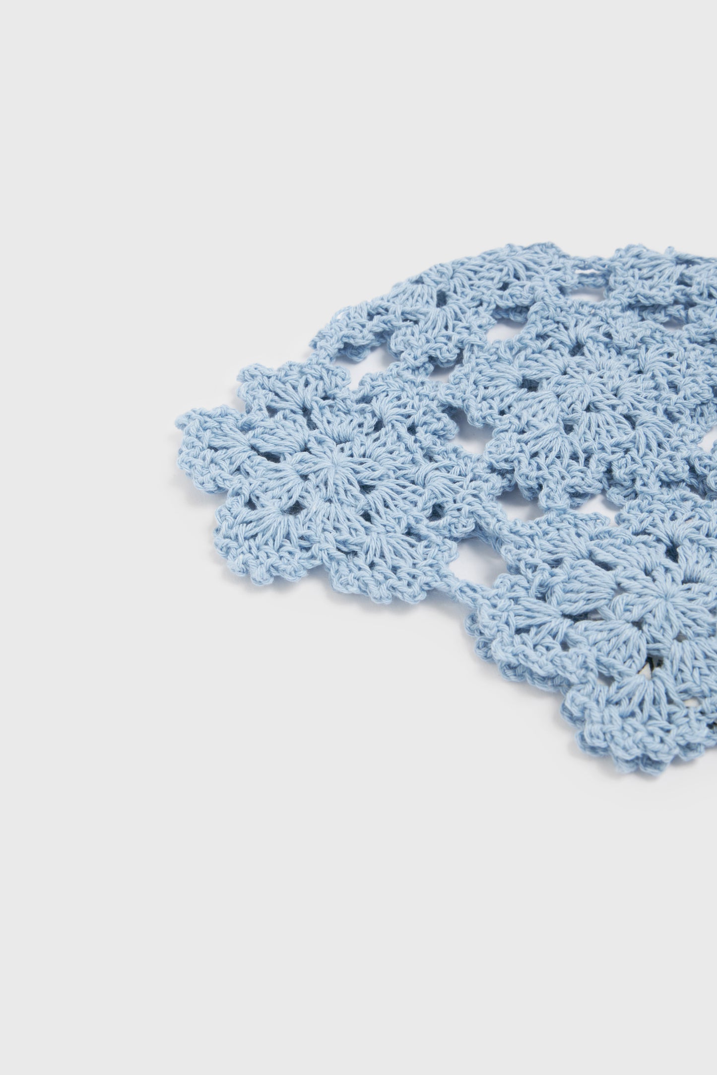 Crocheted beanie in soft cotton yarn. Finished with scalloped-edge trim.