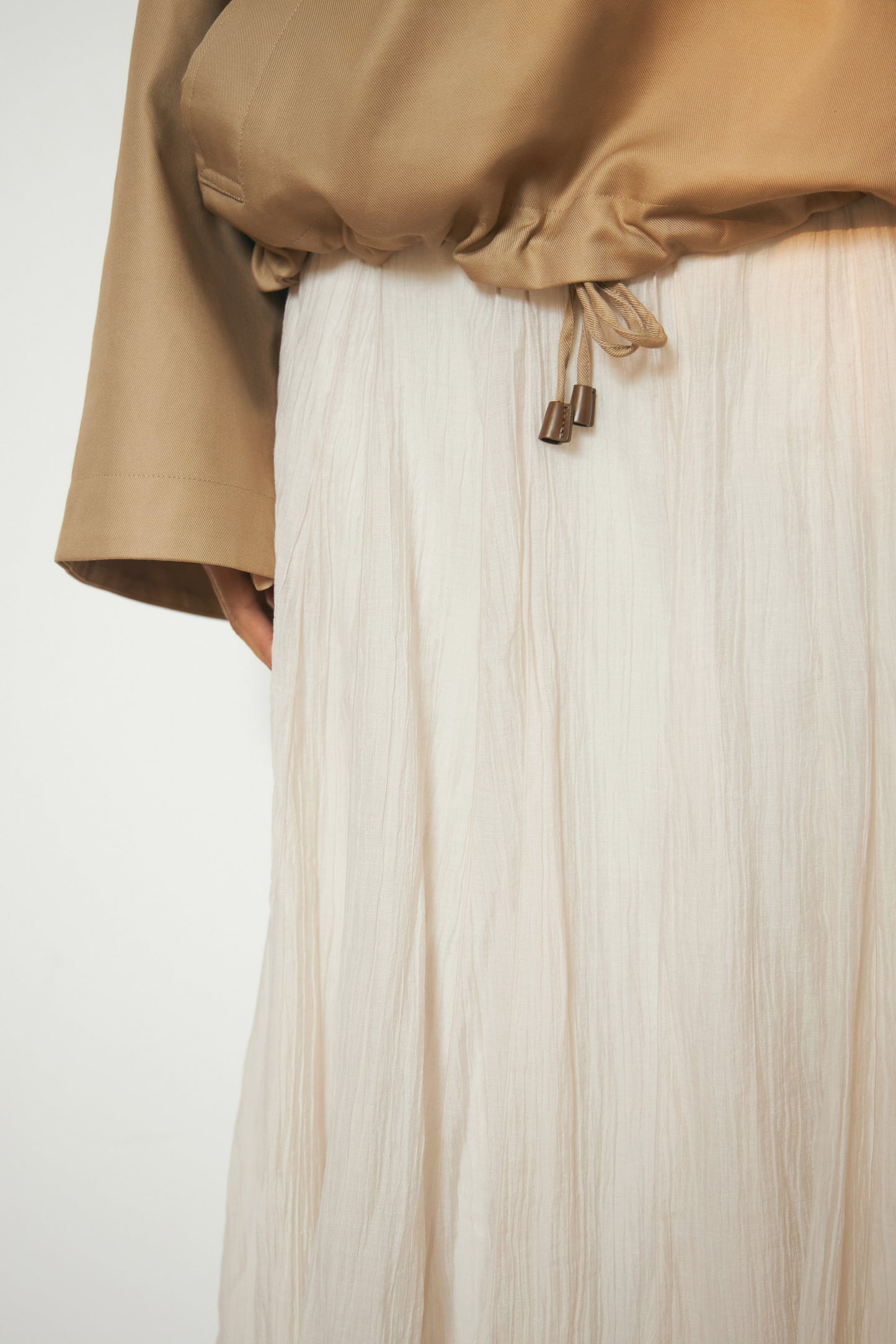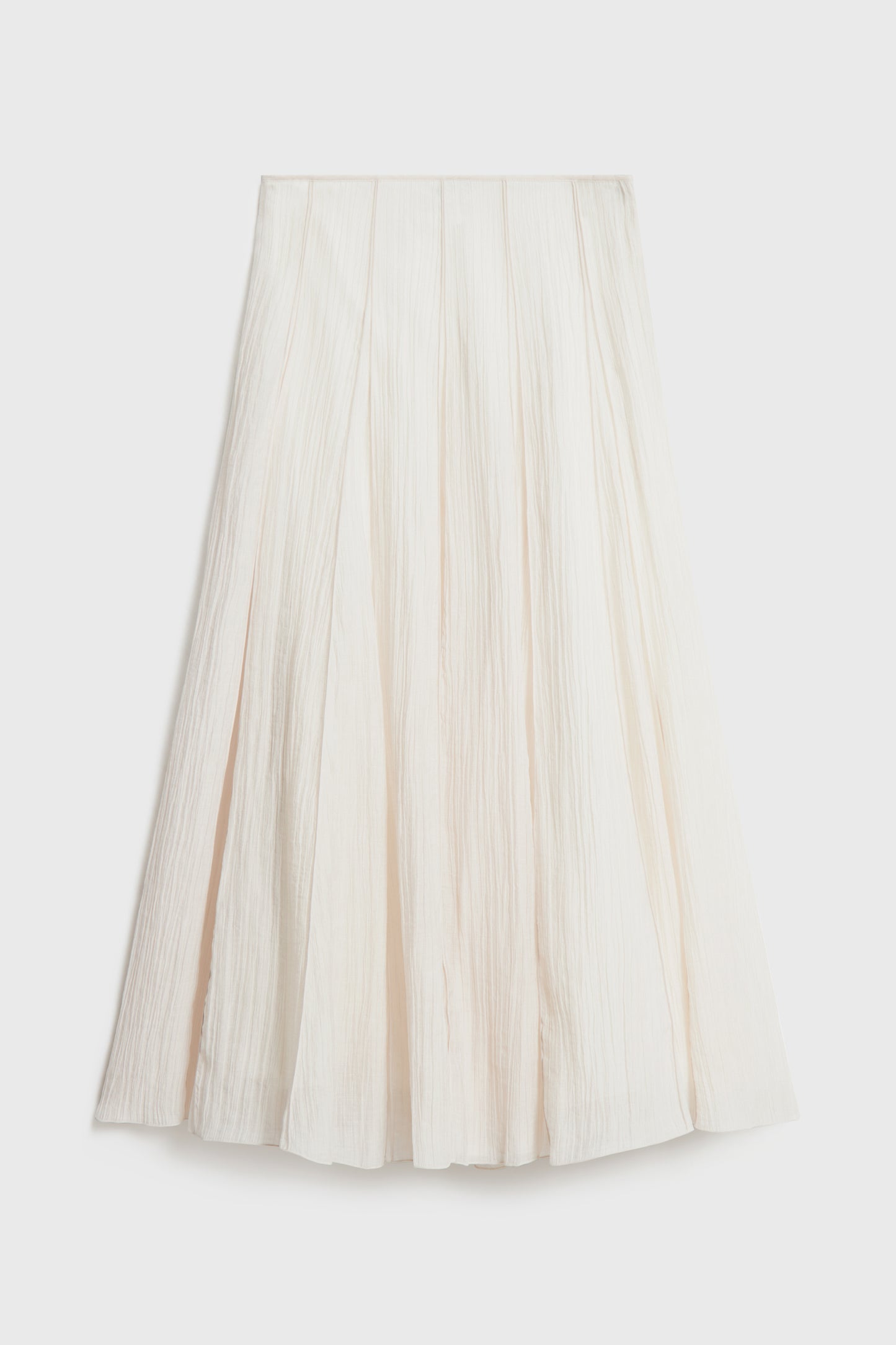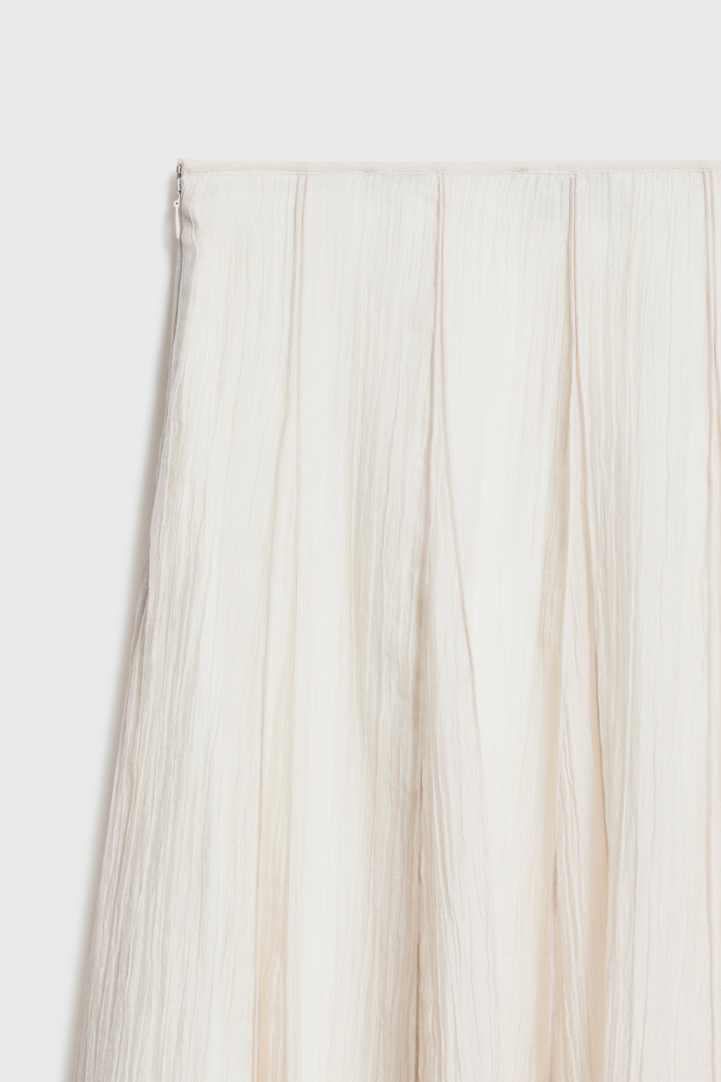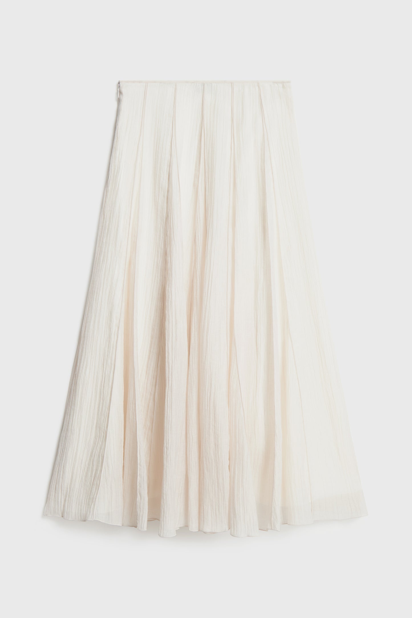 Flared maxi skirt with a clean finish made from a lyocell blend. Lining. Secured with a zipper and hidden hook at the side.