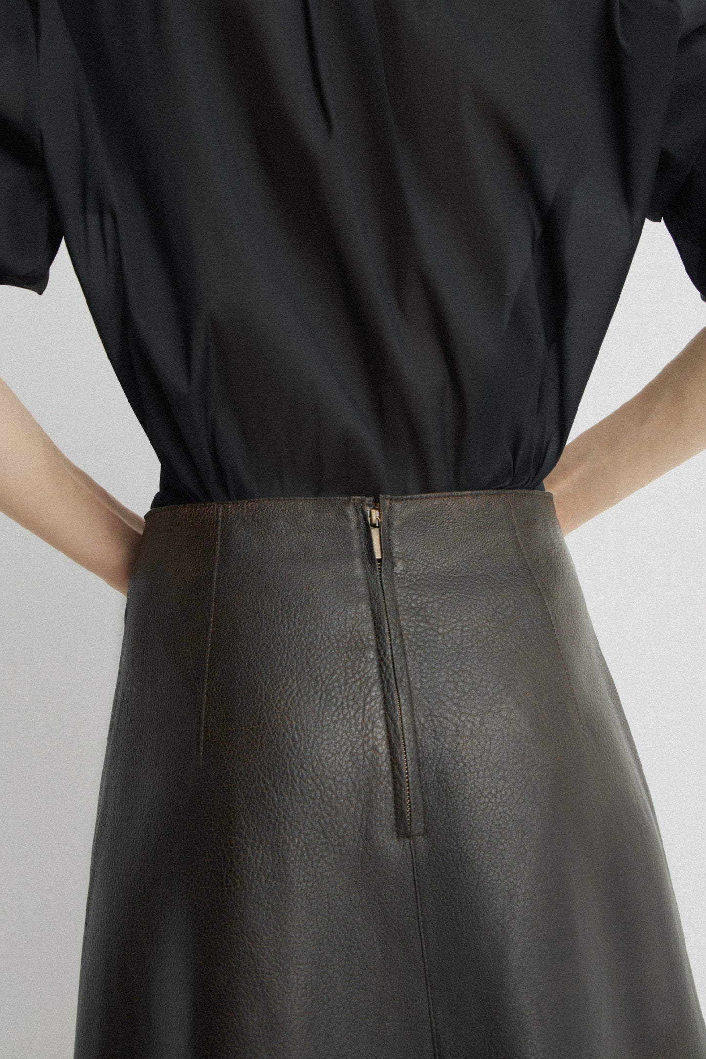 NATURAL LEATHER MIDI SKIRT