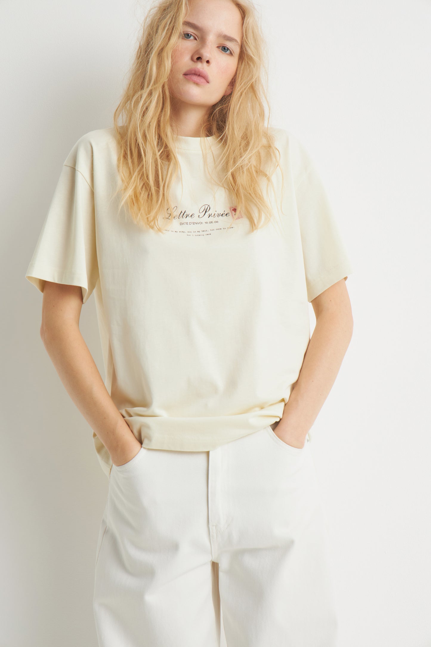 Oversized T-shirt in soft cotton jersey with a round neck and short sleeves. Featuring a contrast print on the front.