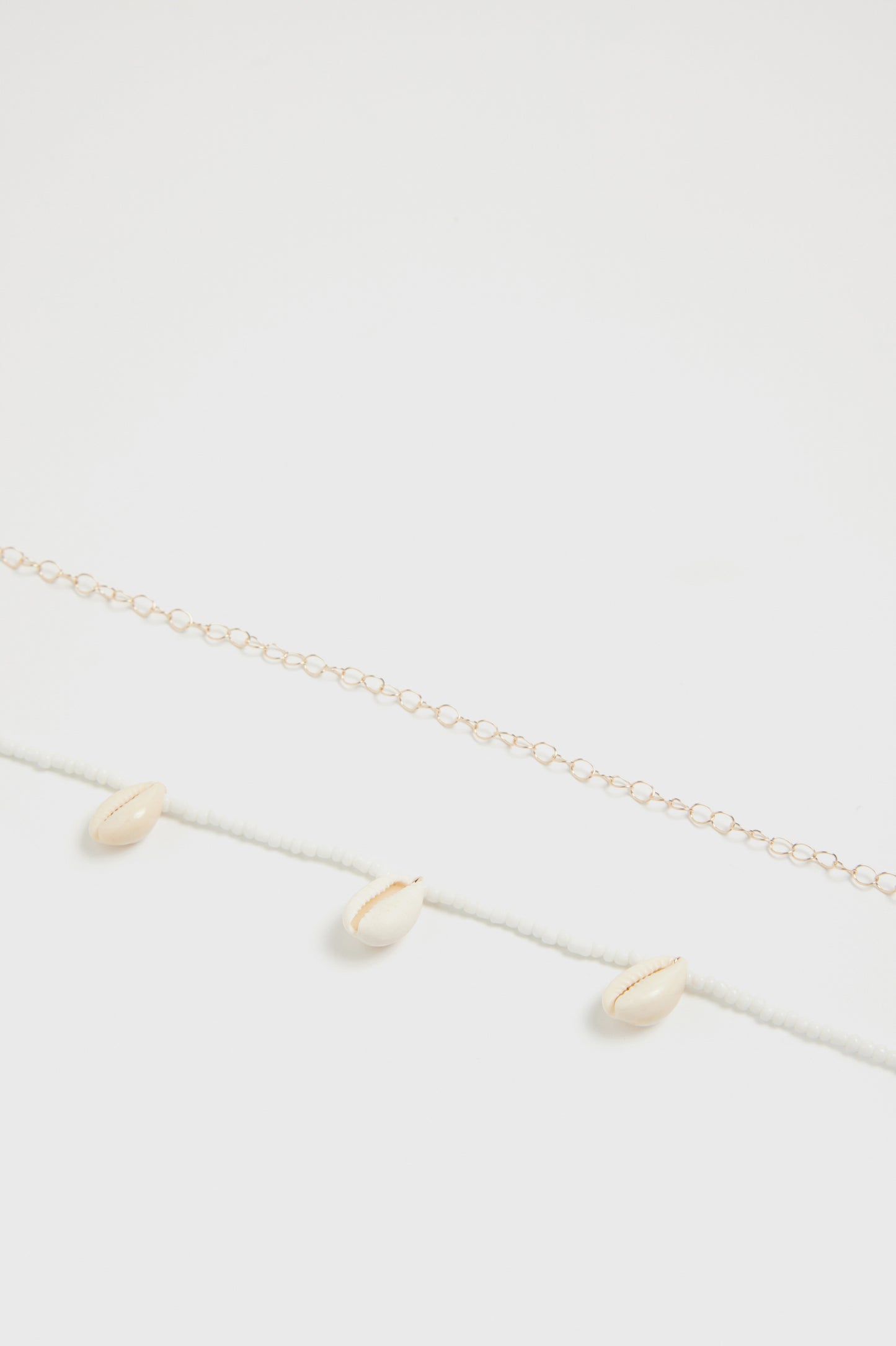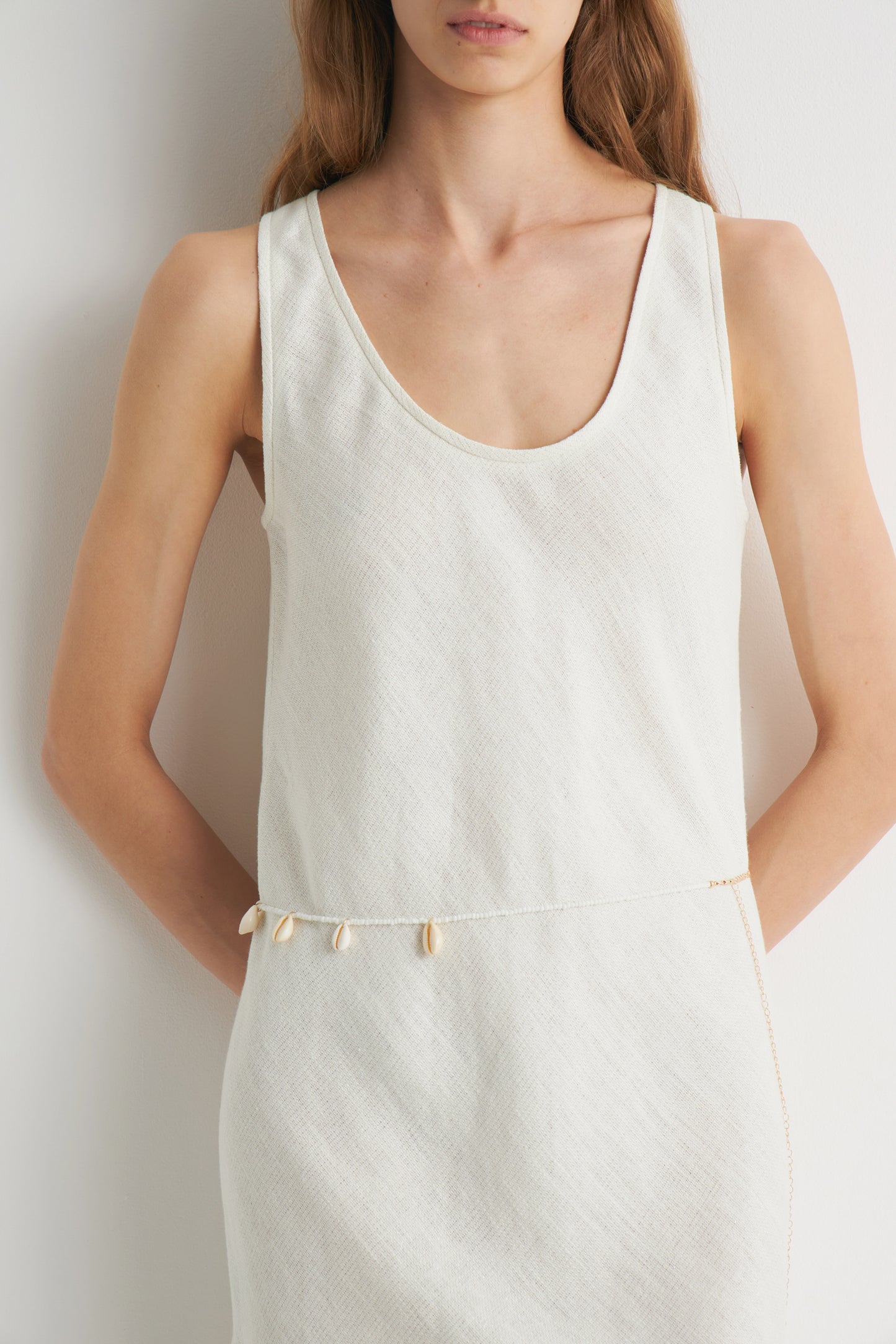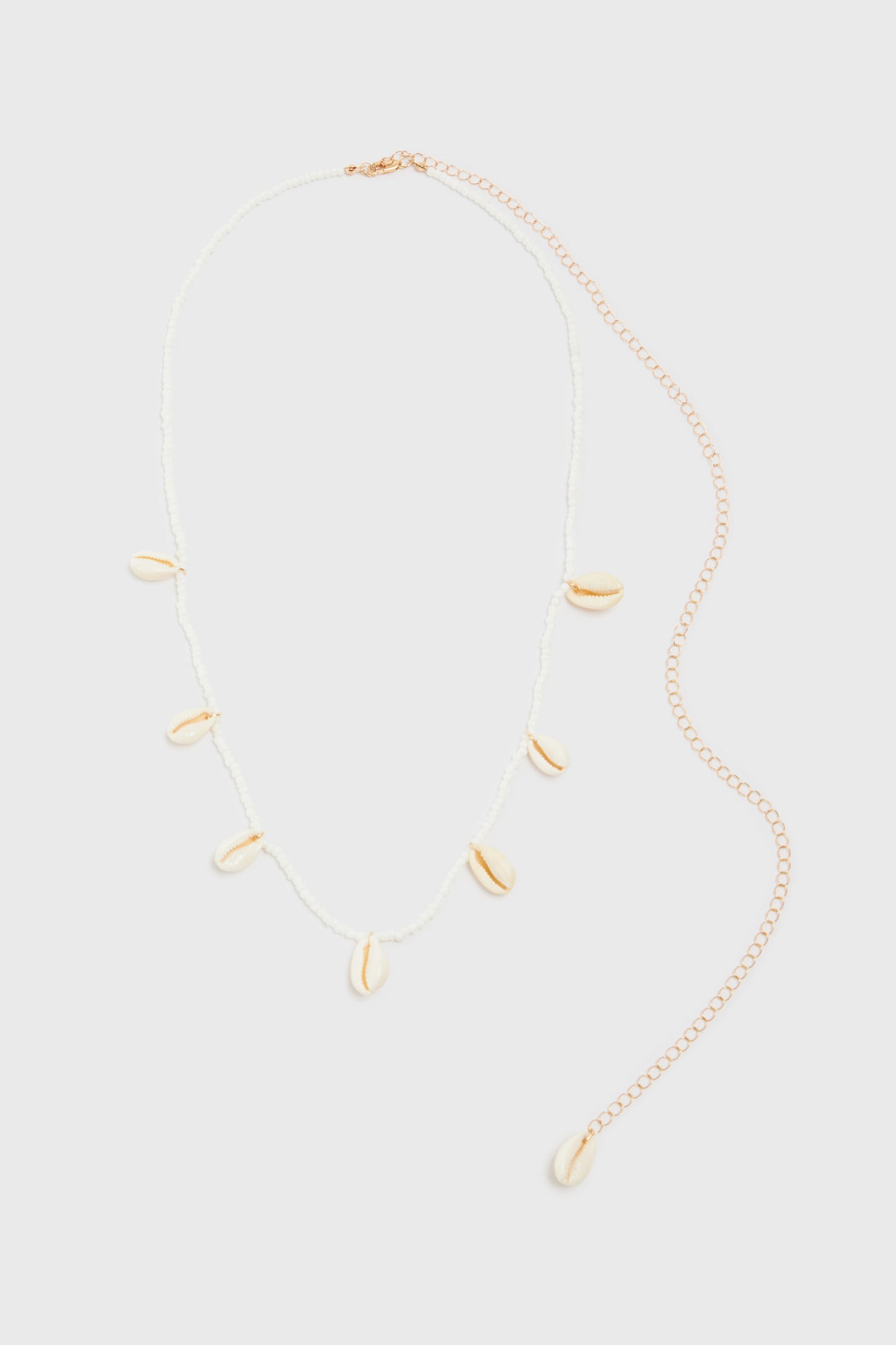 This body chain is made with small beads and styled with shell-shaped pendants. Adjustable length with a lobster clasp fastening. SIZE: length 66 – 111 cm
