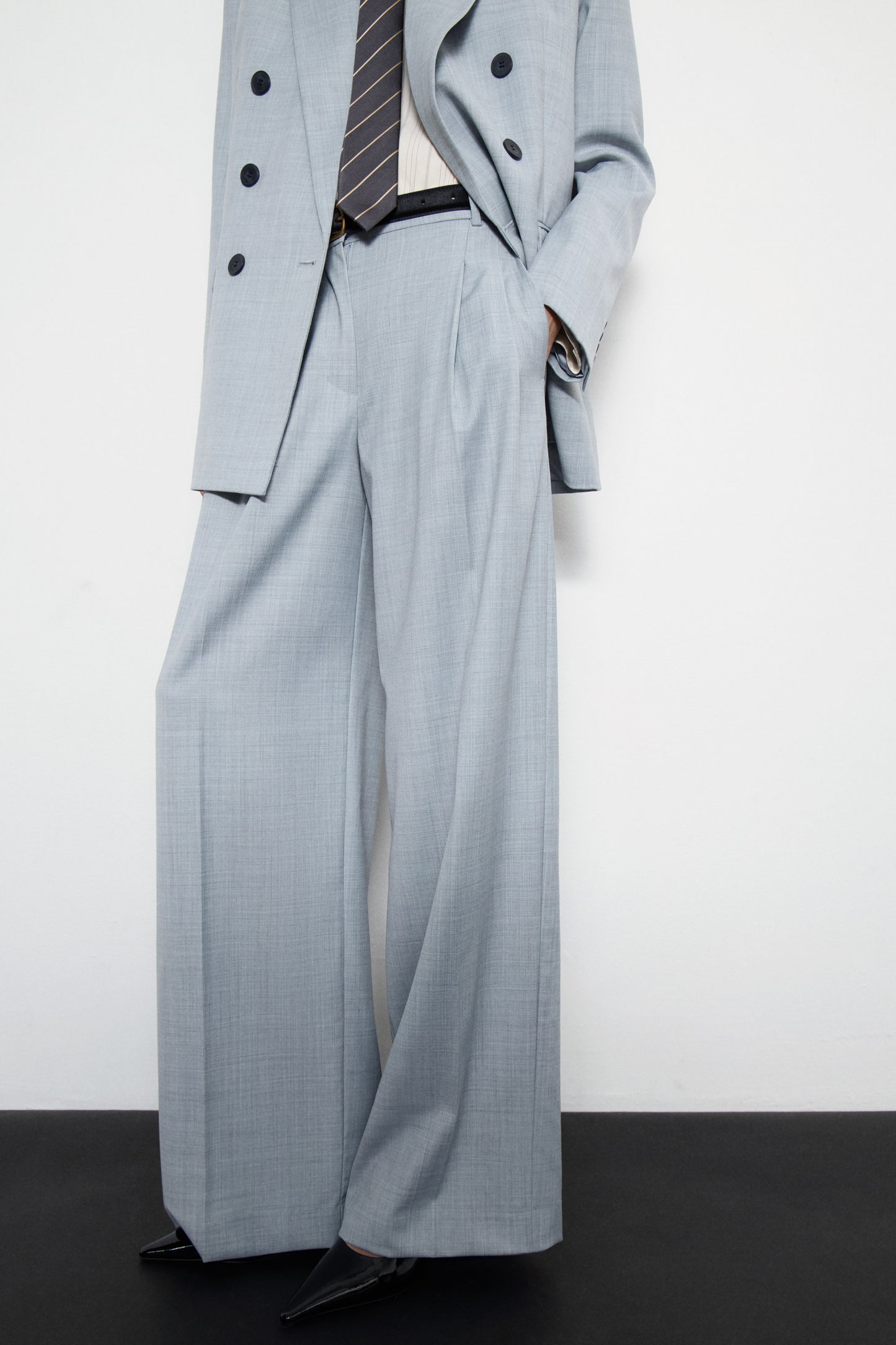PLEATED WOOL-BLEND TROUSERS