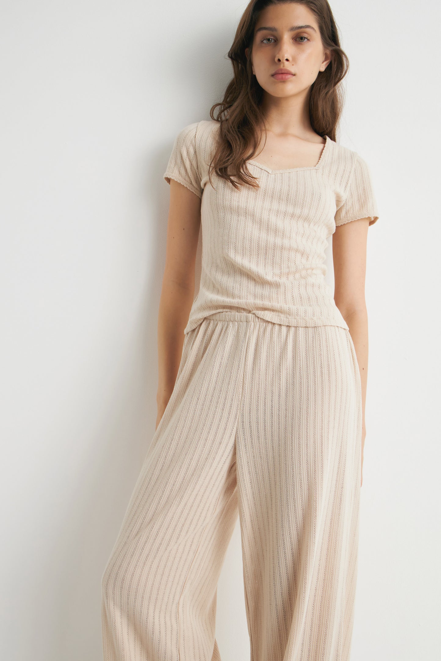 Fitted T-shirt in in soft, cotton pointelle jersey with a sweetheart neckline and short sleeves. Finished with delicate scalloped trims.