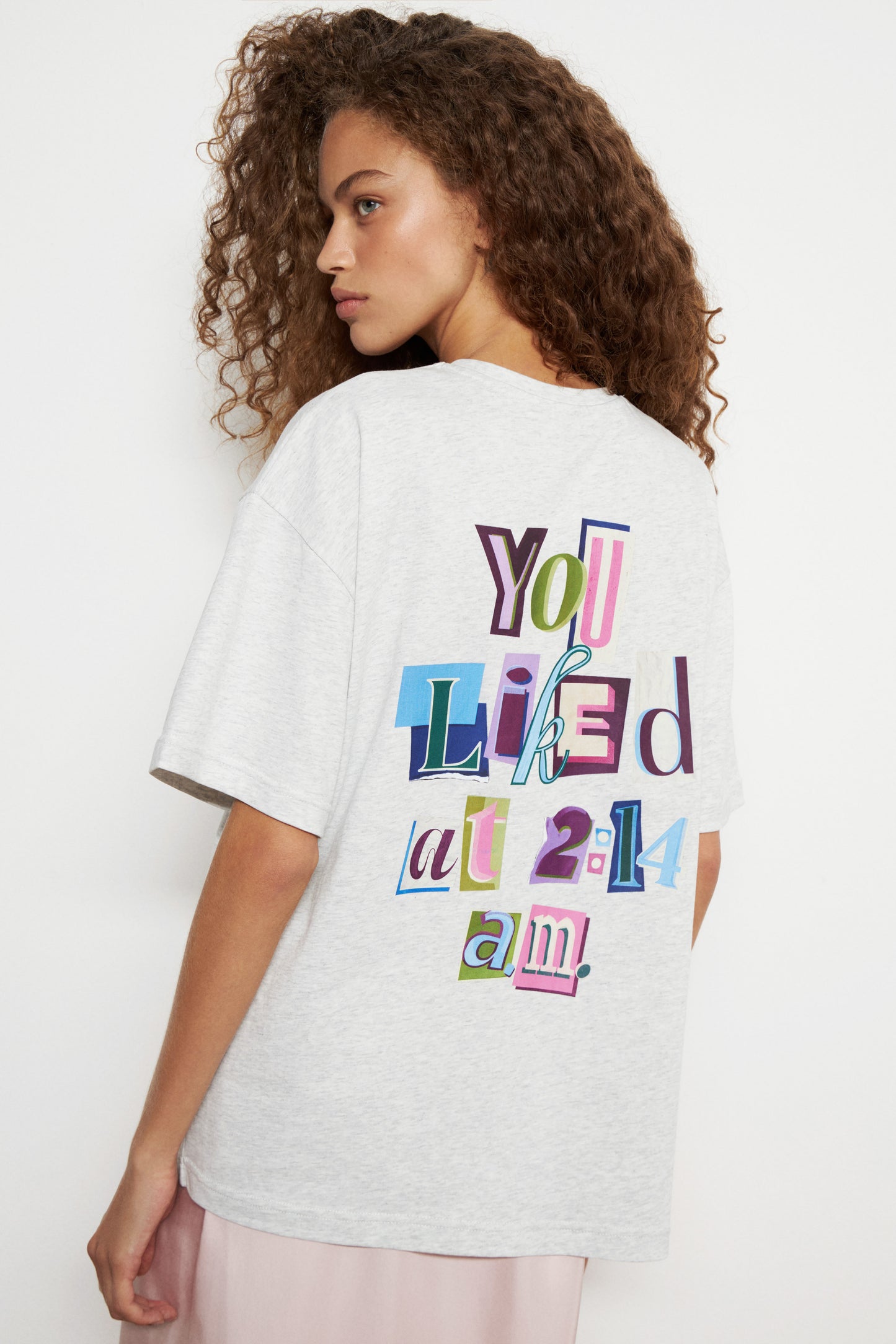 Round neck T-shirt with short sleeves in soft jersey made from a cotton. Contrast print on the front.