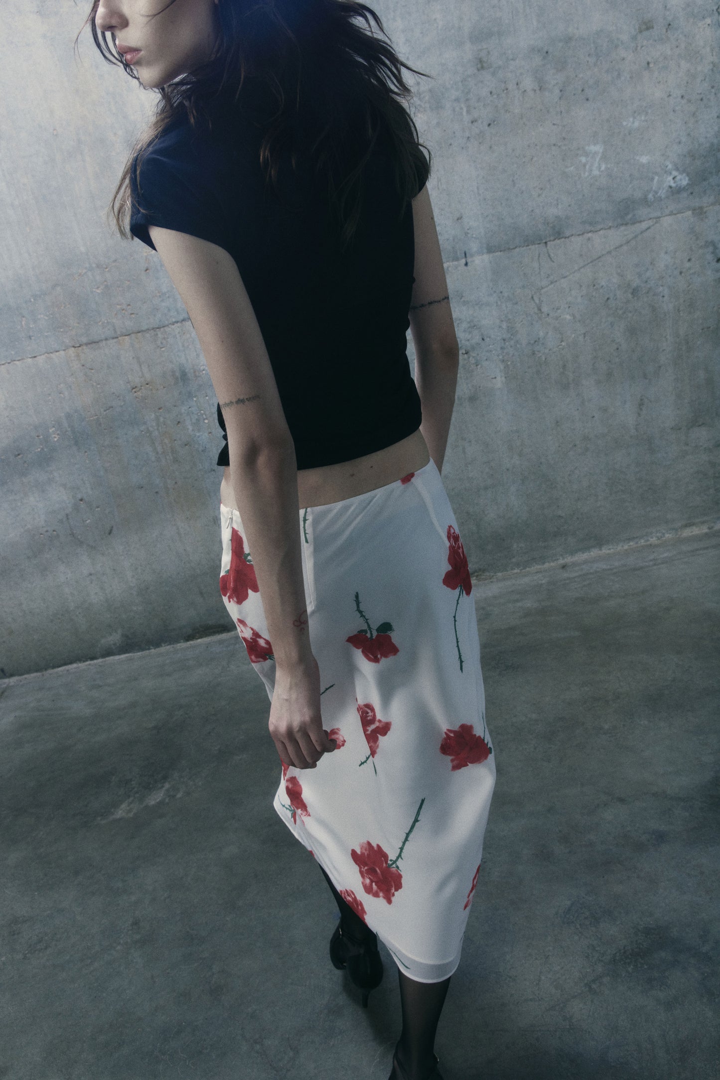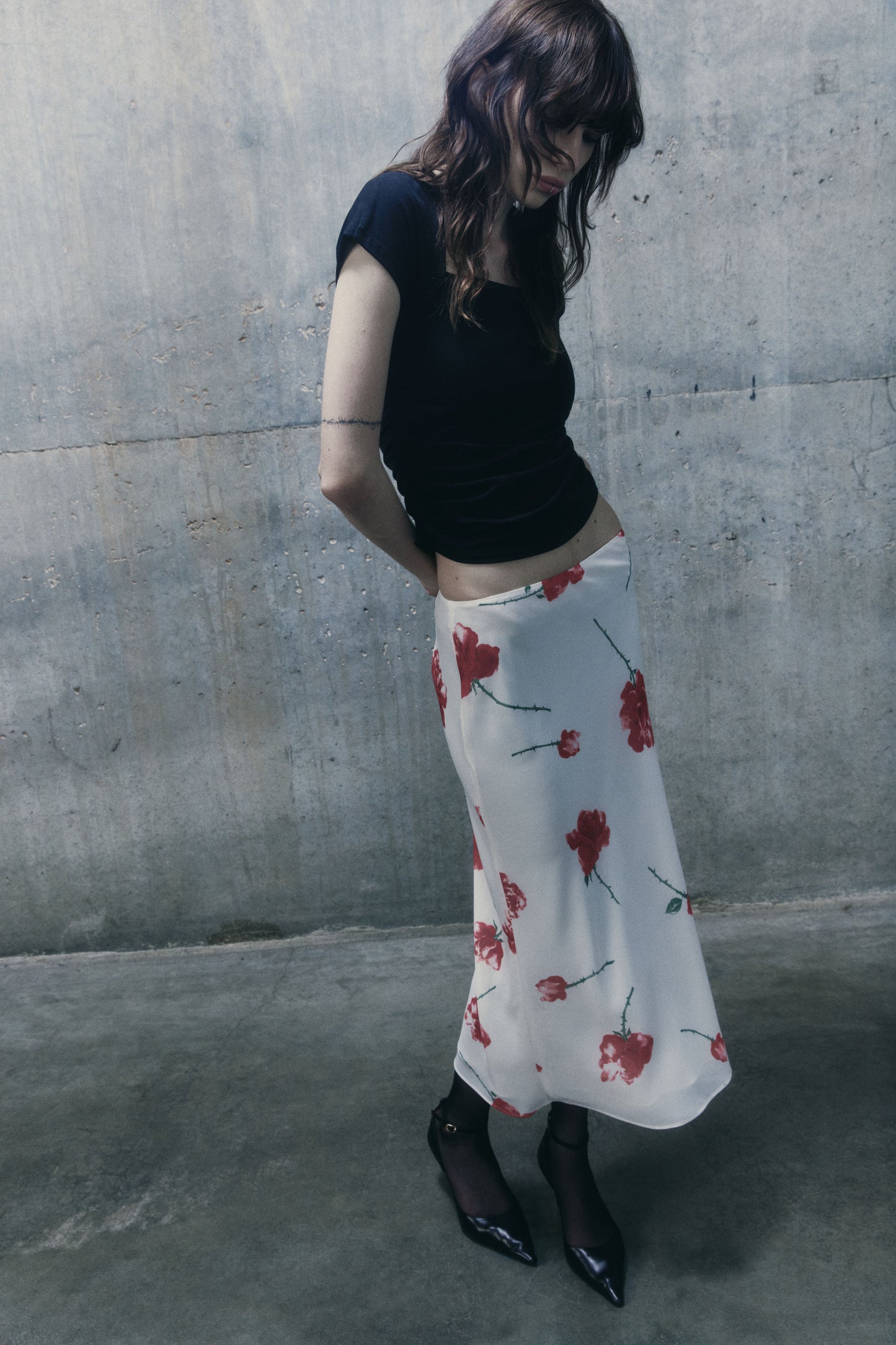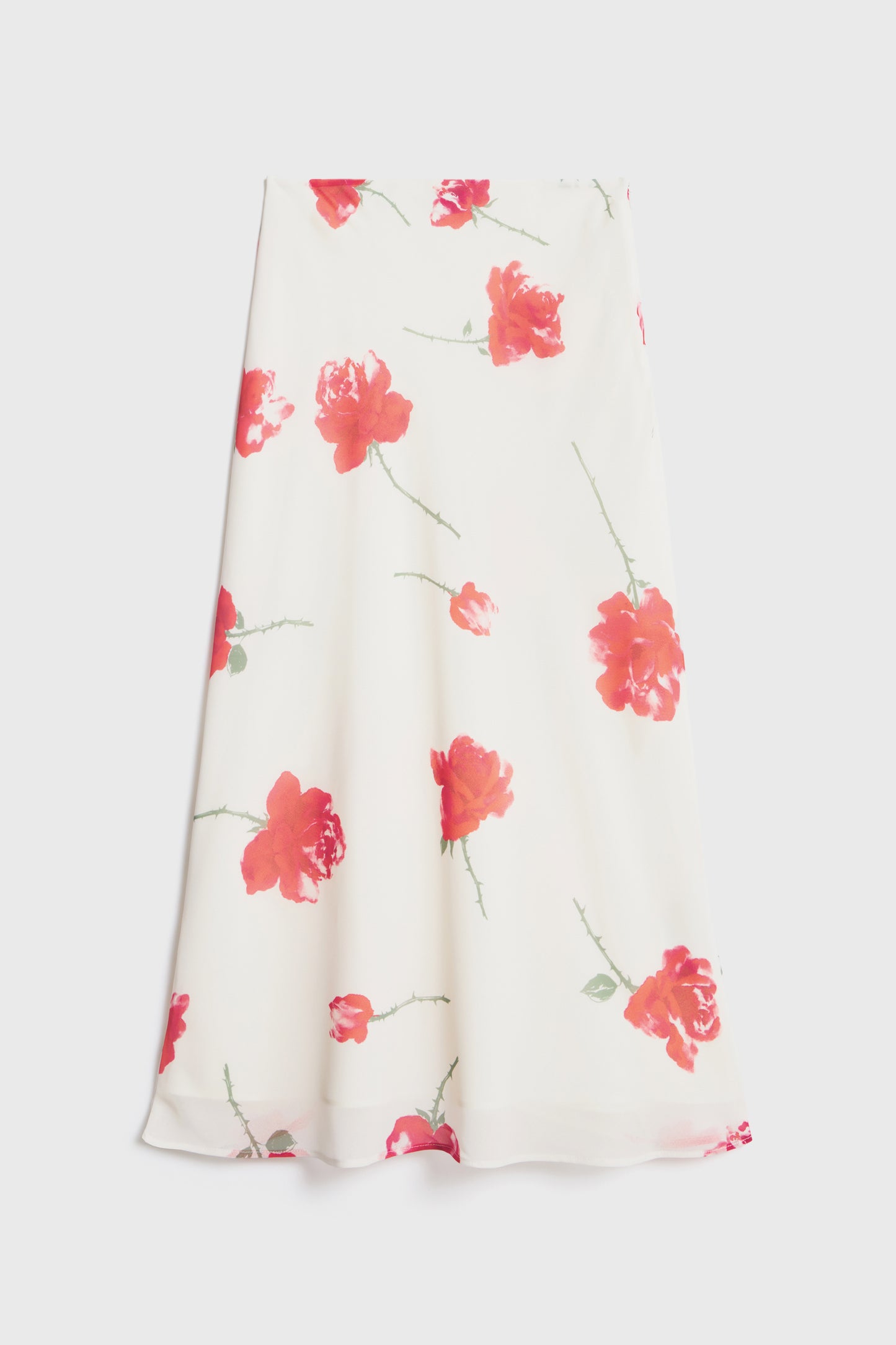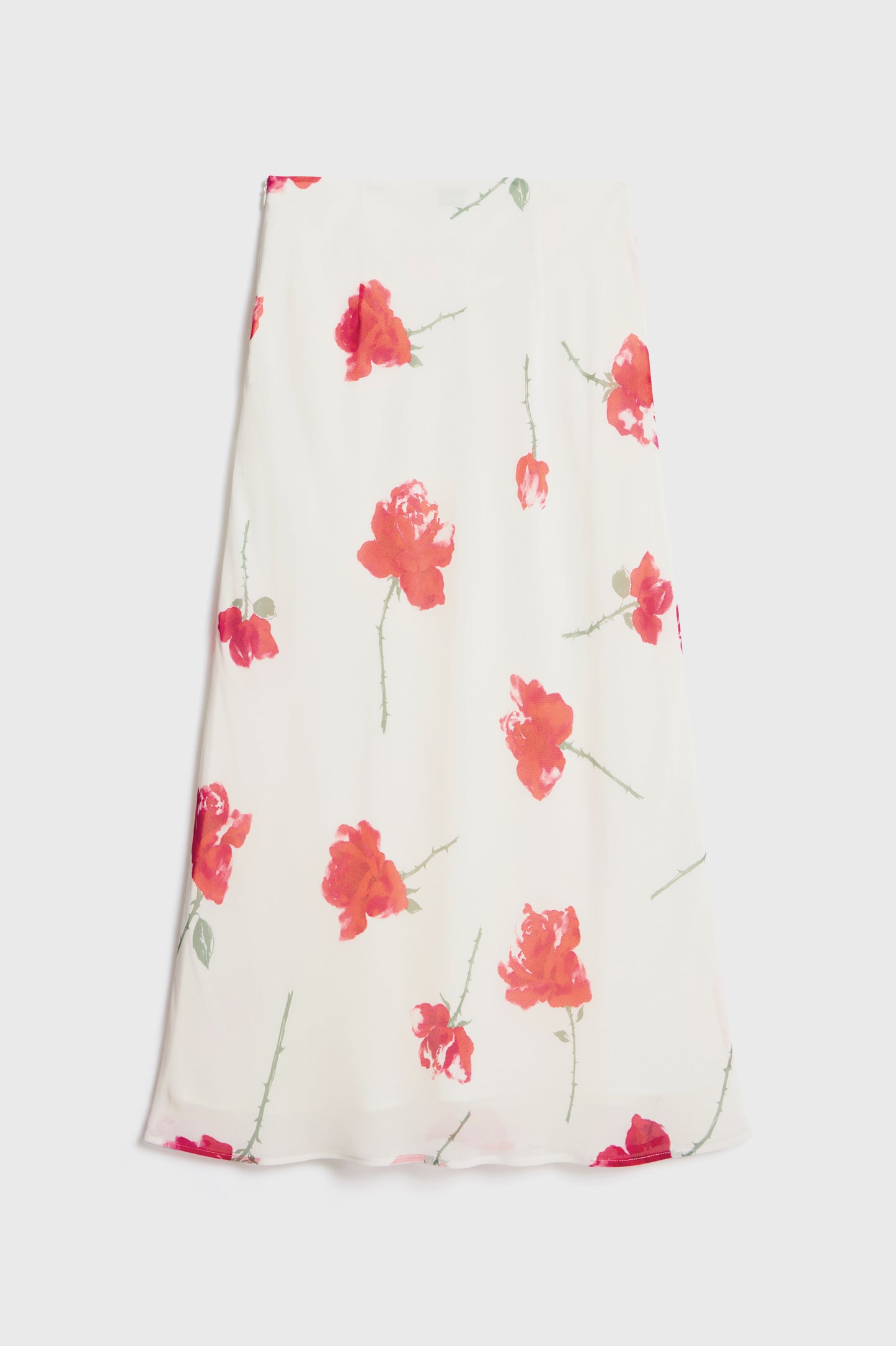 Calf-length skirt in woven fabric with a printed design . Flared hem. Lined.