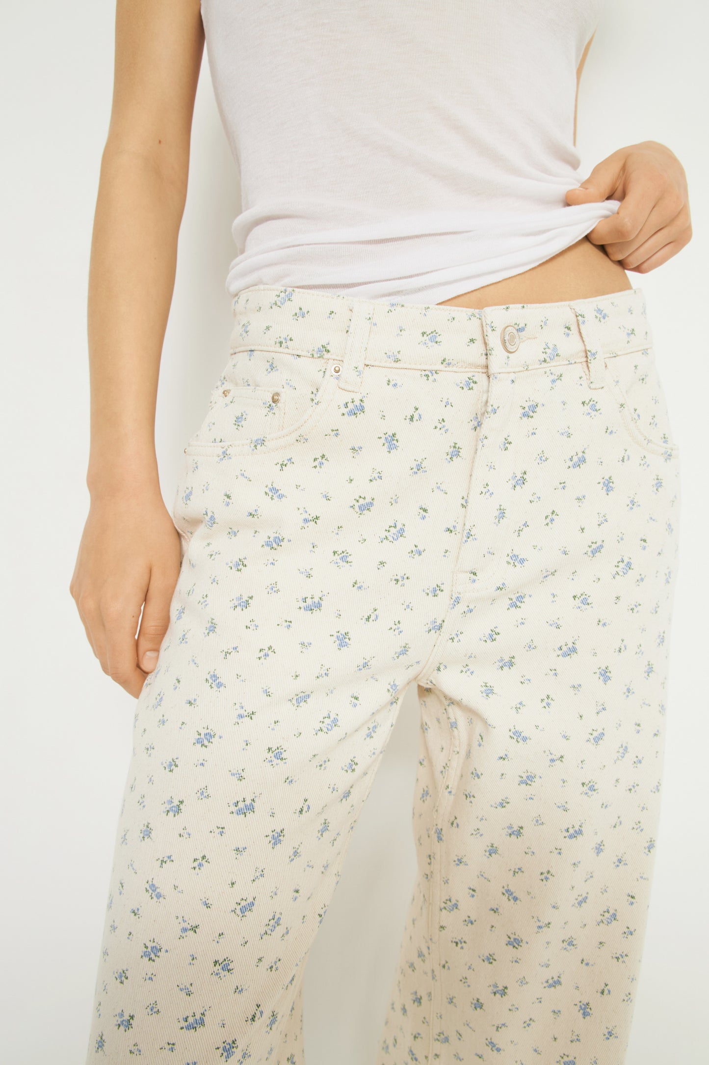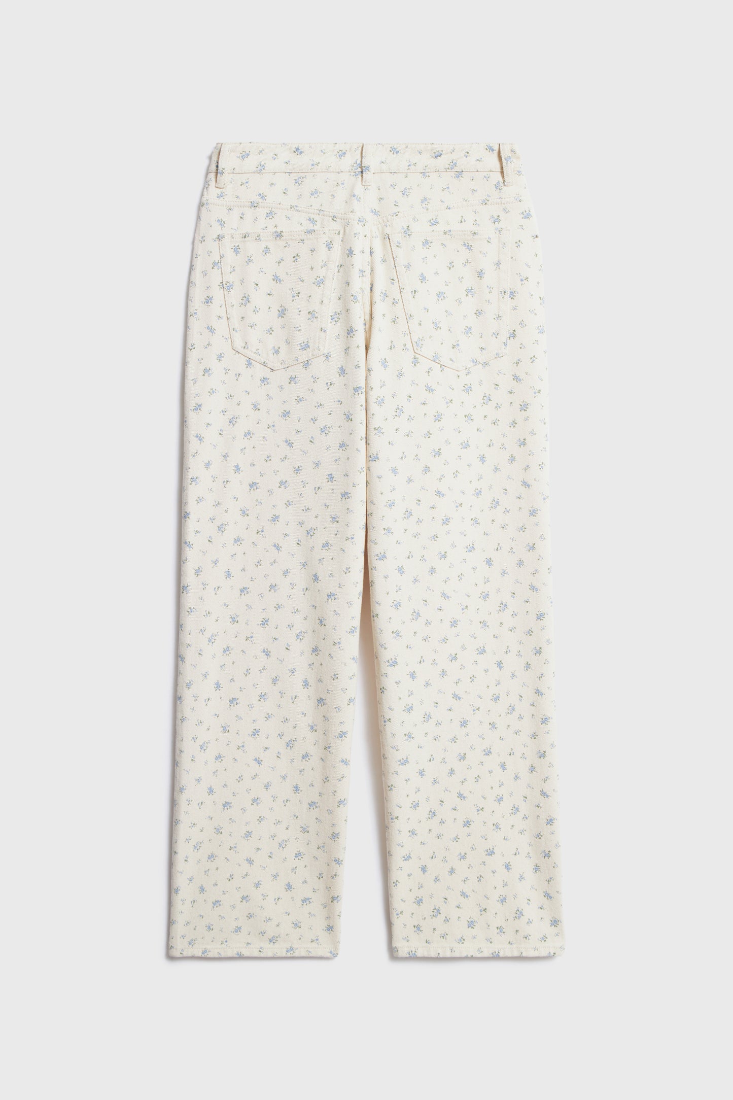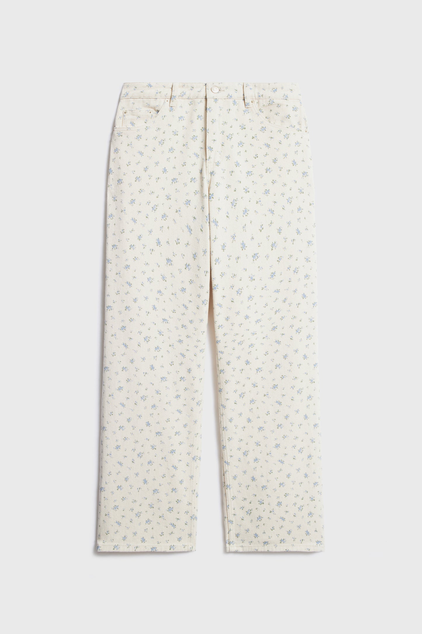 Mid-waist jeans with a five-pocket design in patterned denim. Straight leg. Front zip fly and metal button fastening.