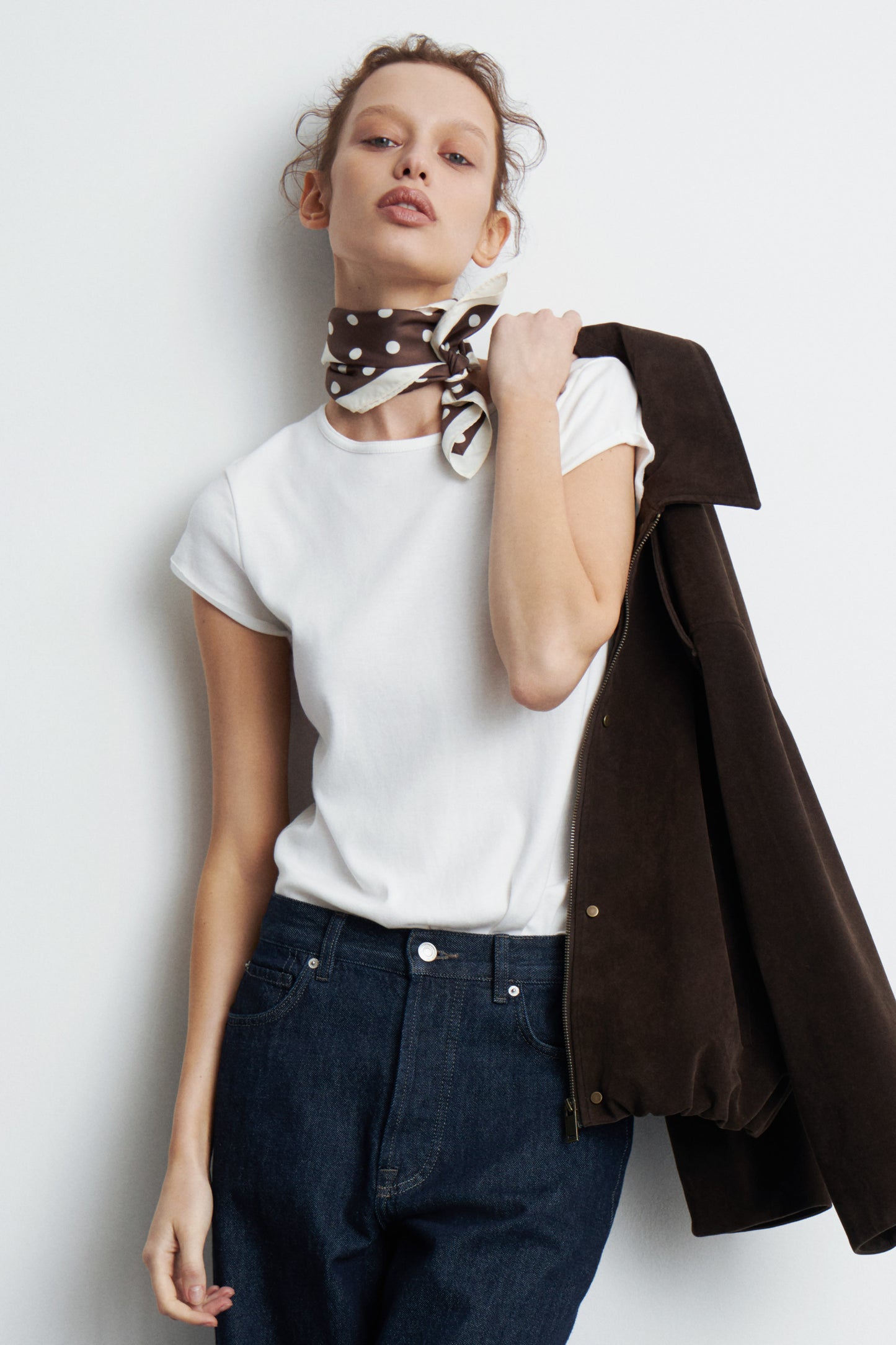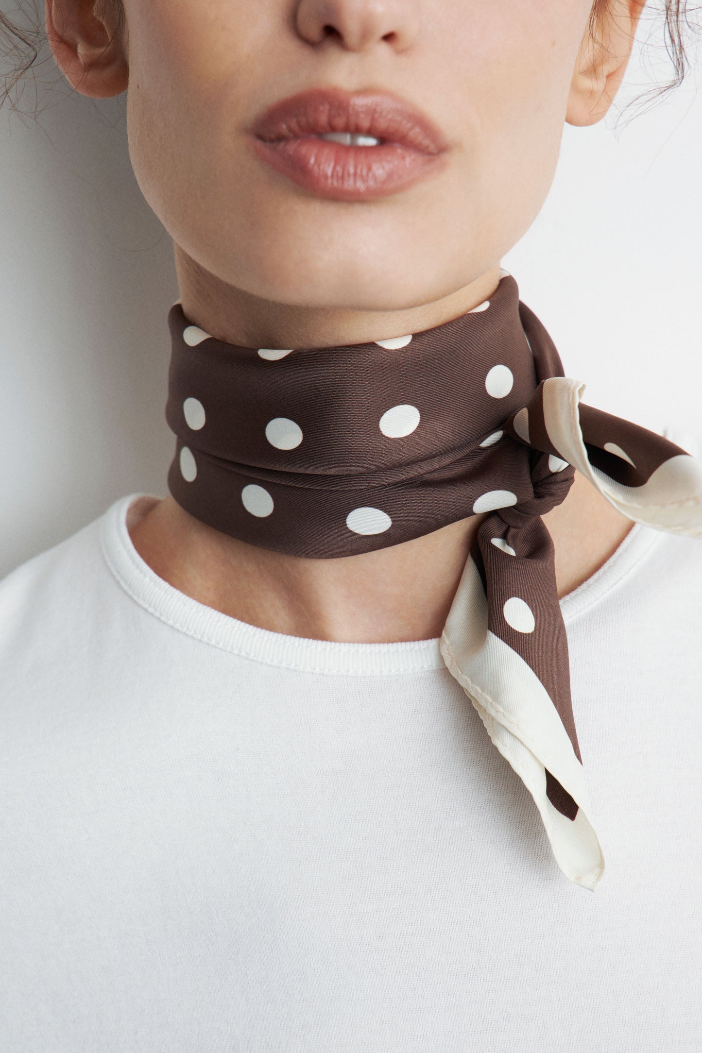 Leightweight square scarf in patterned satin fabric. ONE SIZE: 68 x 68 cm