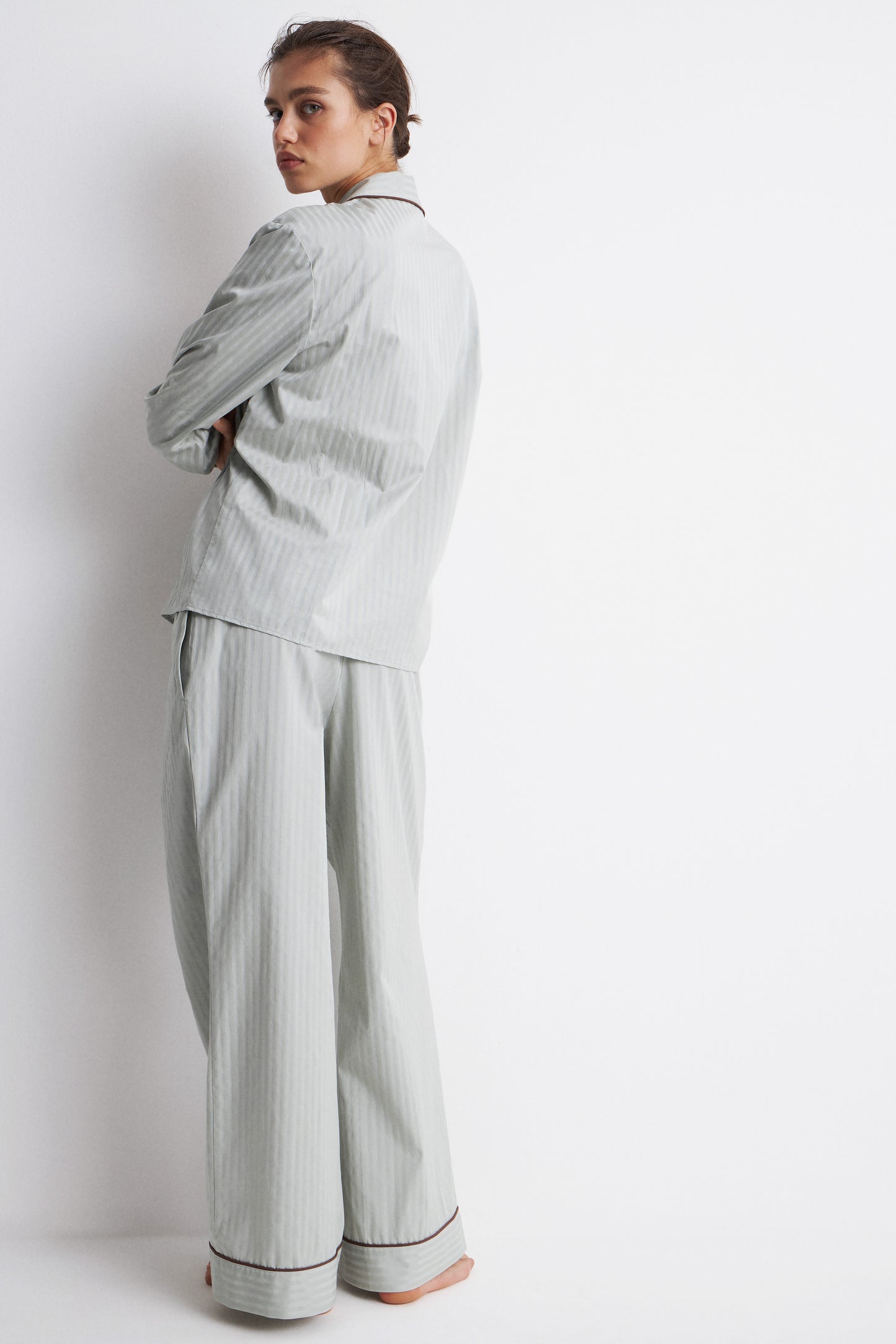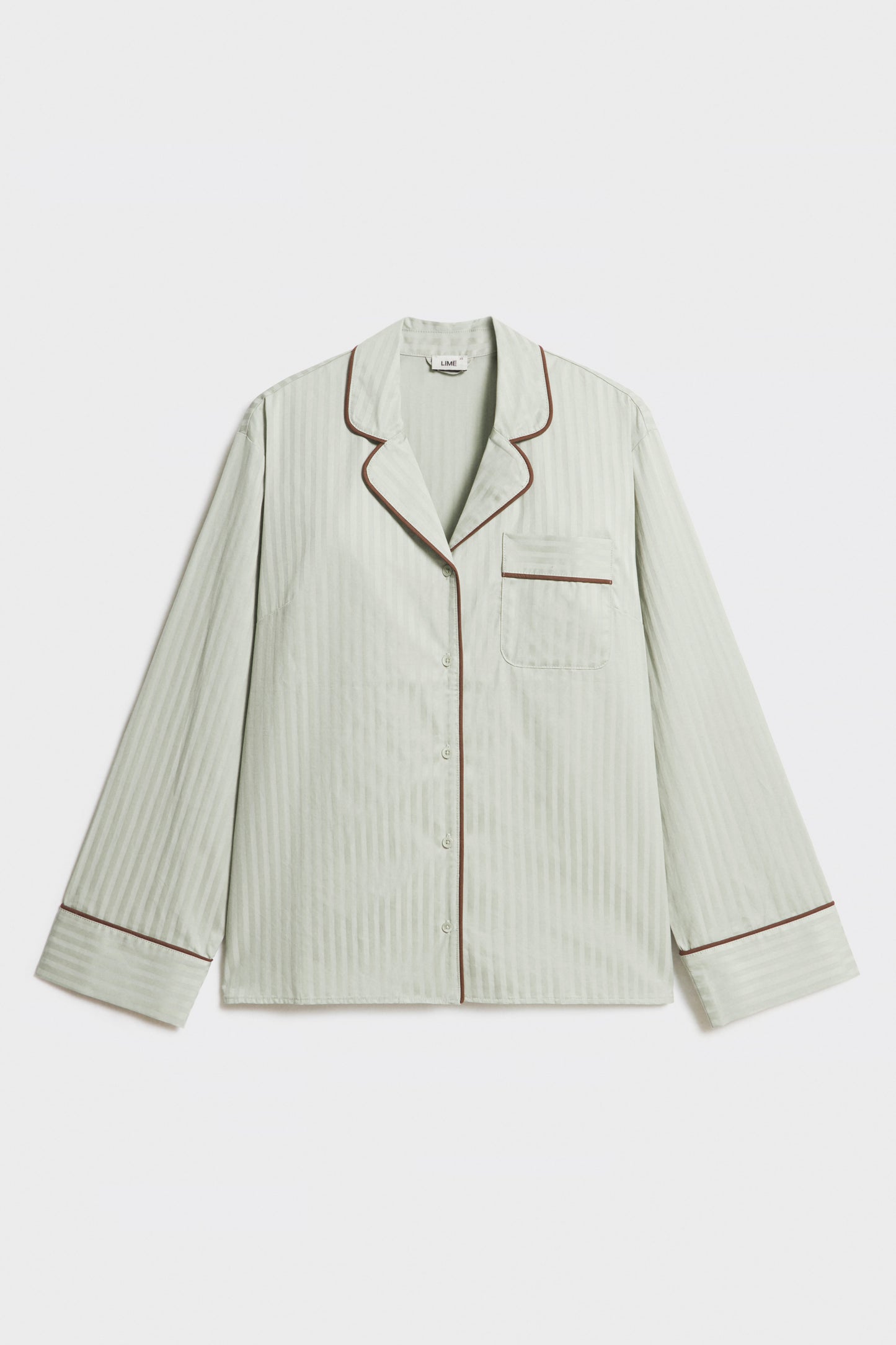 Long-sleeved shirt in soft cotton with contrasting color piping. Features a resort collar, buttons down the front, and an open chest pocket.
