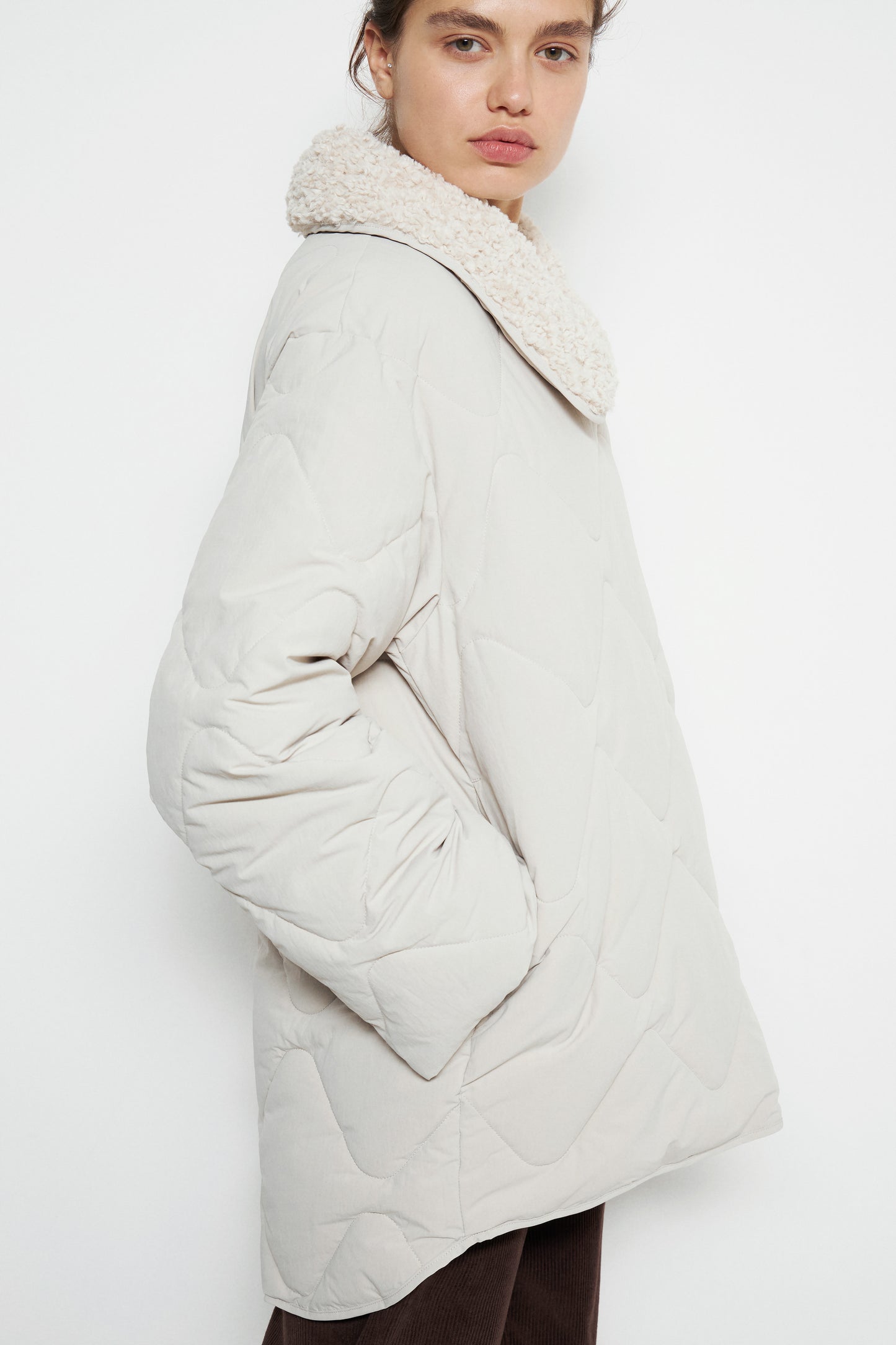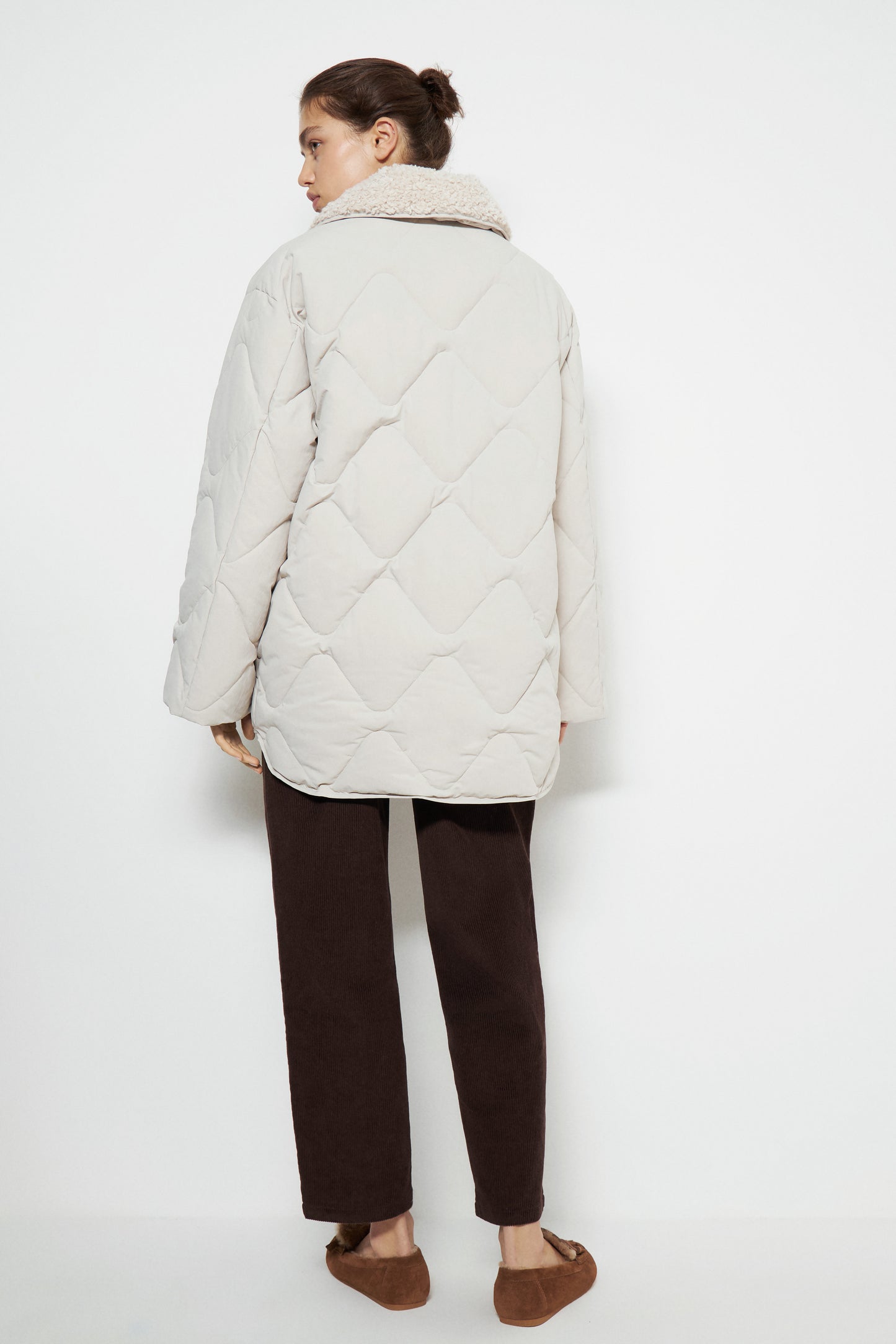 QUILTED JACKET WITH FALSE SHEARING COLLAR