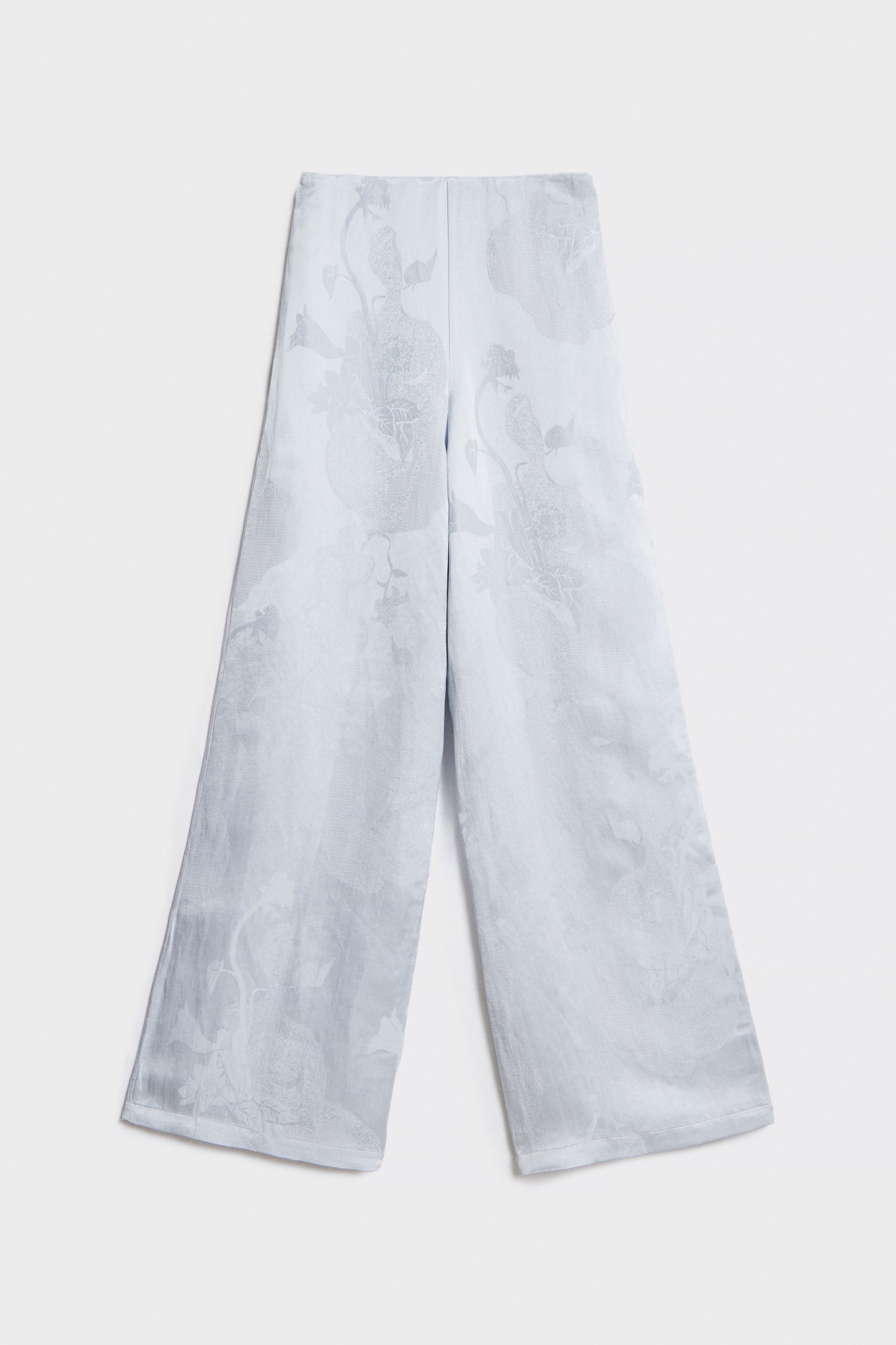 Loose-fit trousers in a jacquard weave made from viscose, linen and cotton blend. Featuring a concealed zip and hook-and-eye fastener at one side of the waist. Wide legs.